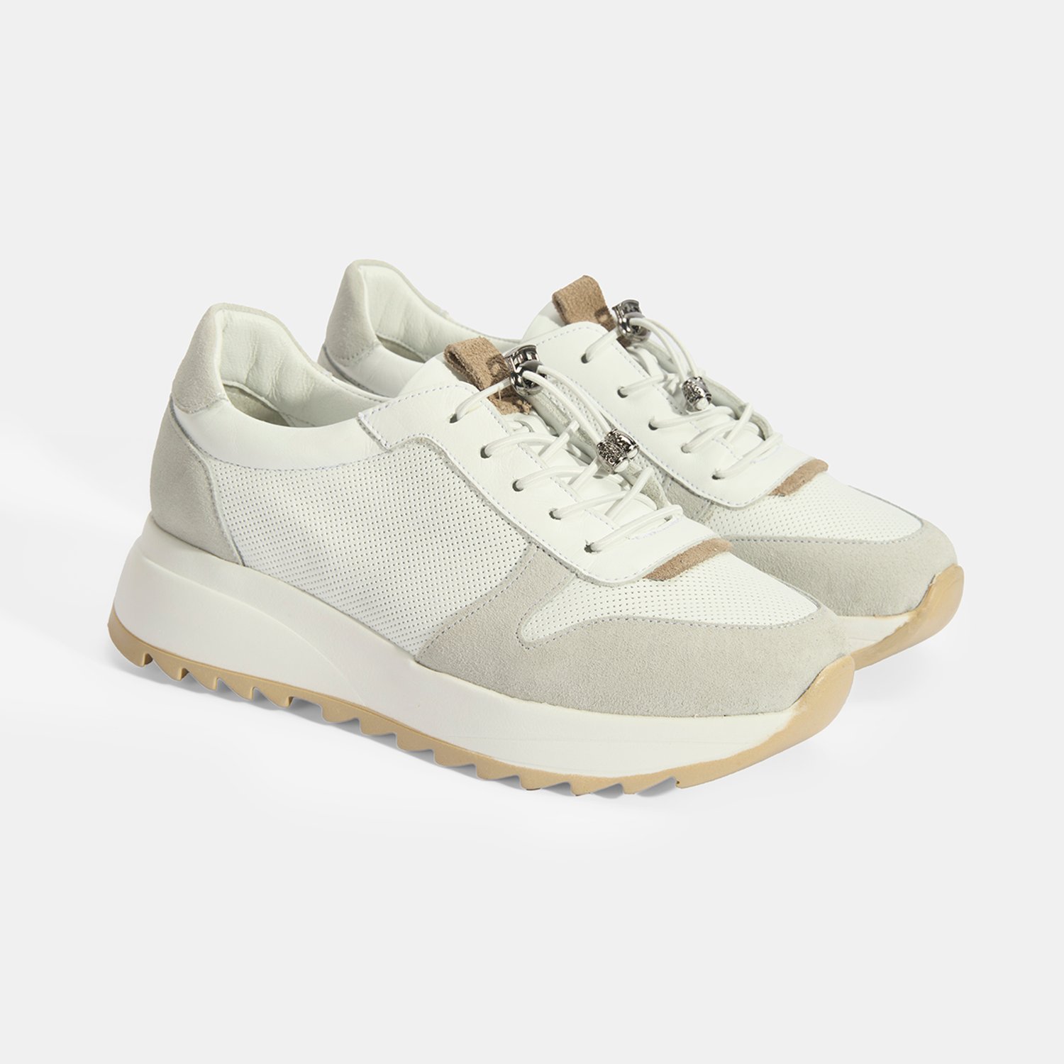 Kadın Beyaz Bağcıklı Deri Detaylı Spor Ayakkabı