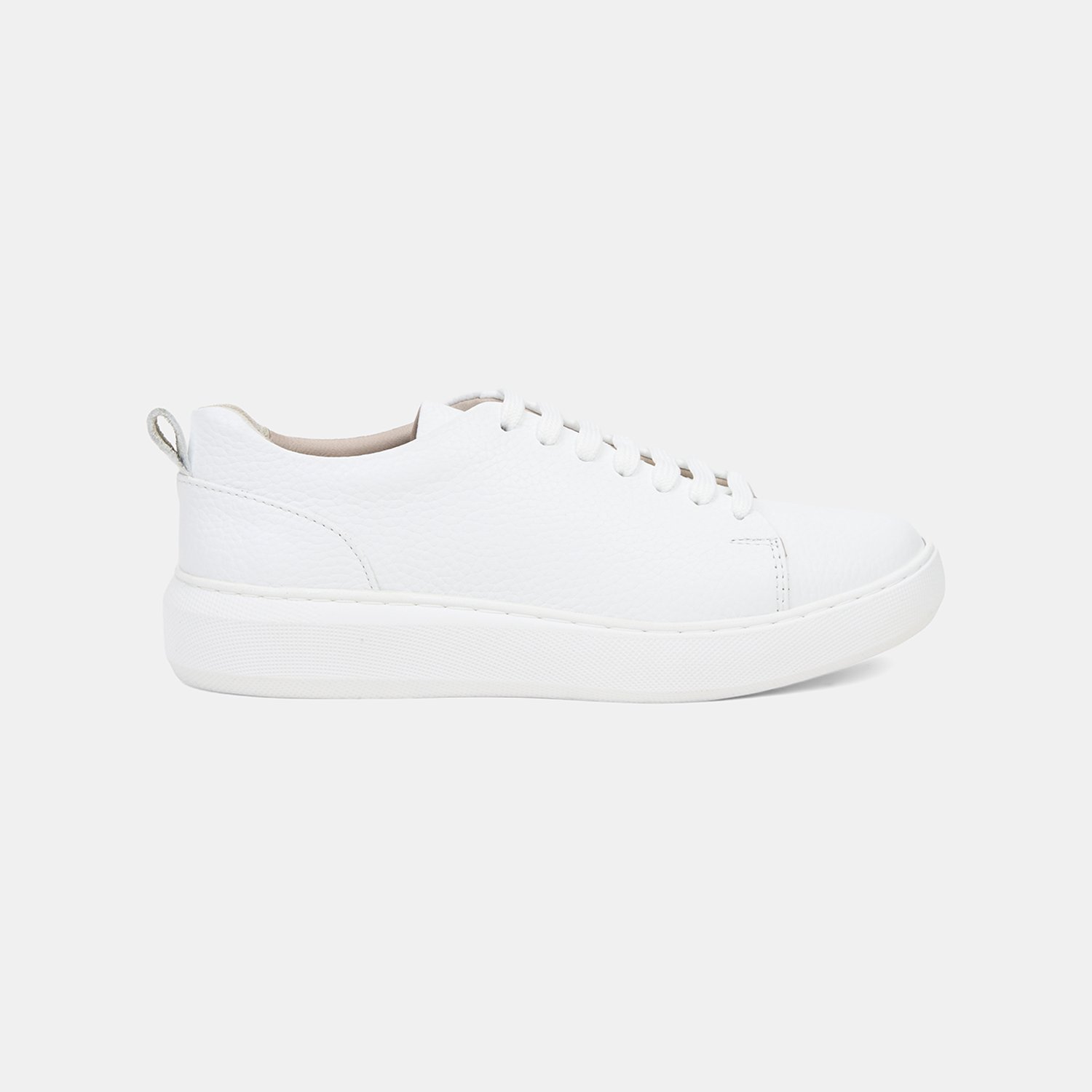 Kadın Beyaz Bağcıklı Deri Sneaker