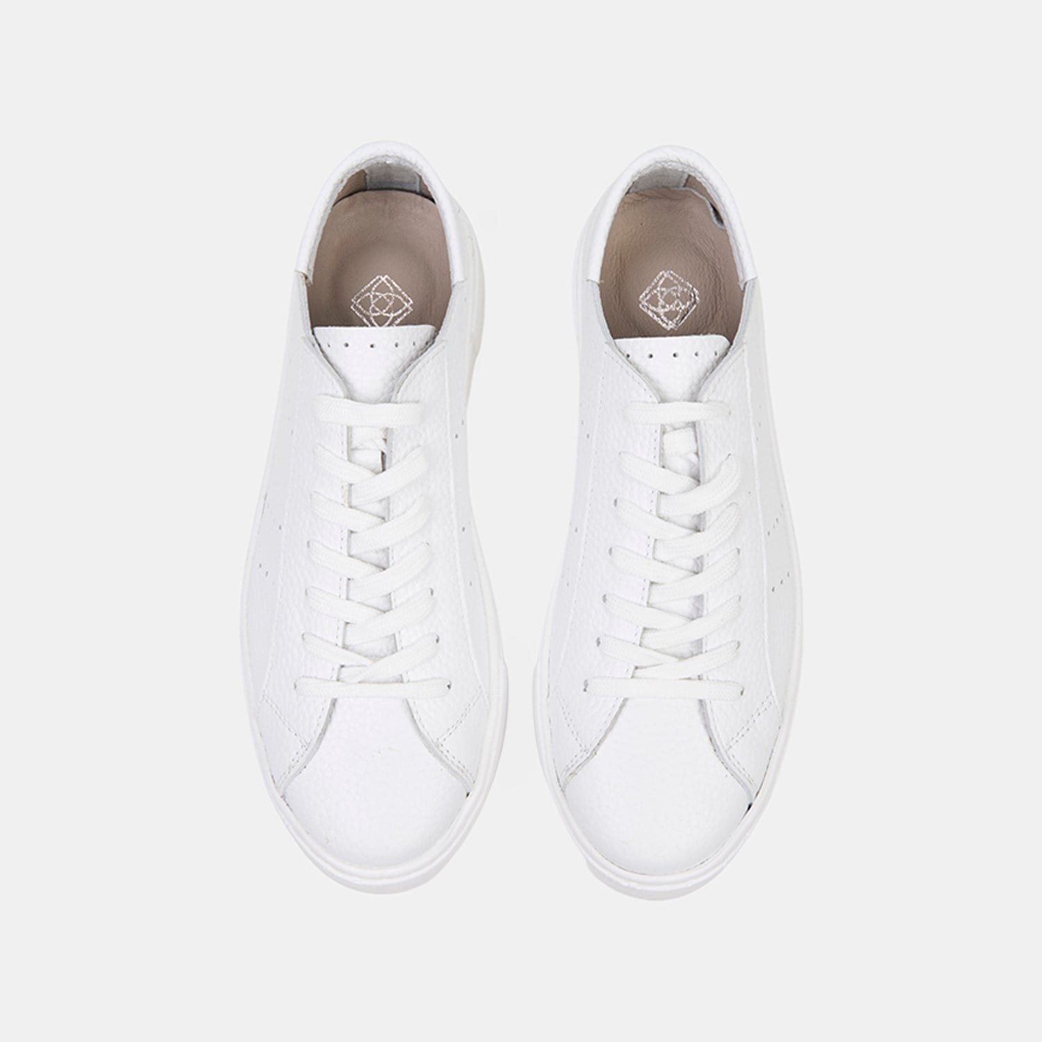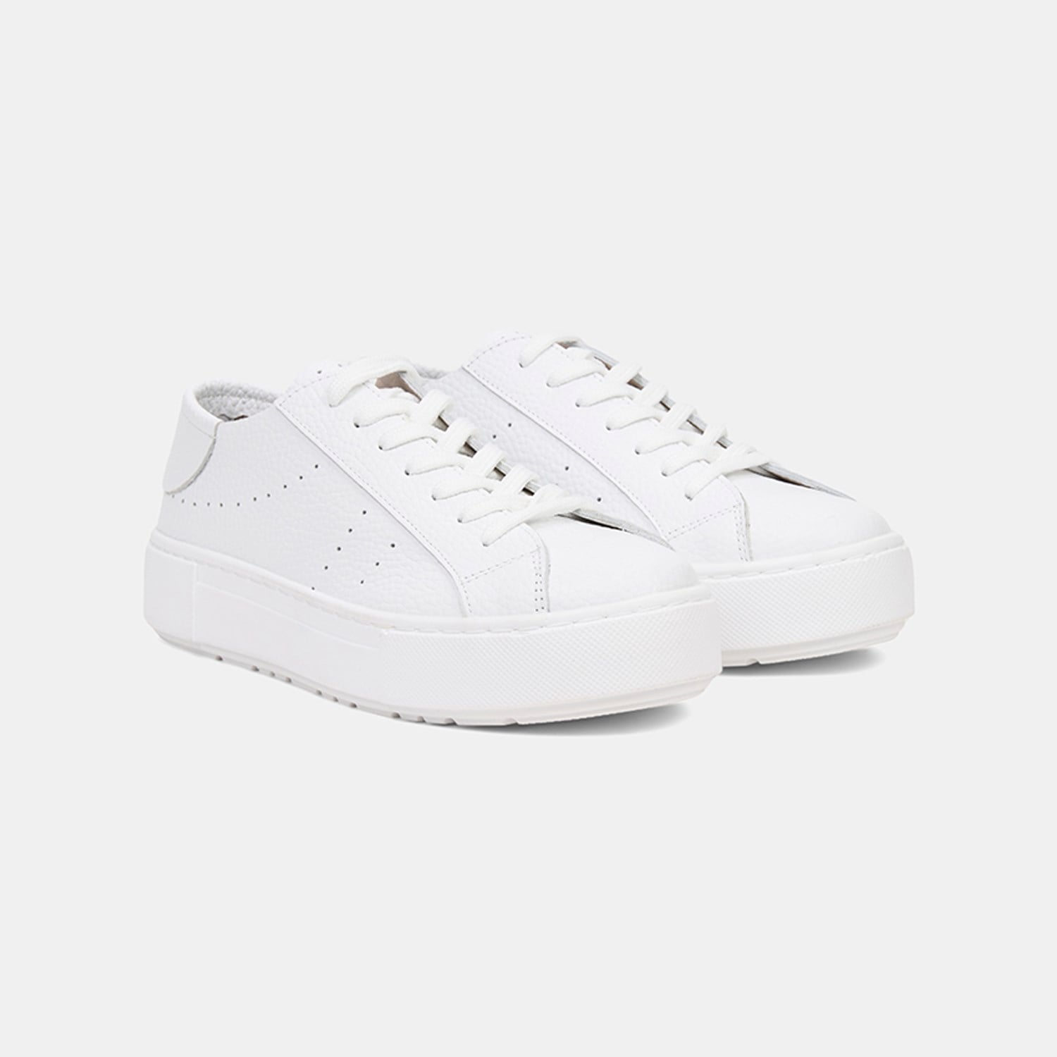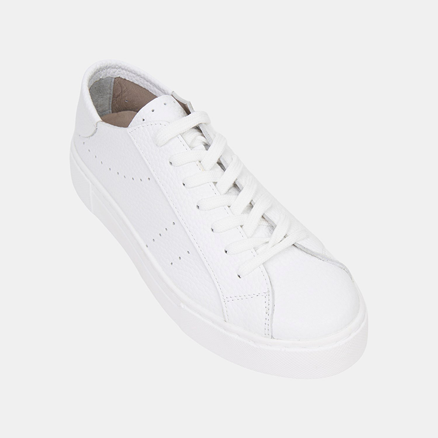 Kadın Beyaz Bağcıklı Kalın Tabanlı Deri Spor Ayakkabı