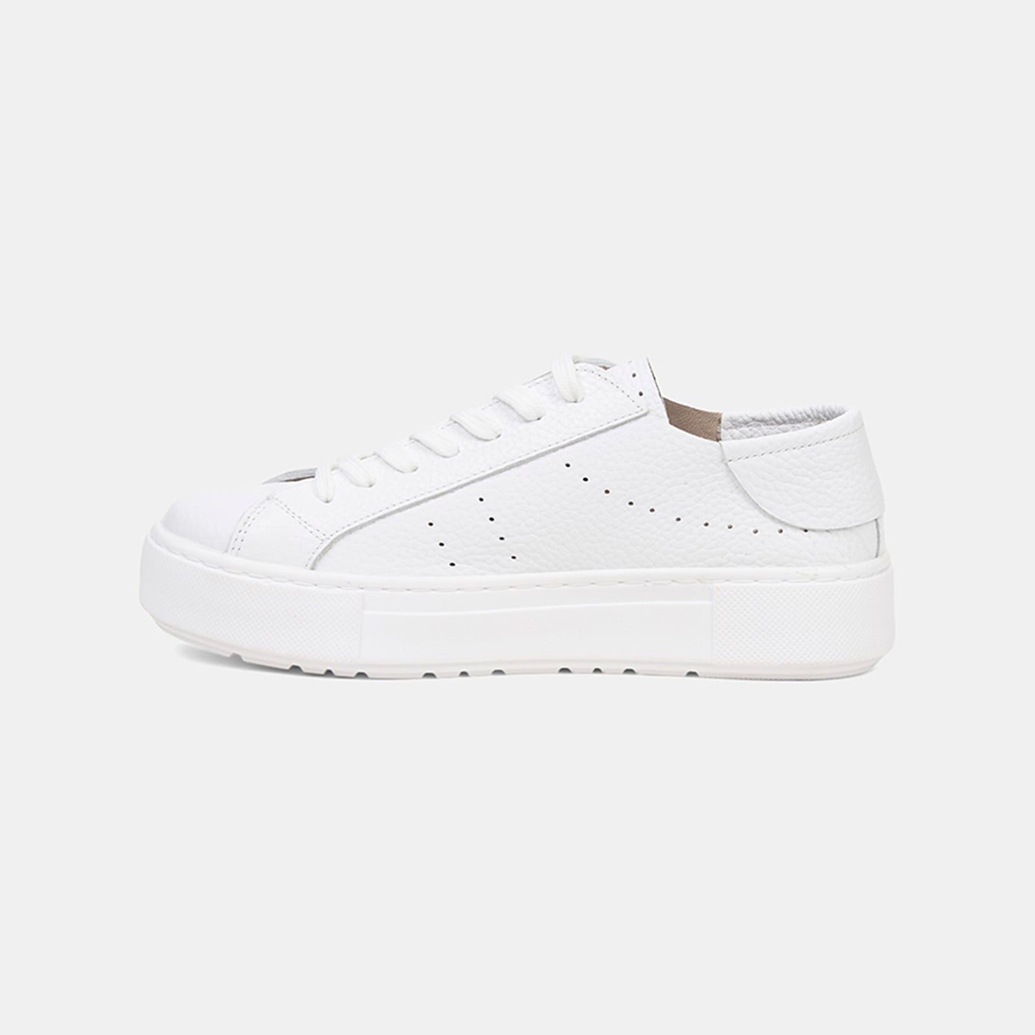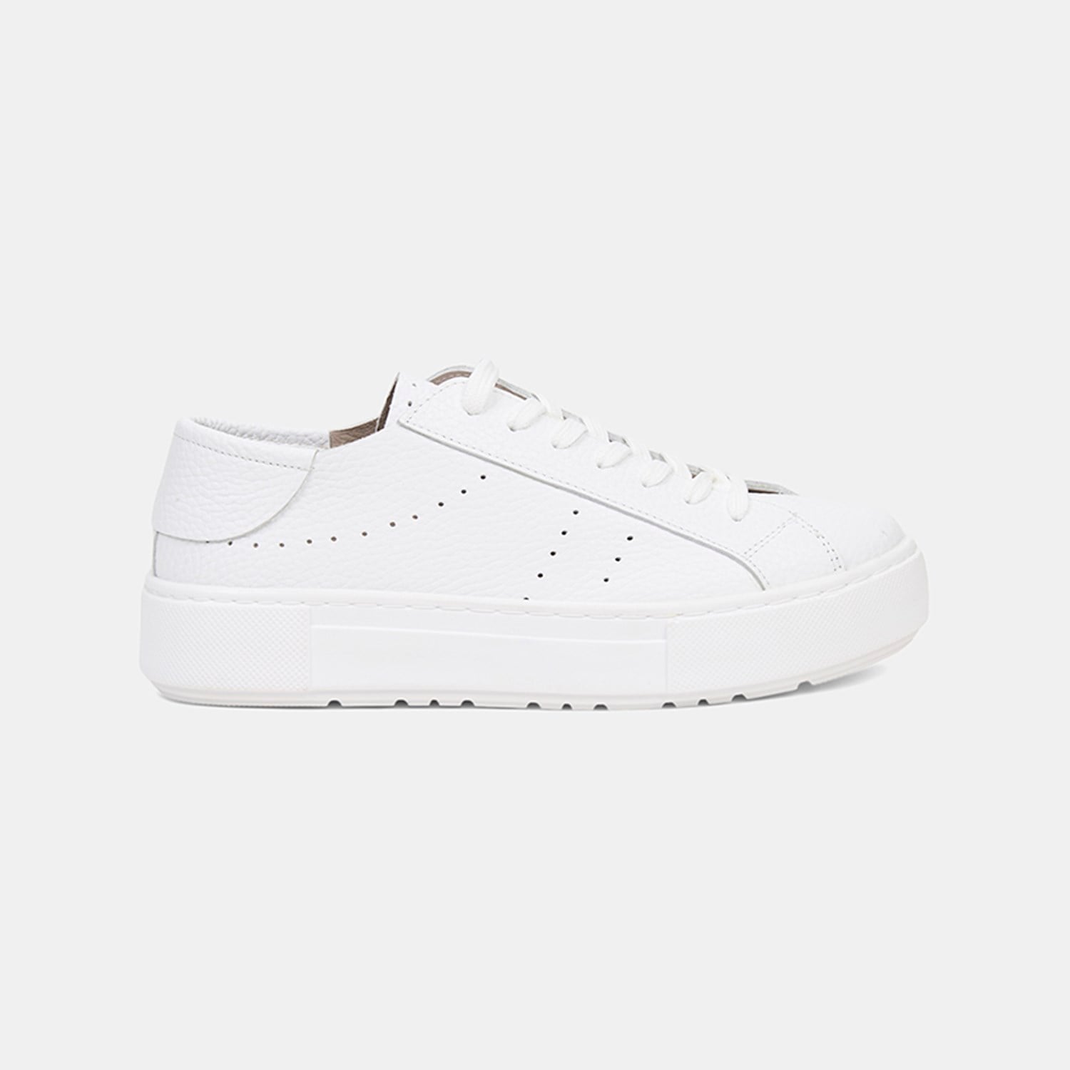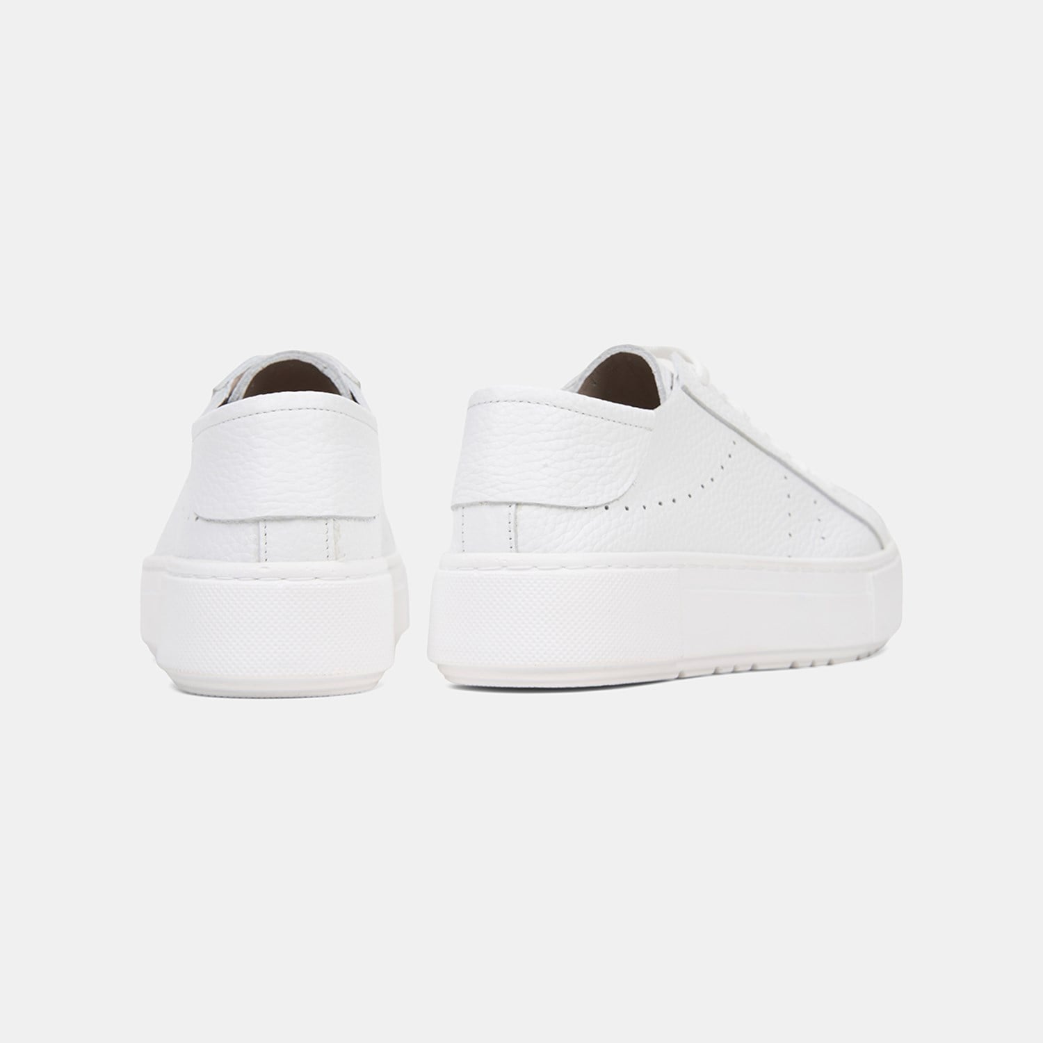 Kadın Beyaz Bağcıklı Kalın Tabanlı Deri Spor Ayakkabı