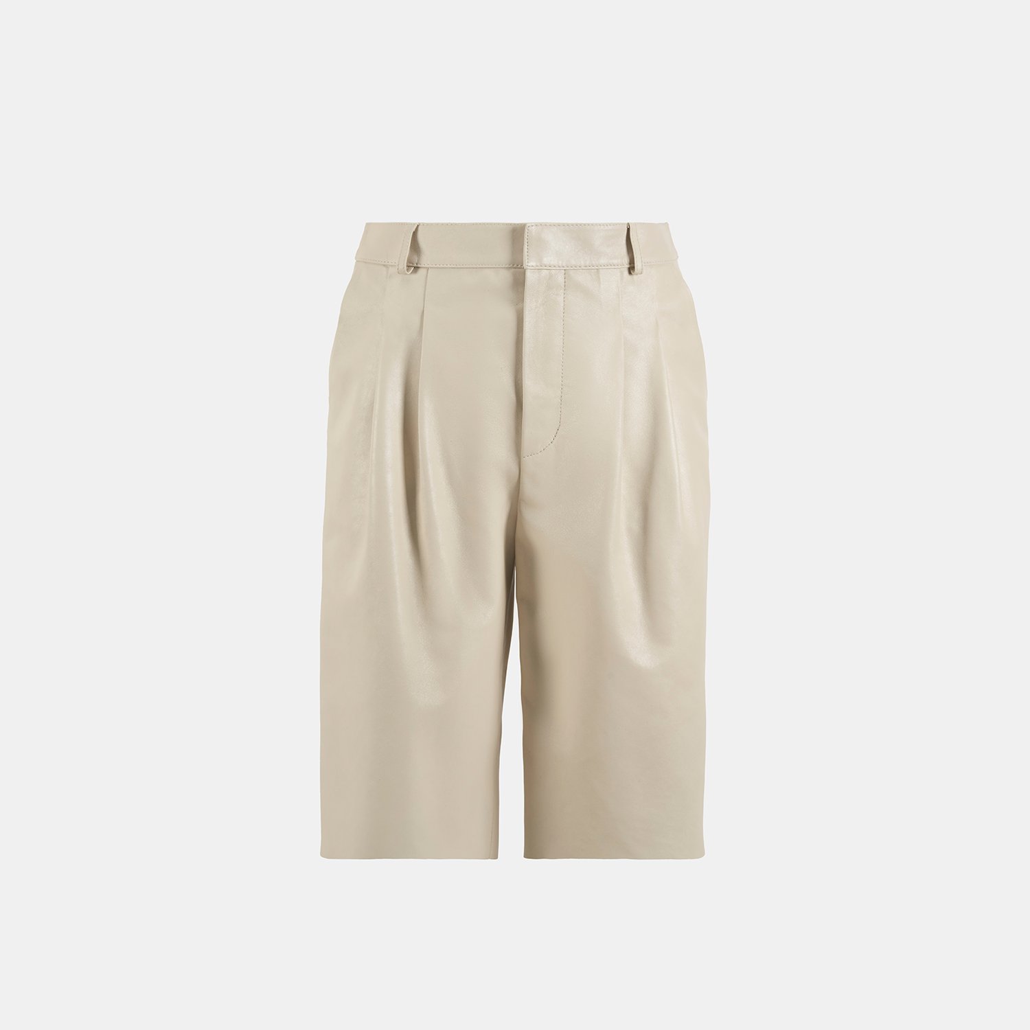 Kadın Beyaz Deri Bermuda Şort