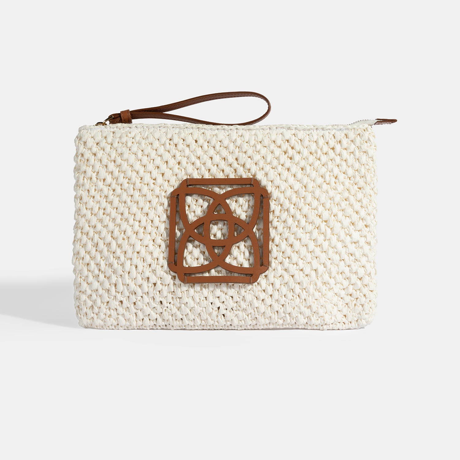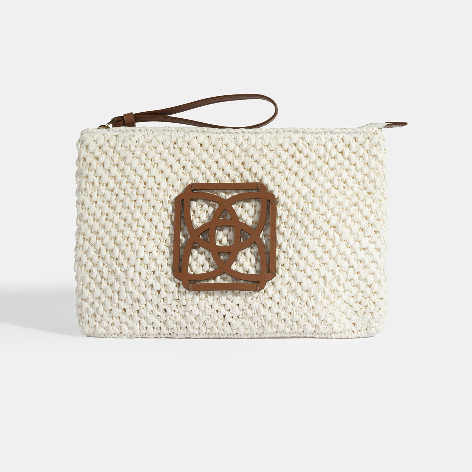 Kadın Beyaz Deri Detaylı Hasır El Çantası