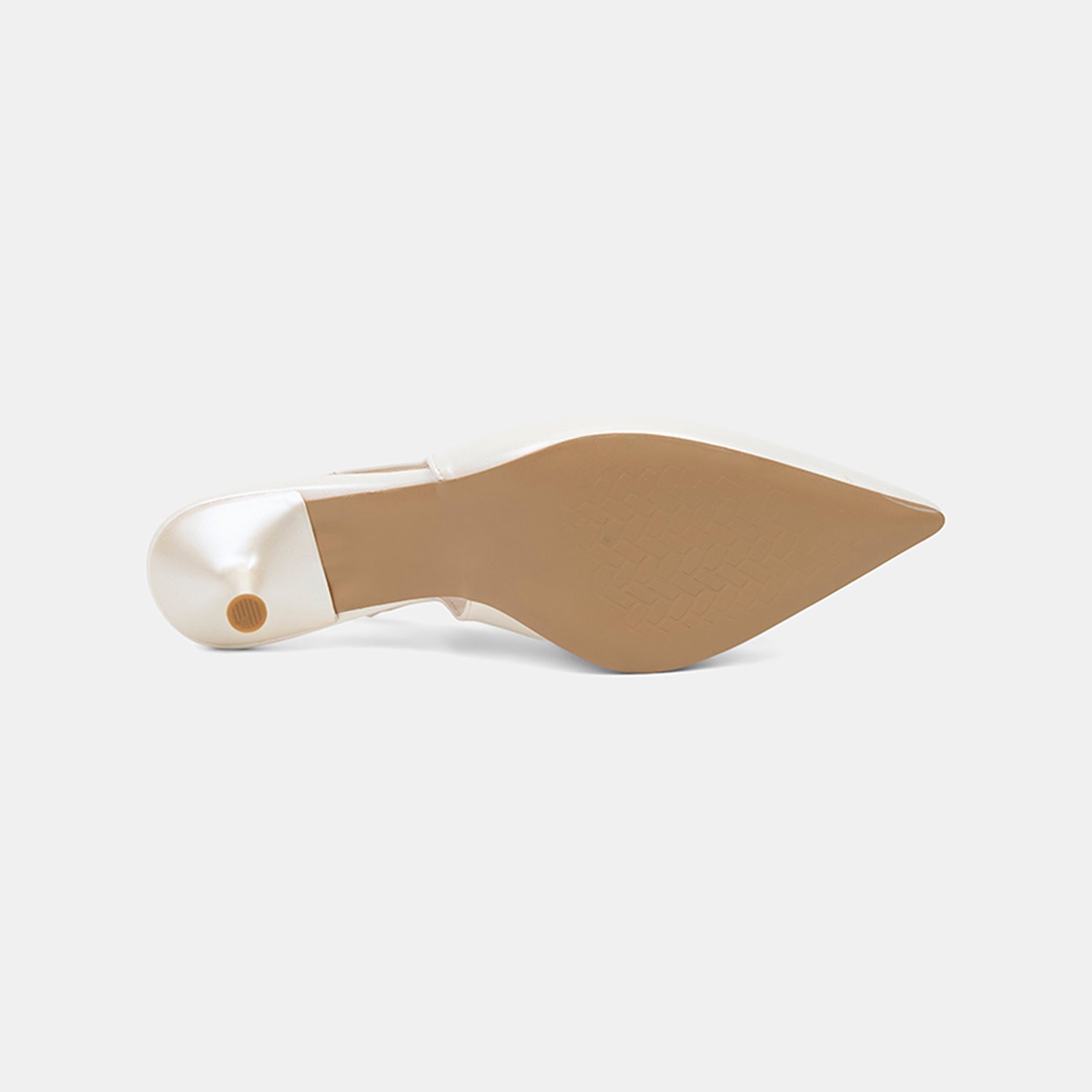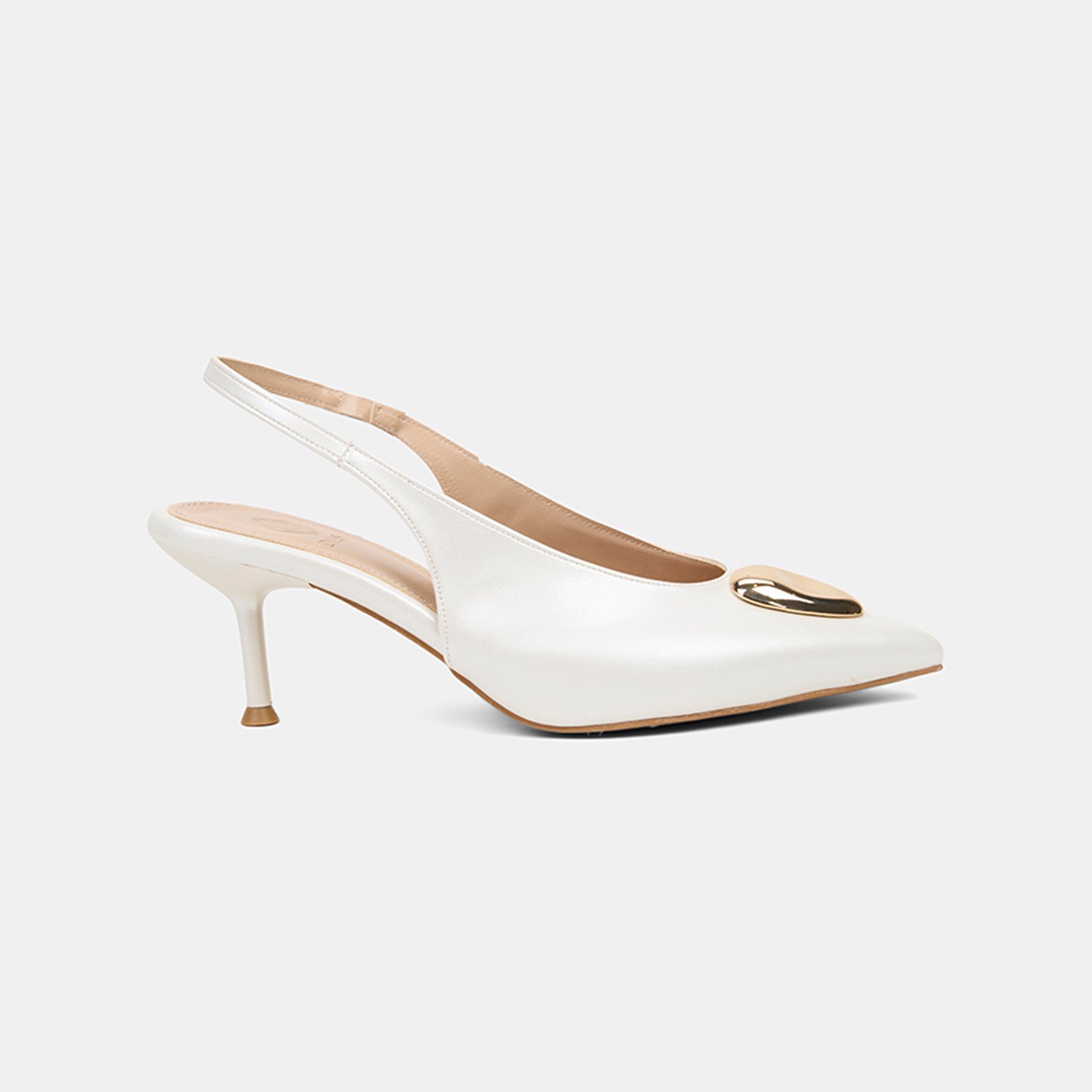 Kadın Beyaz Gold Tokalı Sivri Burun Topuklu Gelin Ayakkabısı