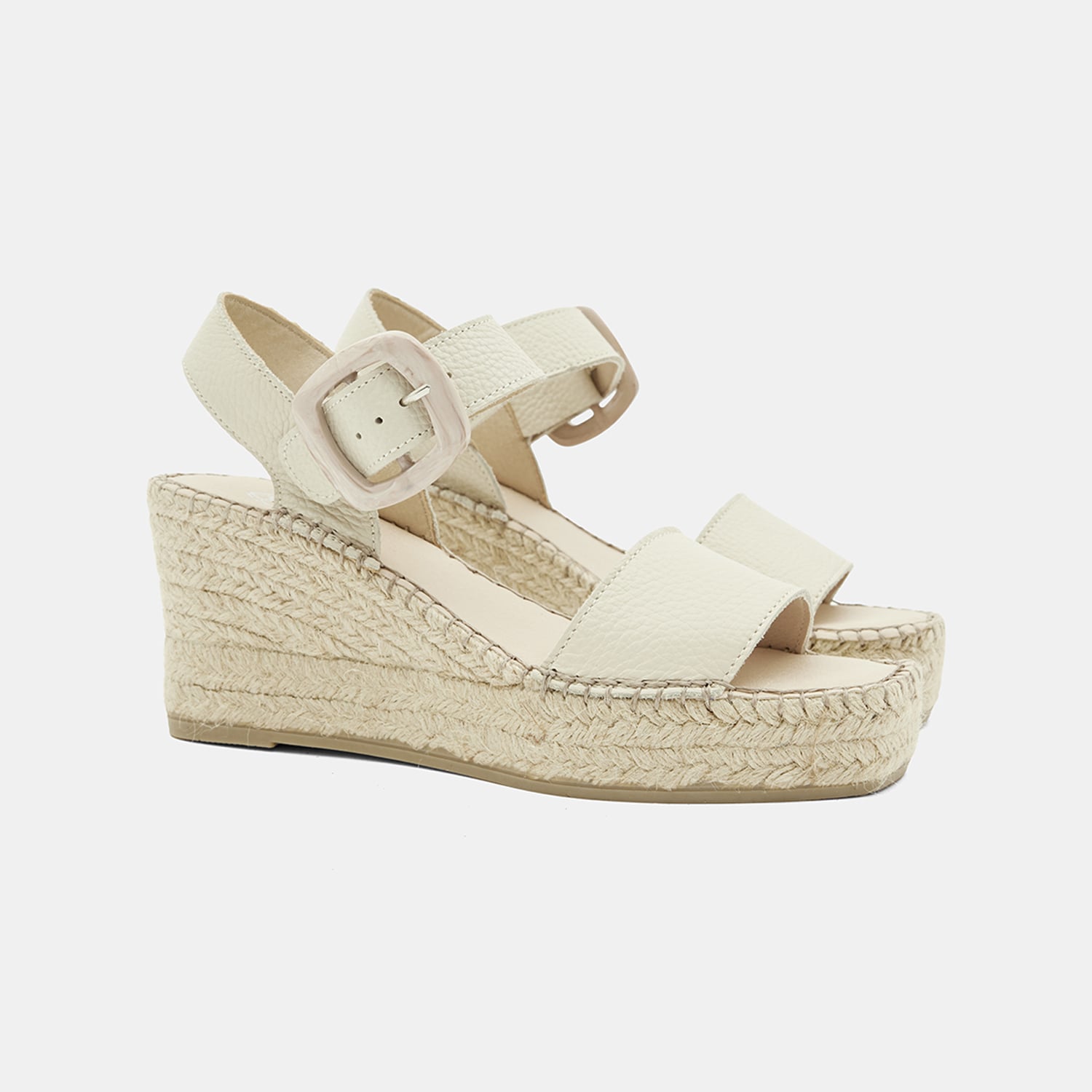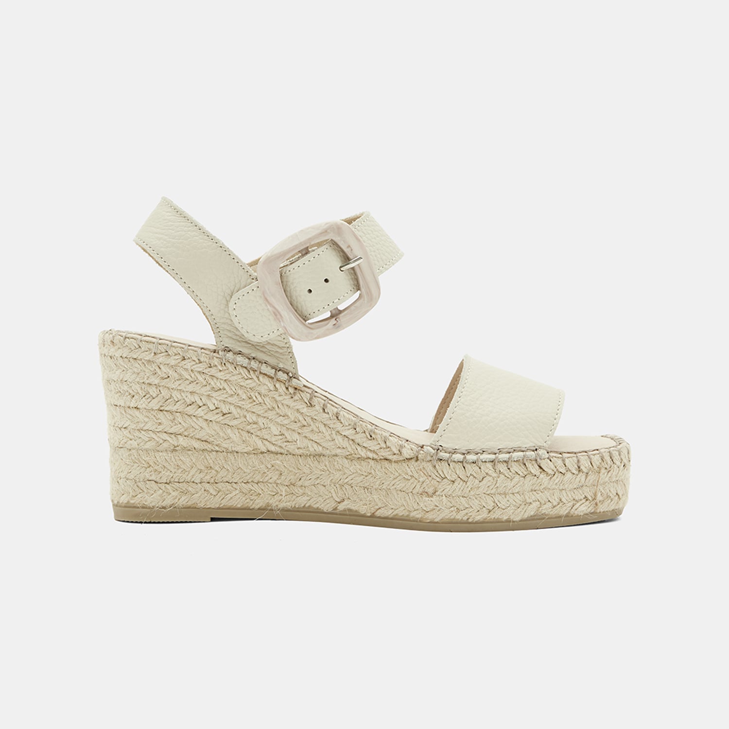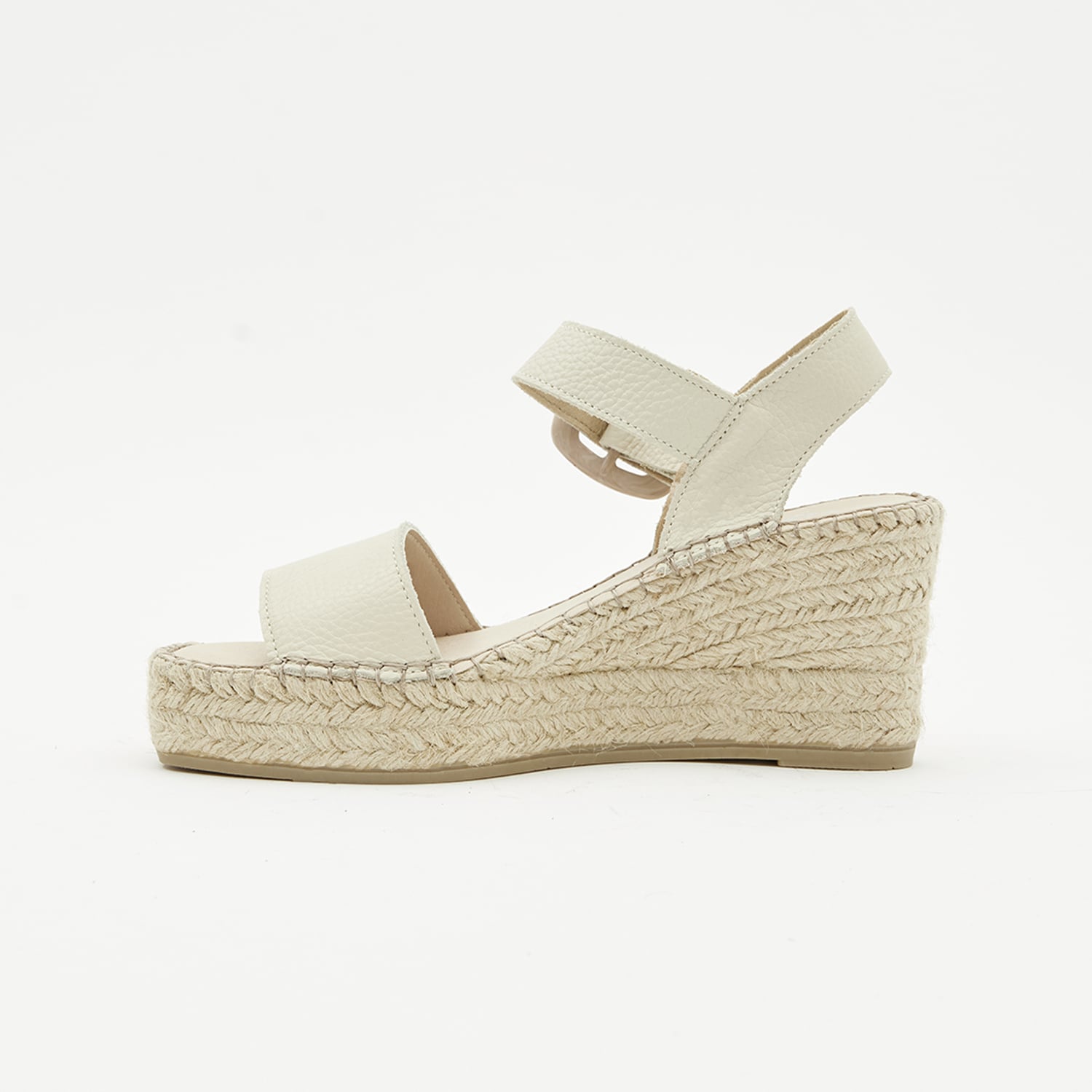 Kadın Beyaz Kemik Tokalı Dolgu Topuklu Deri Sandalet