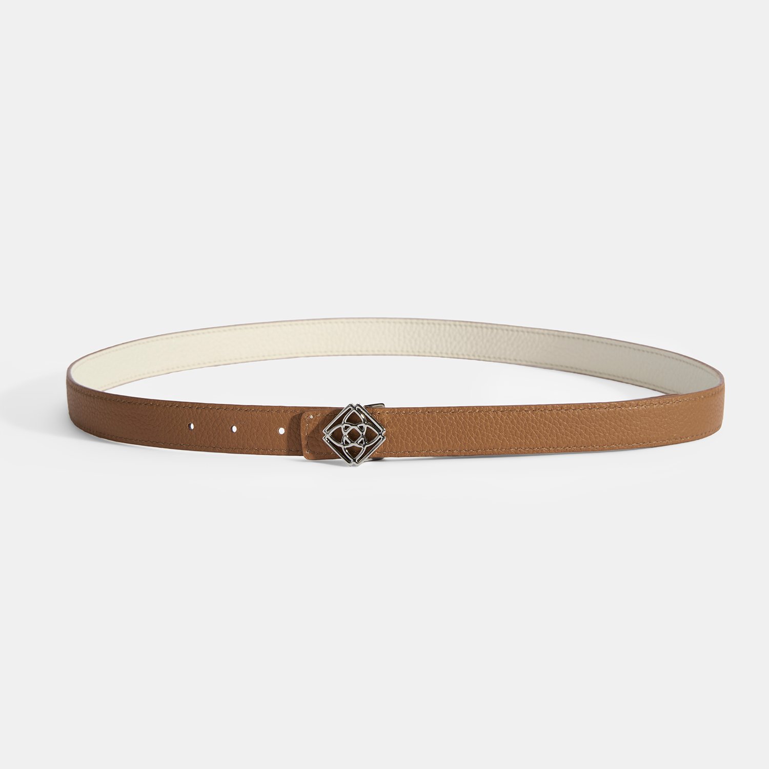 Kadın Beyaz / Konyak Çift Taraflı Deri Kemer