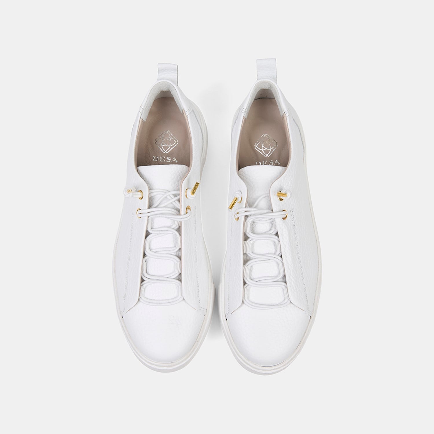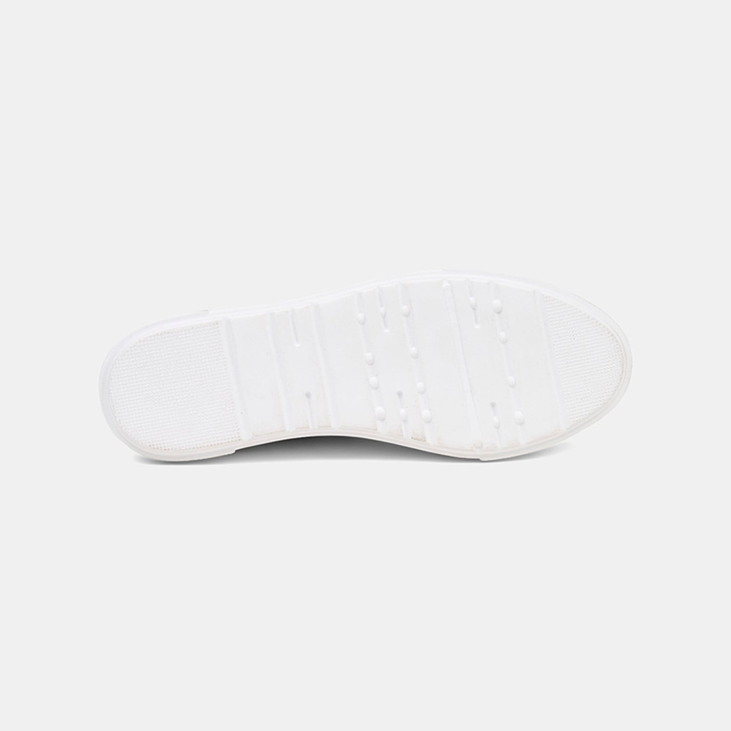 Kadın Beyaz Lastik Bağcıklı Kalın Tabanlı Deri Spor Ayakkabı