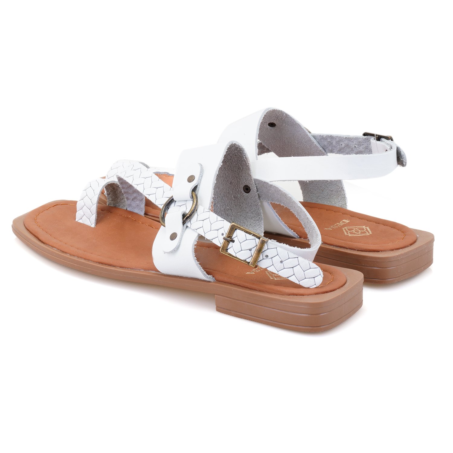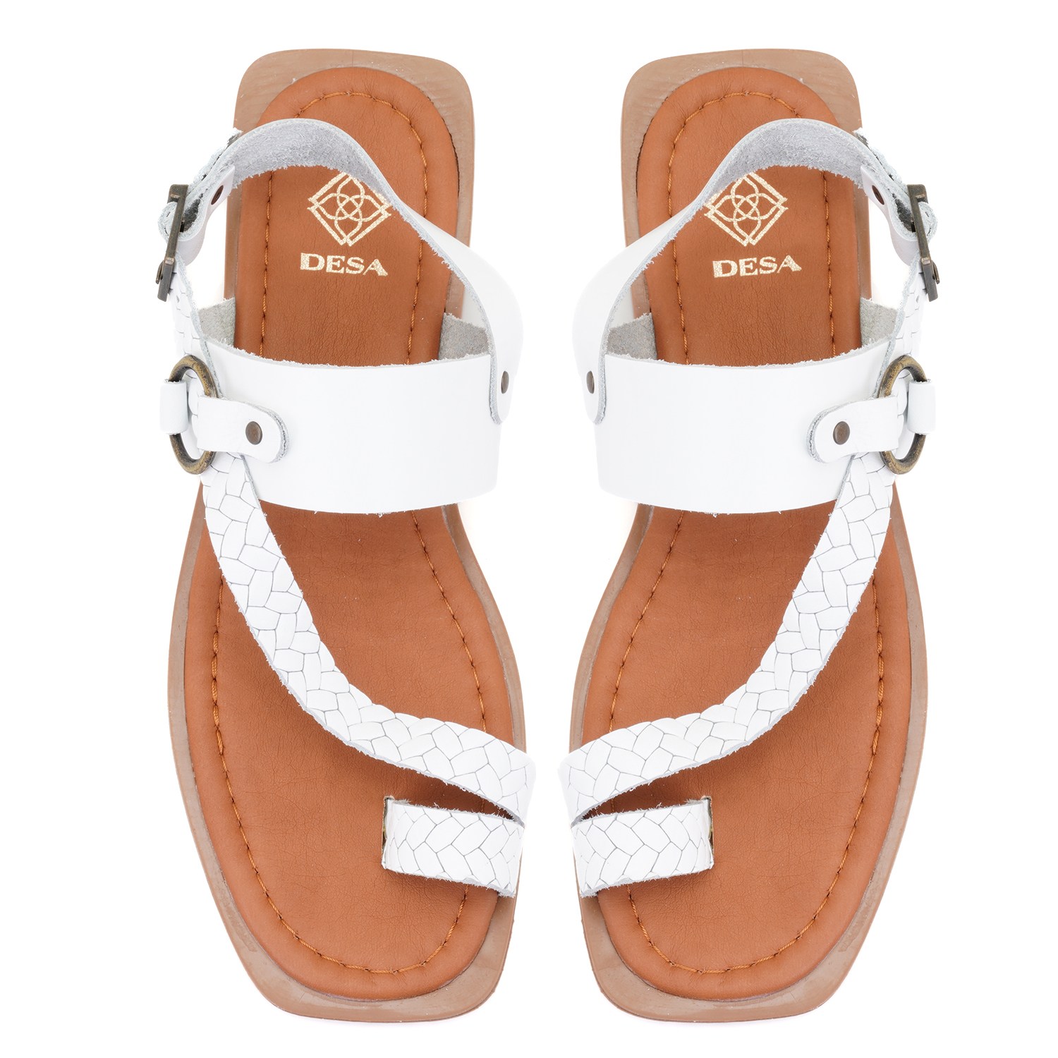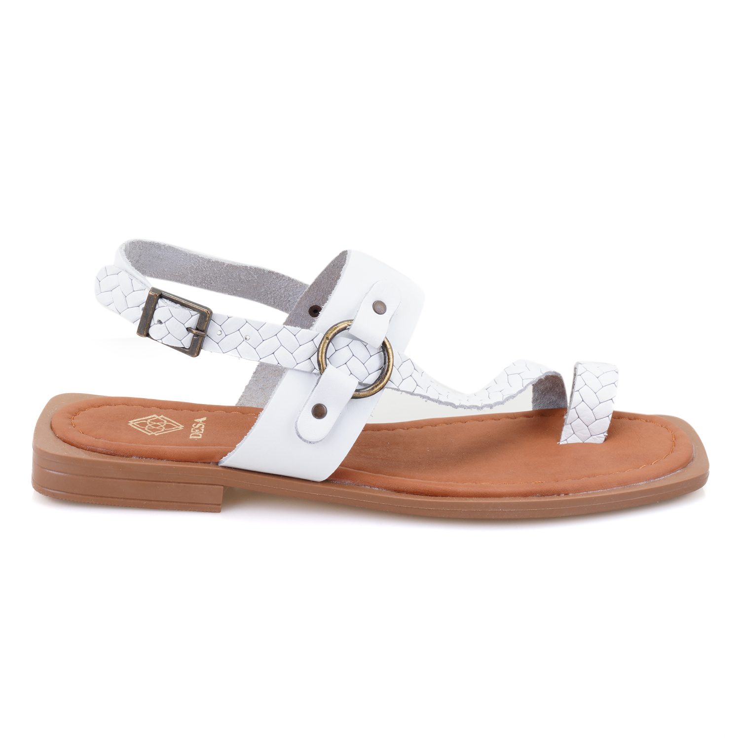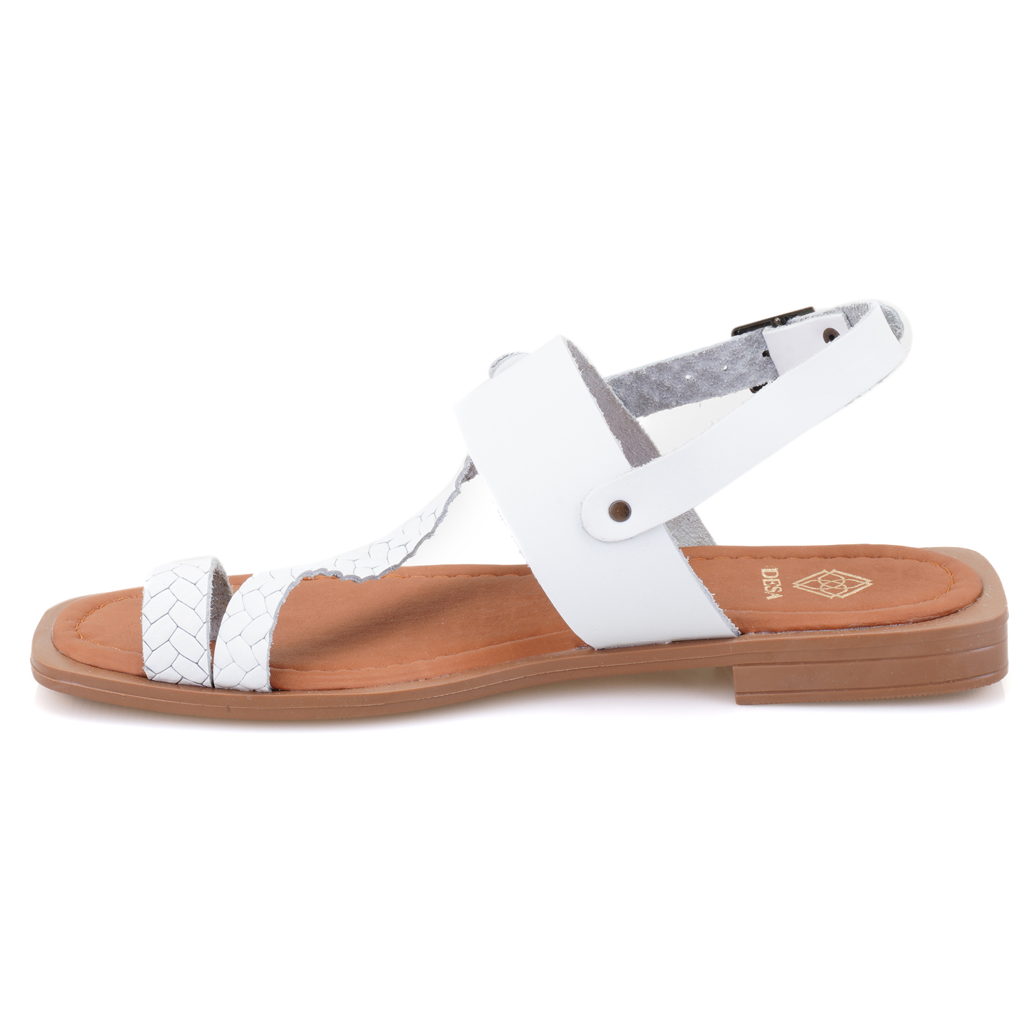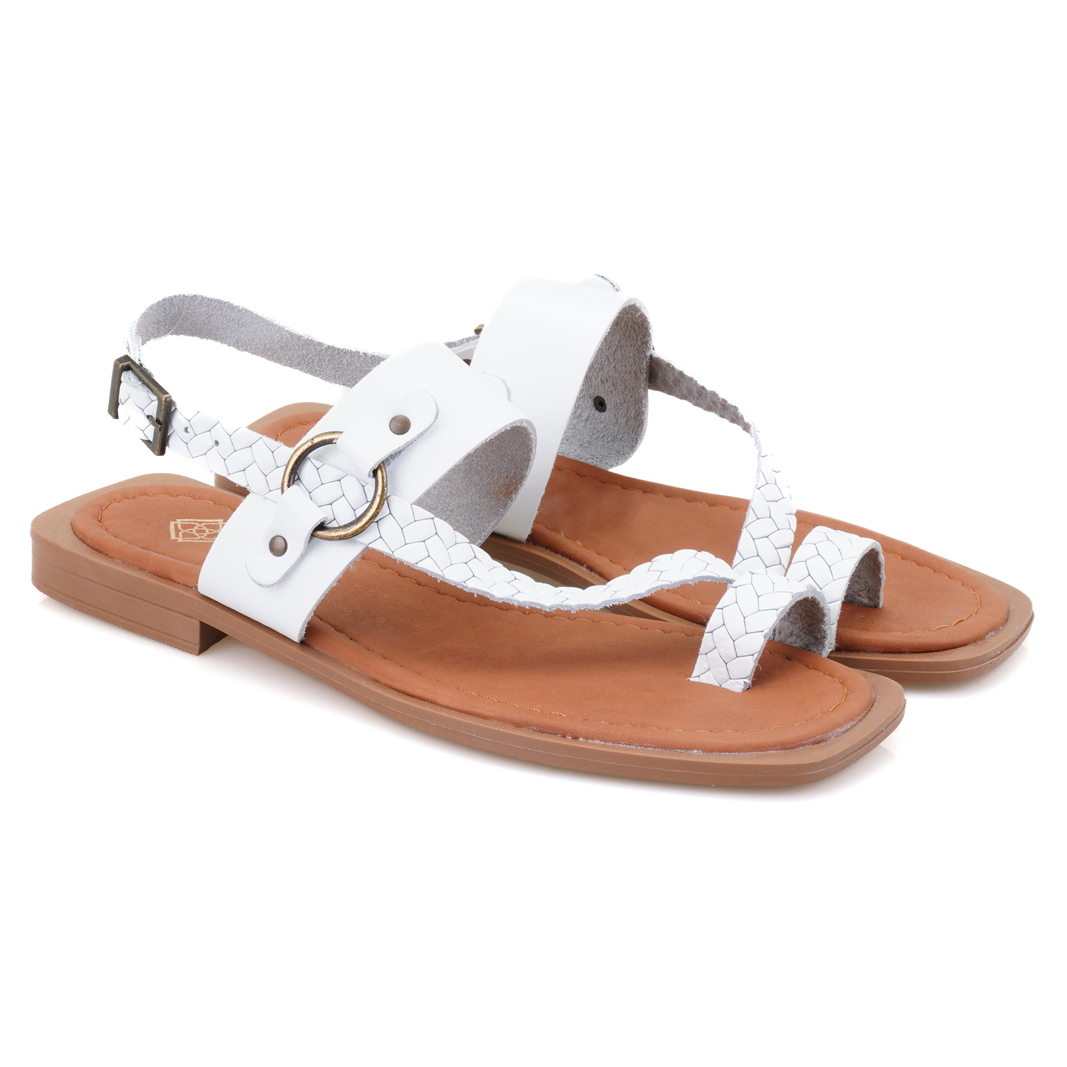 Kadın Beyaz Örgü Baskılı Deri Sandalet