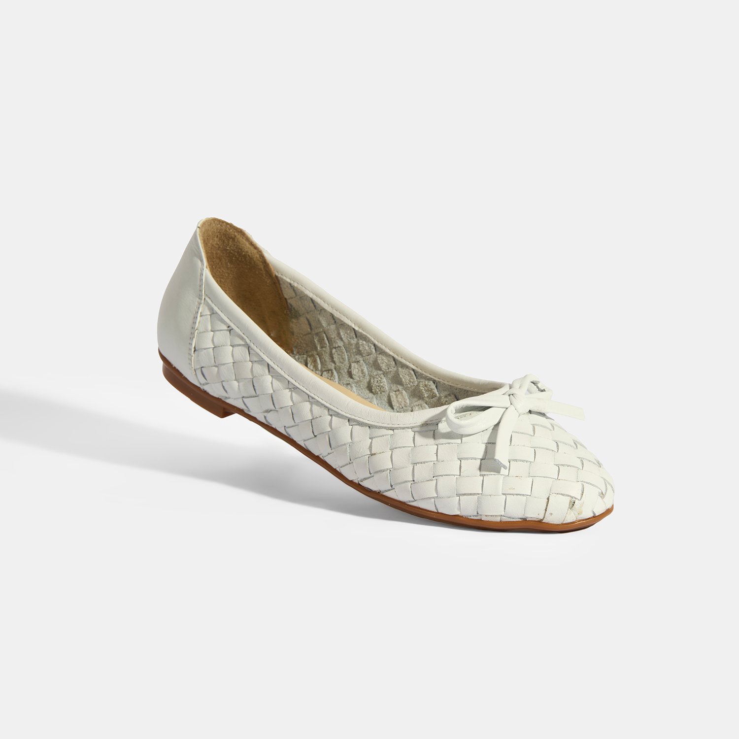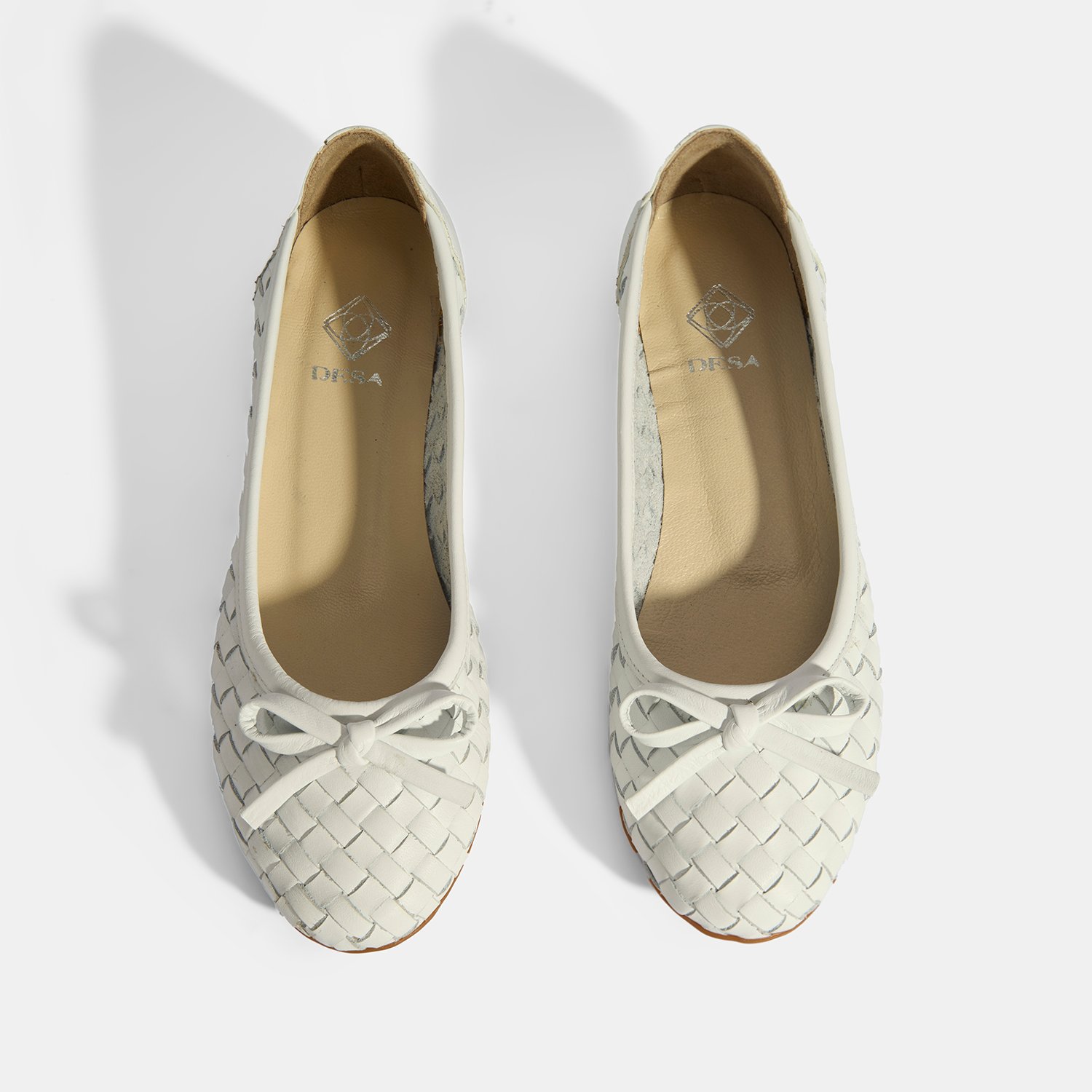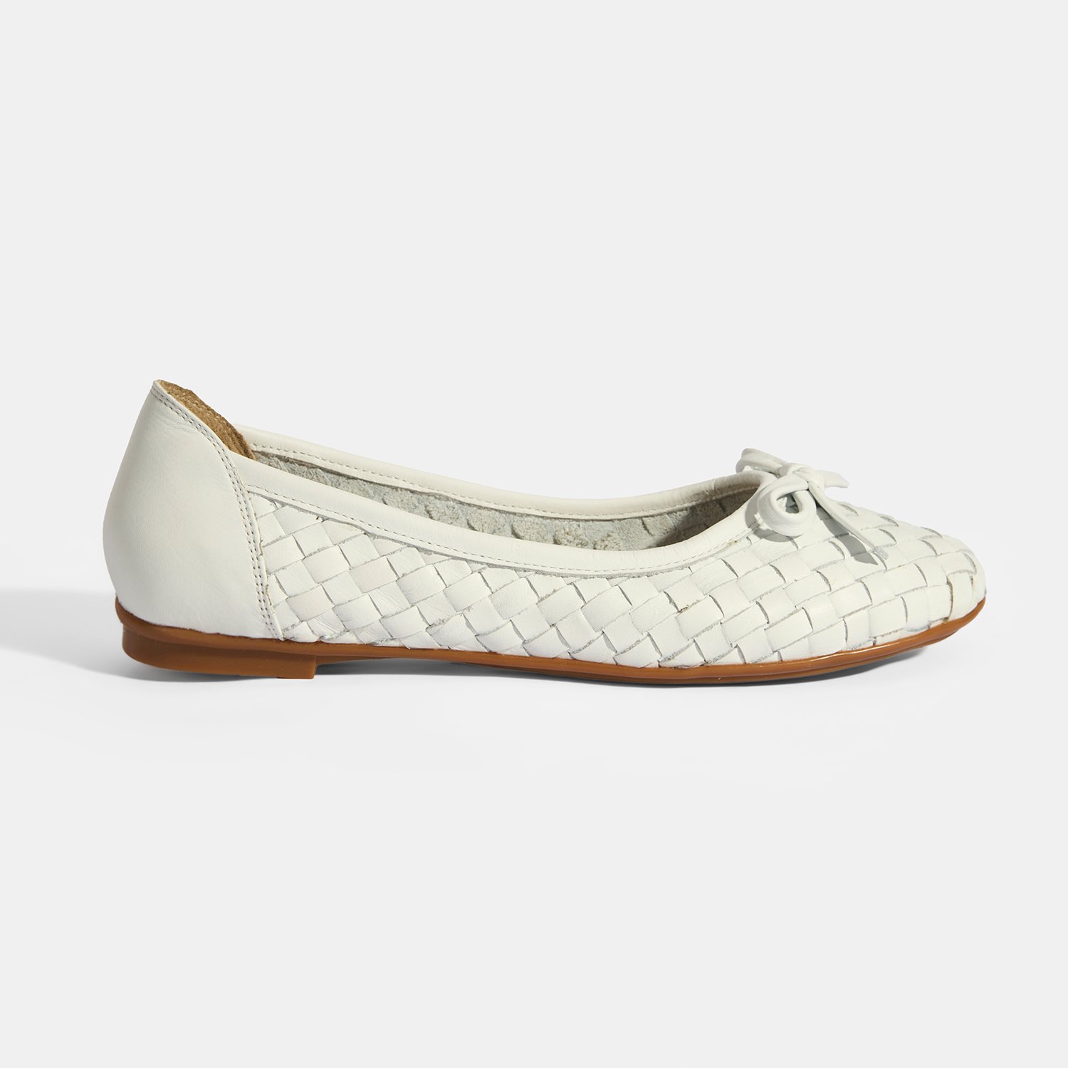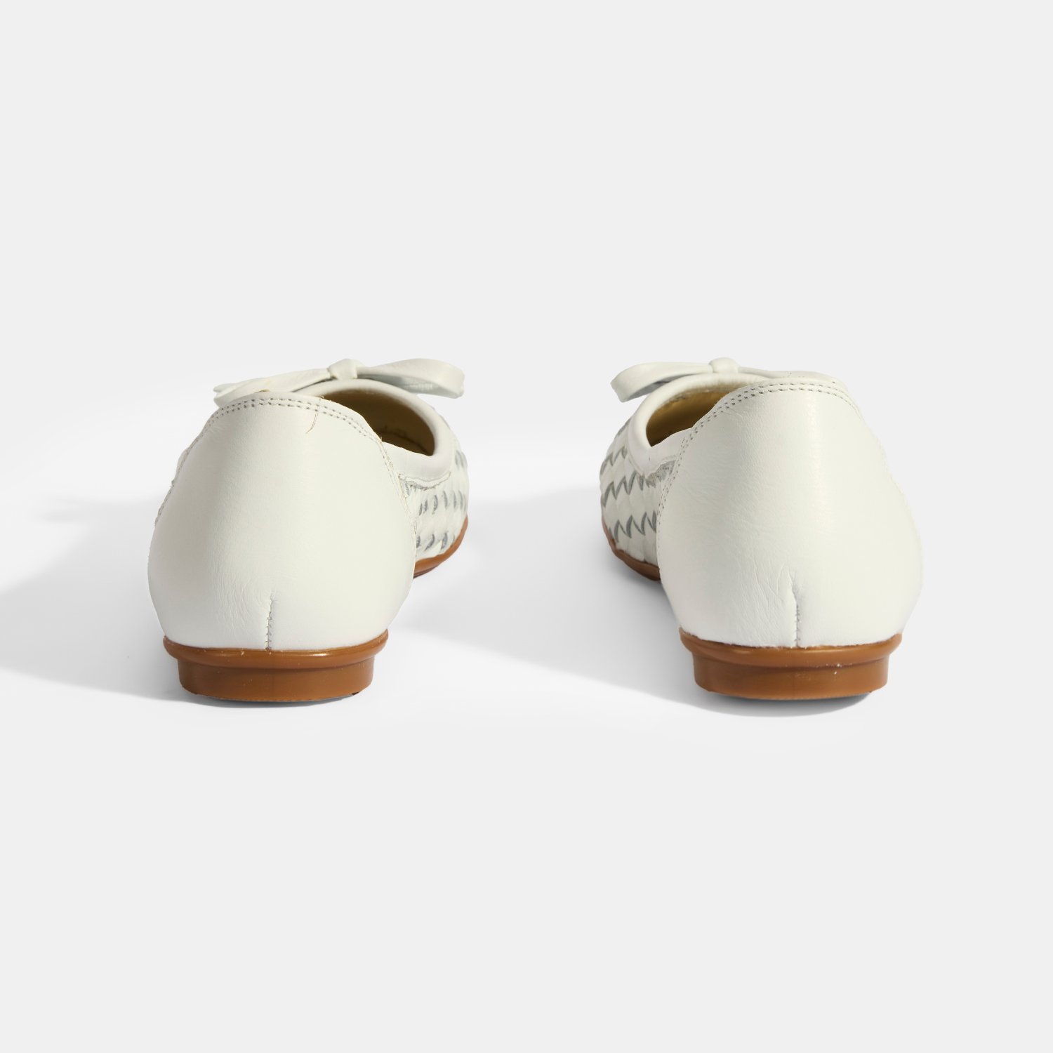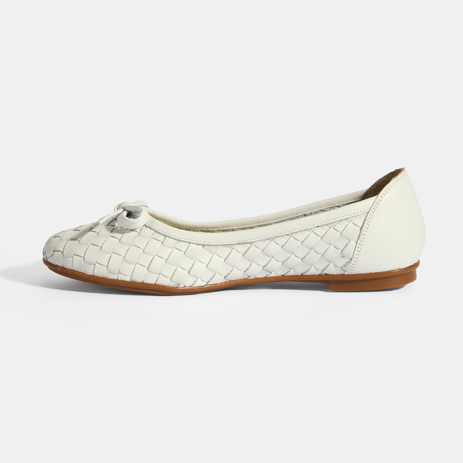 Kadın Beyaz Örgü Detaylı Fiyonklu Deri Babet