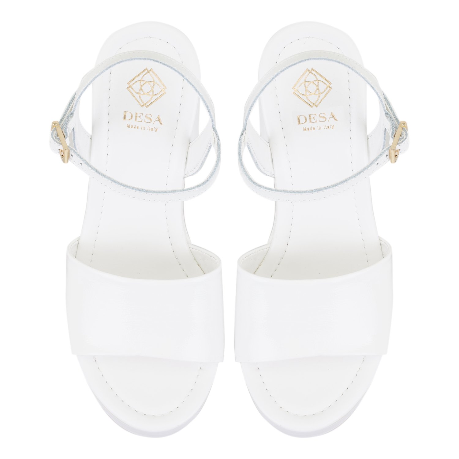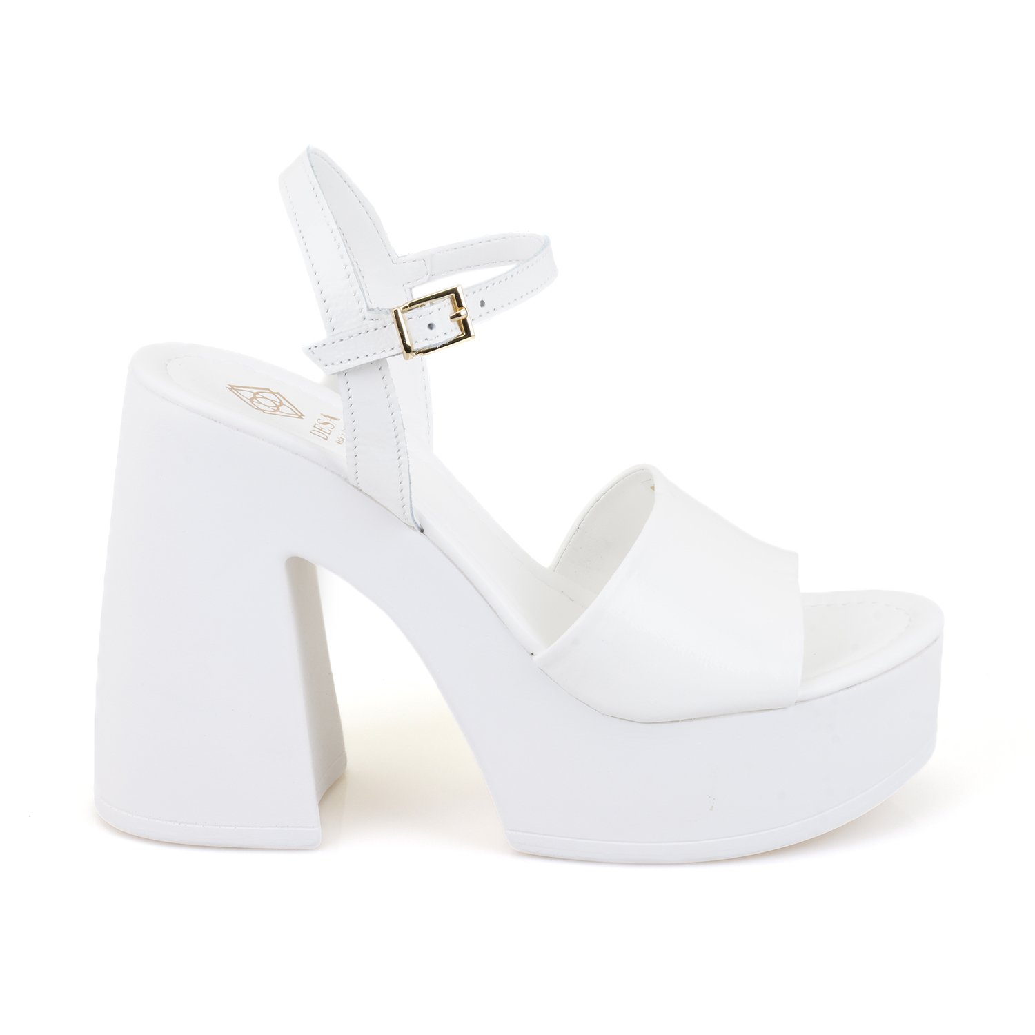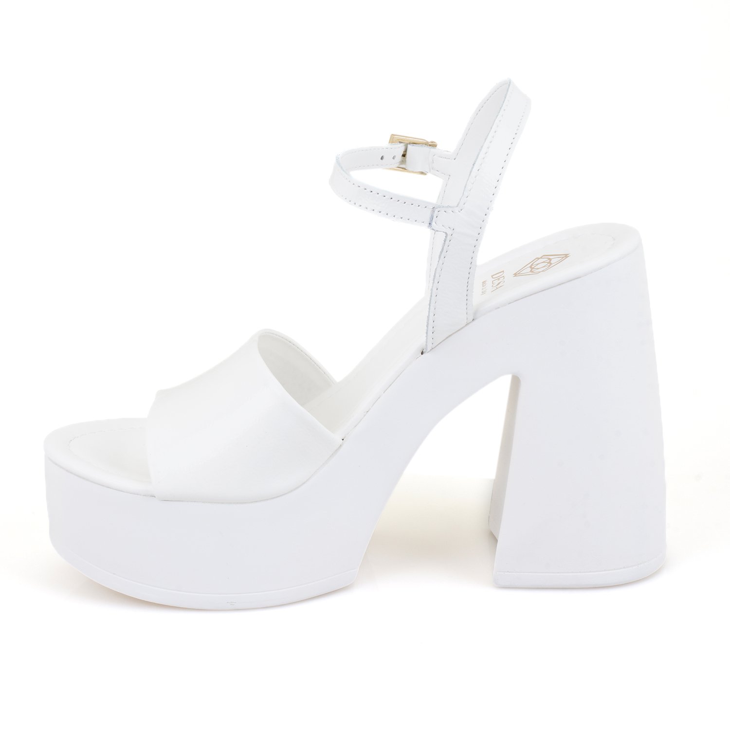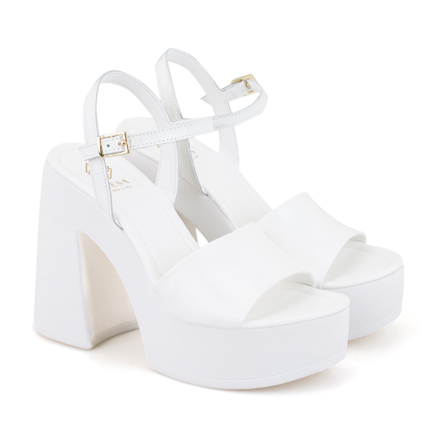 Kadın Beyaz Platform Topuklu Deri Sandalet