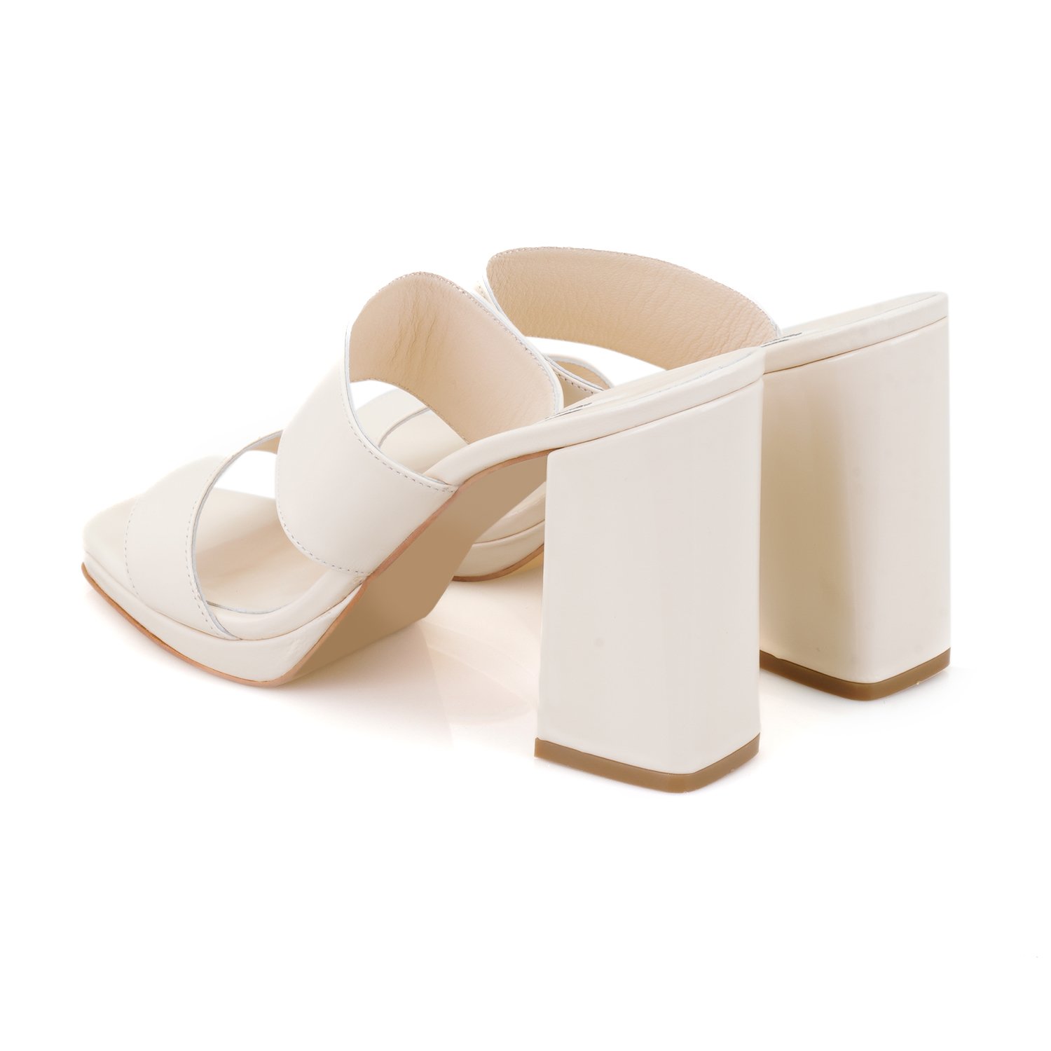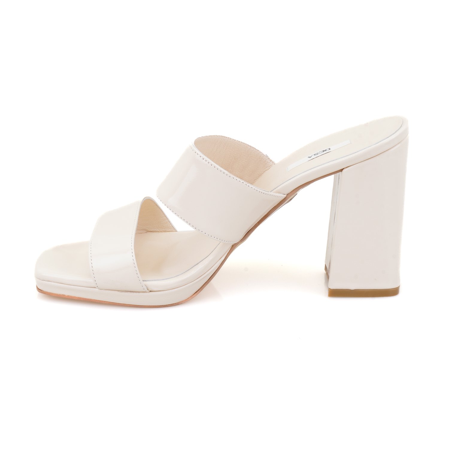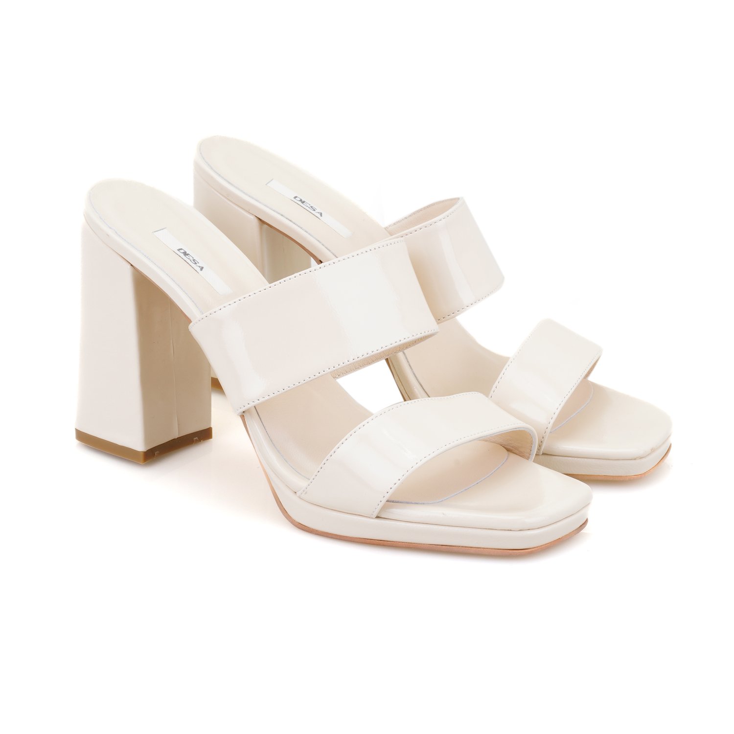 Kadın Beyaz Rugan Deri Platformlu Terlik
