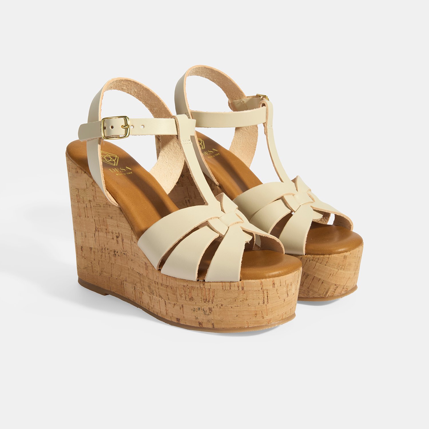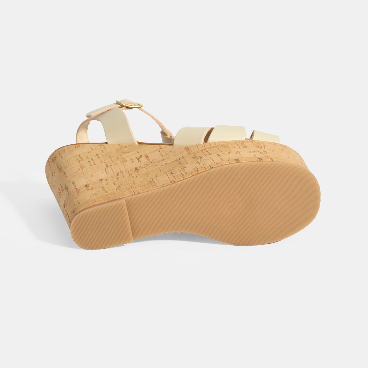 %100 deri, astarsız, pu iç tabanlı, mantar sargılı pu tabanlı, ayarlanabilir metal toka detaylı, kadın dolgu topuk sandalet.