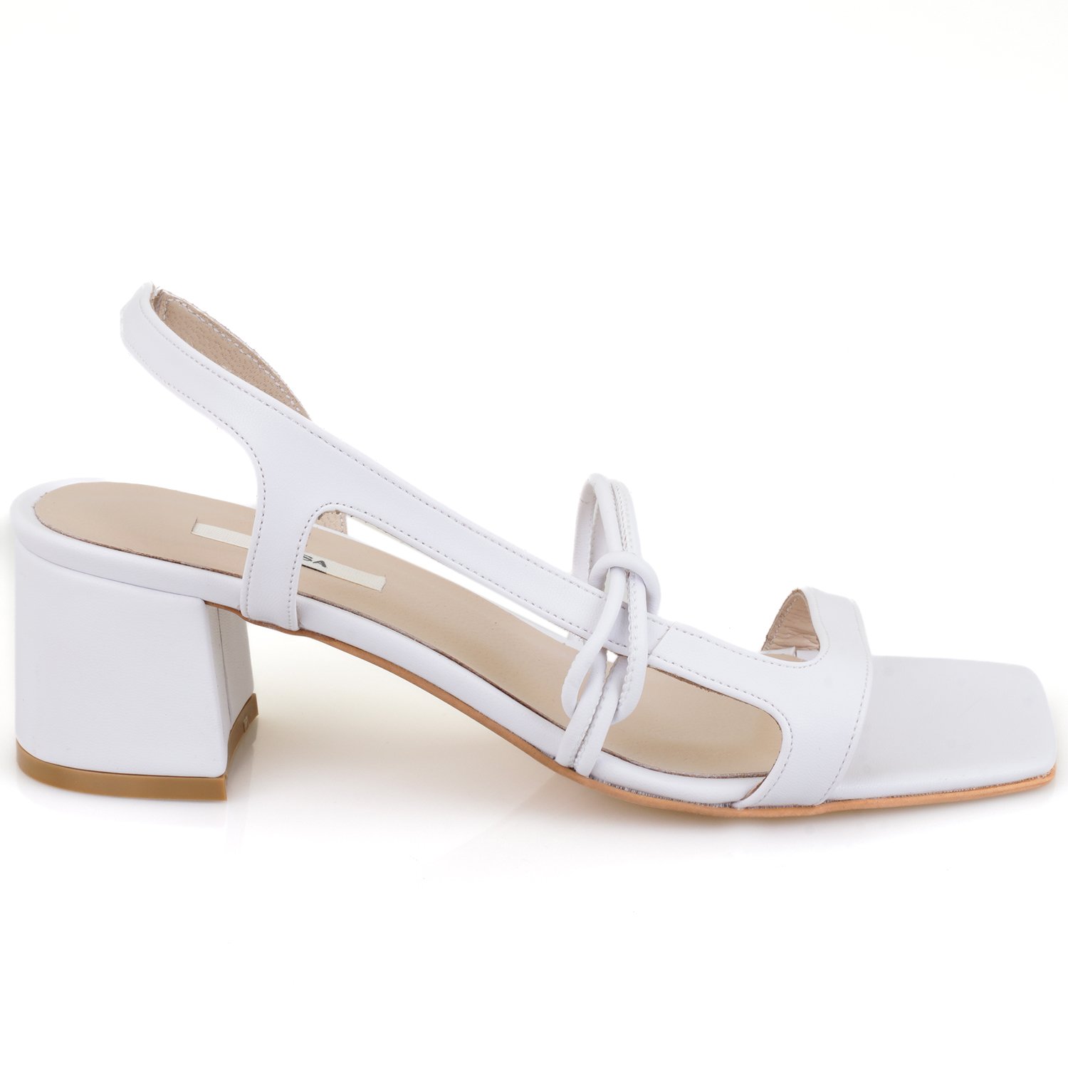 Pu iç astarlı, deri iç tabanlı, neolit tabanlı, kadın topuklu sandalet.