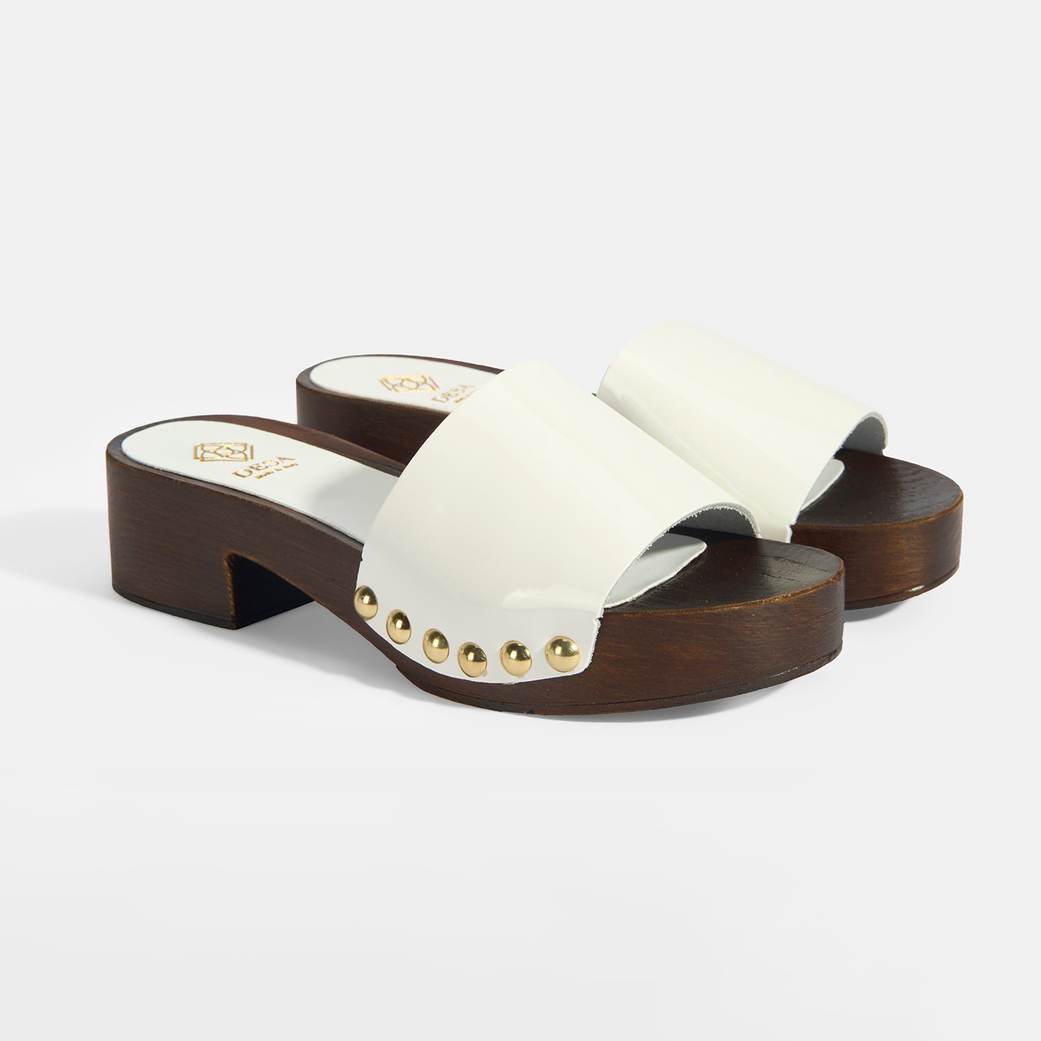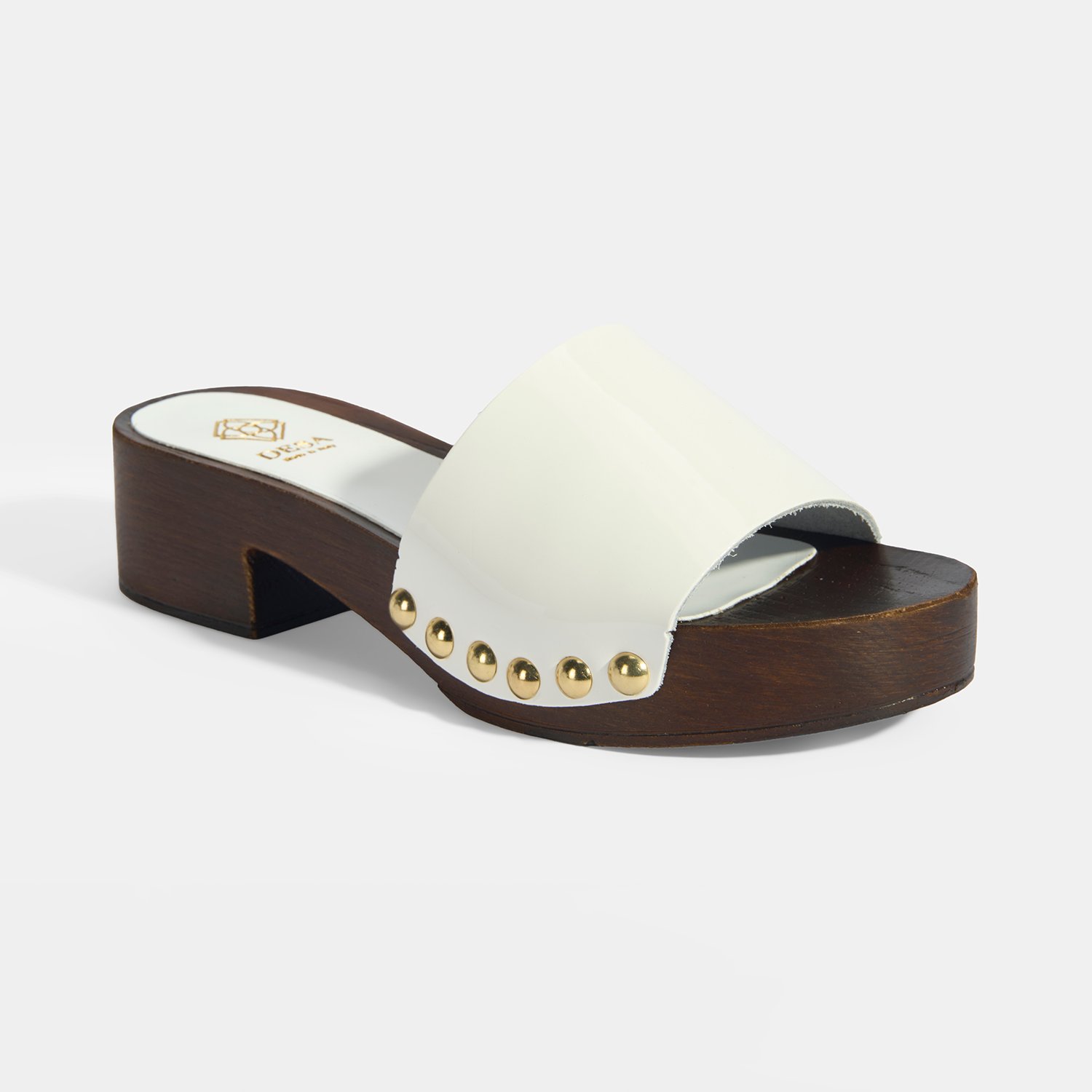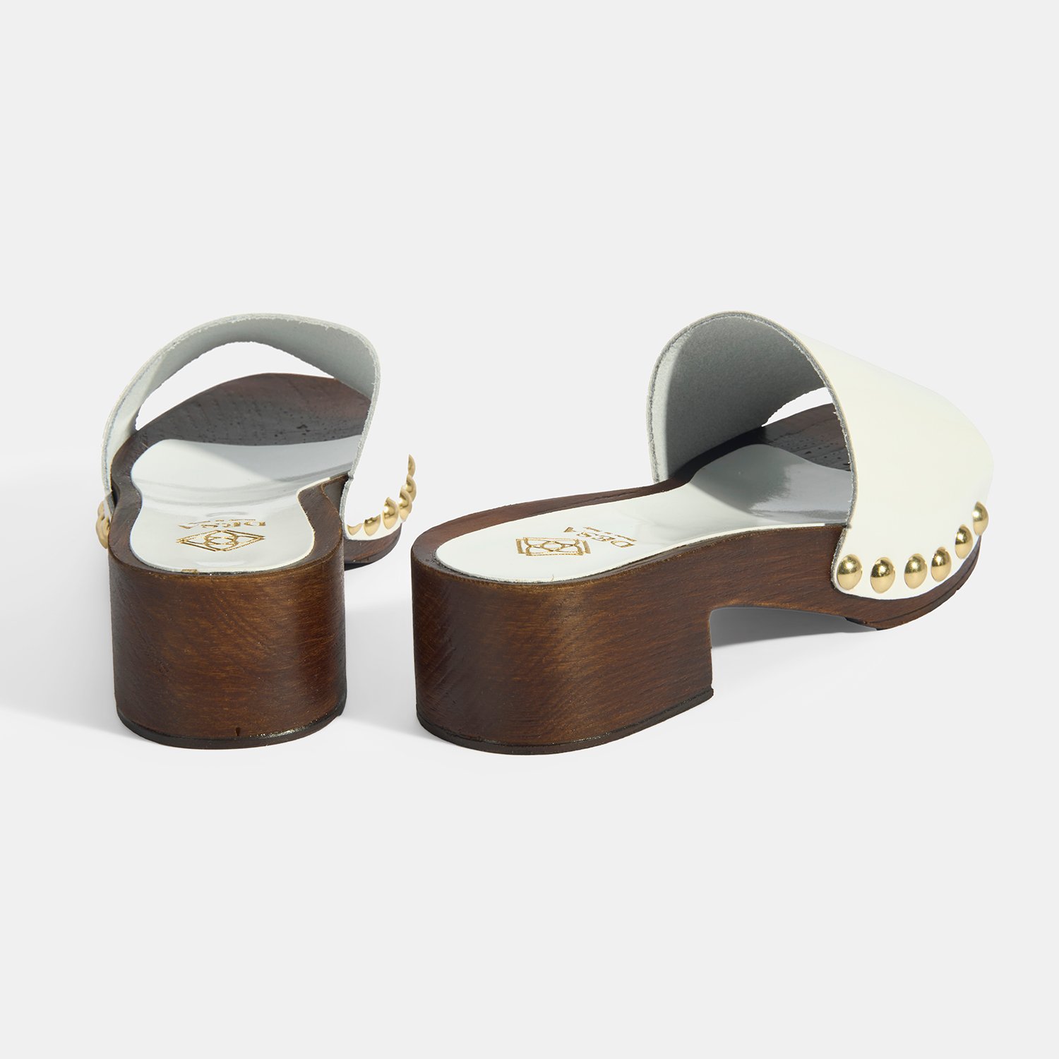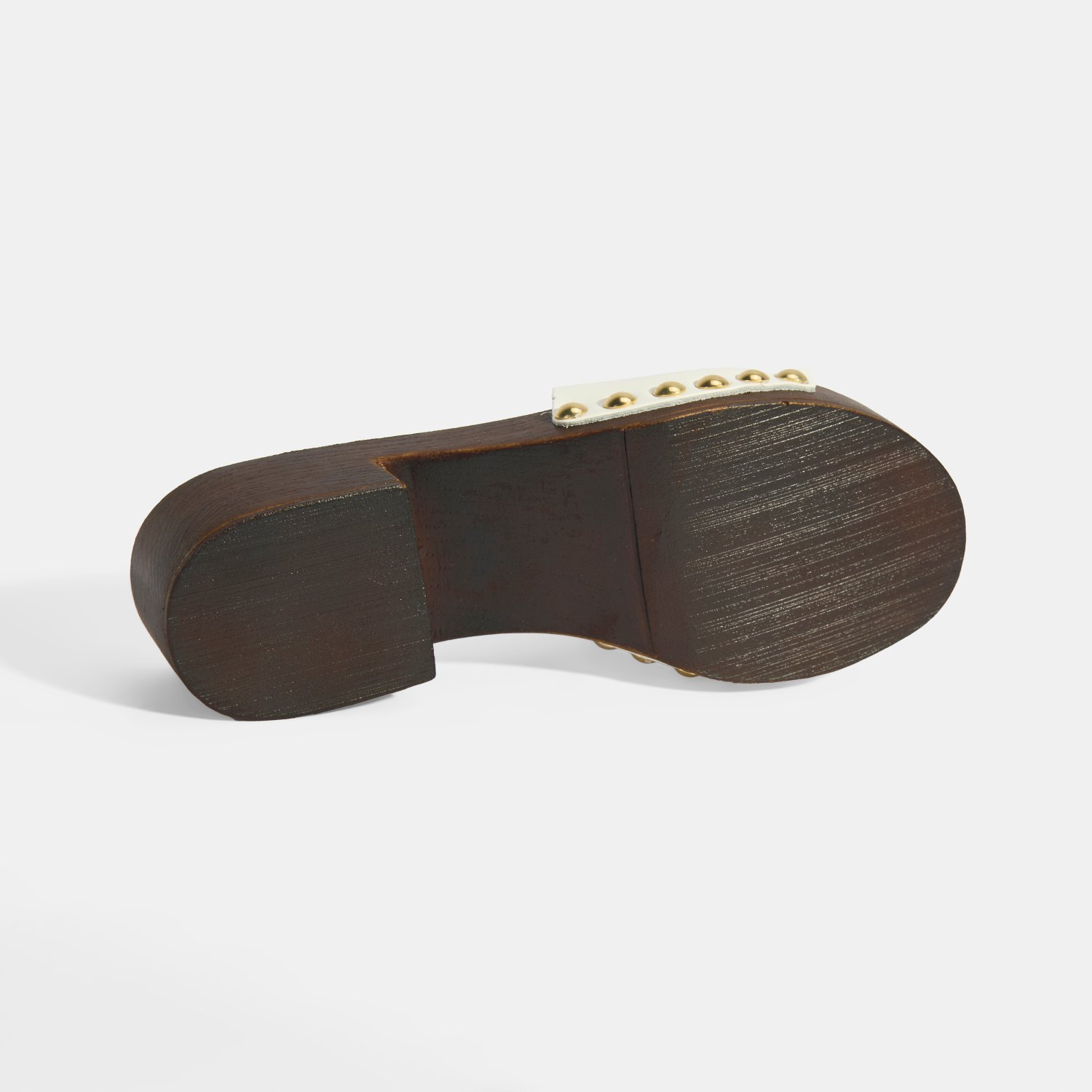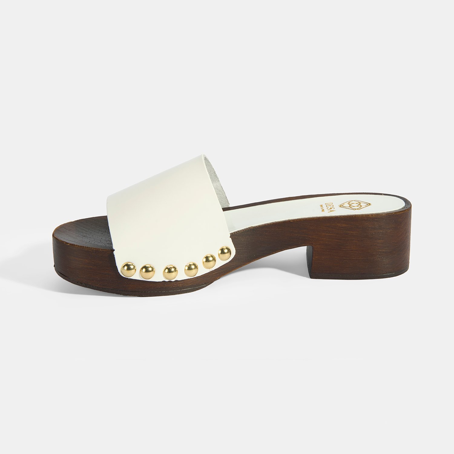 Kadın Beyaz Zımba Detaylı Topuklu Terlik