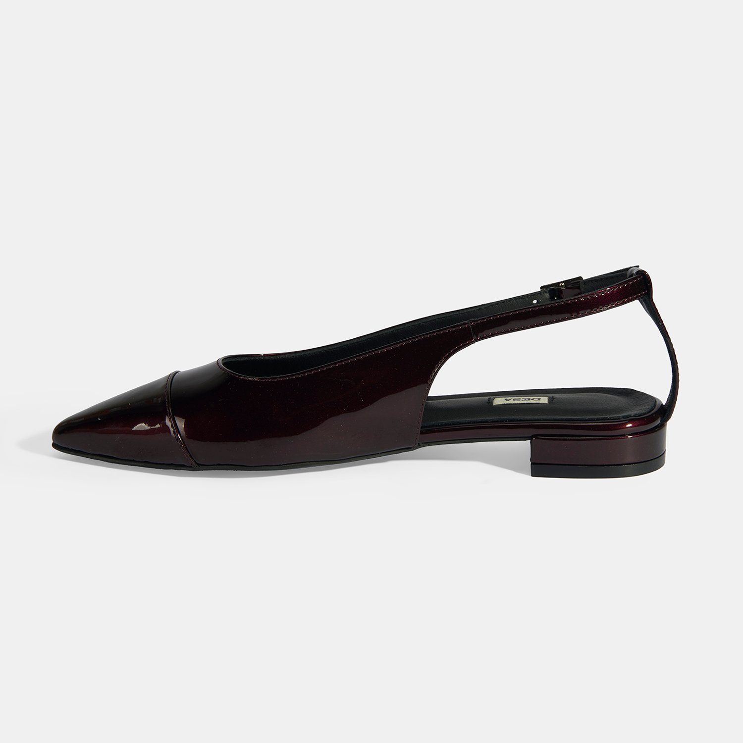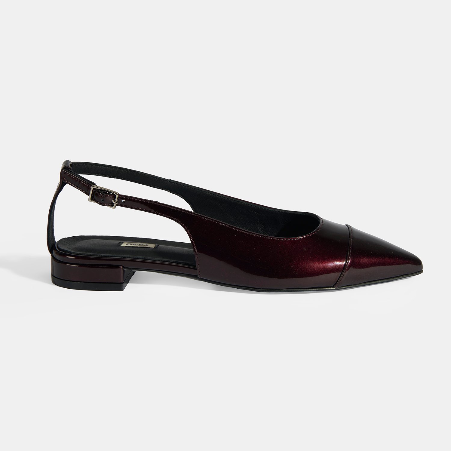 %100 sedefli rugan, deri iç tabanlı, deri astarlı, ayarlanabilir metal tokalı, neolit tabanlı, kadın babet.