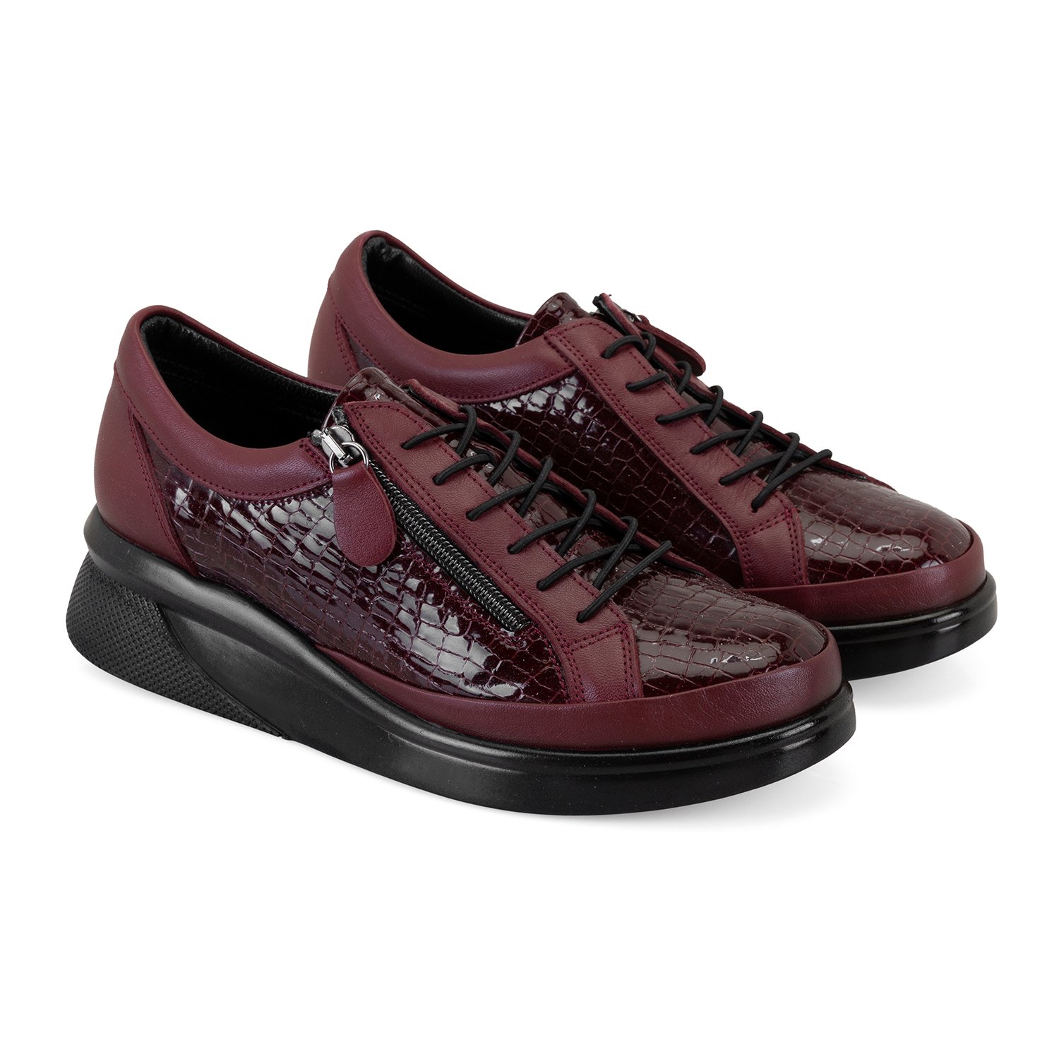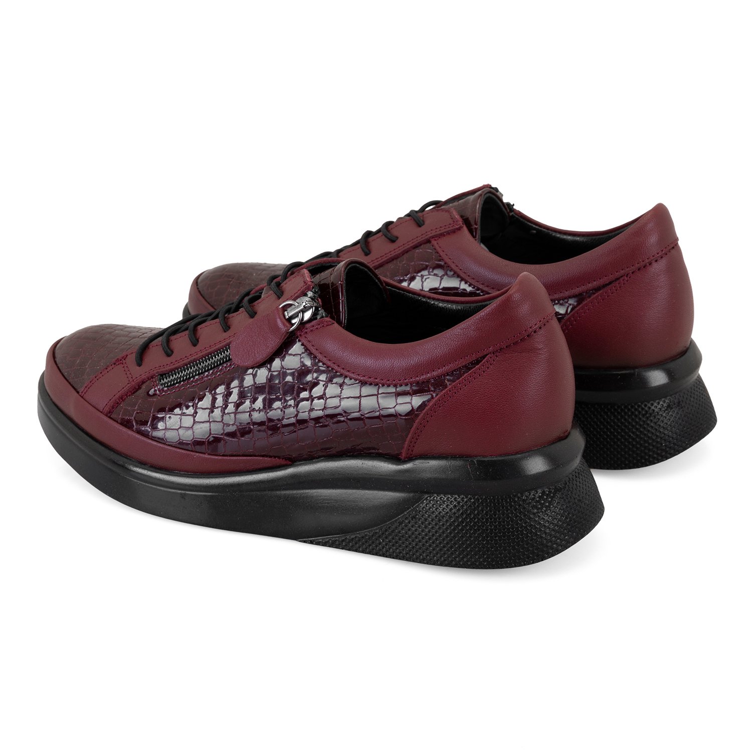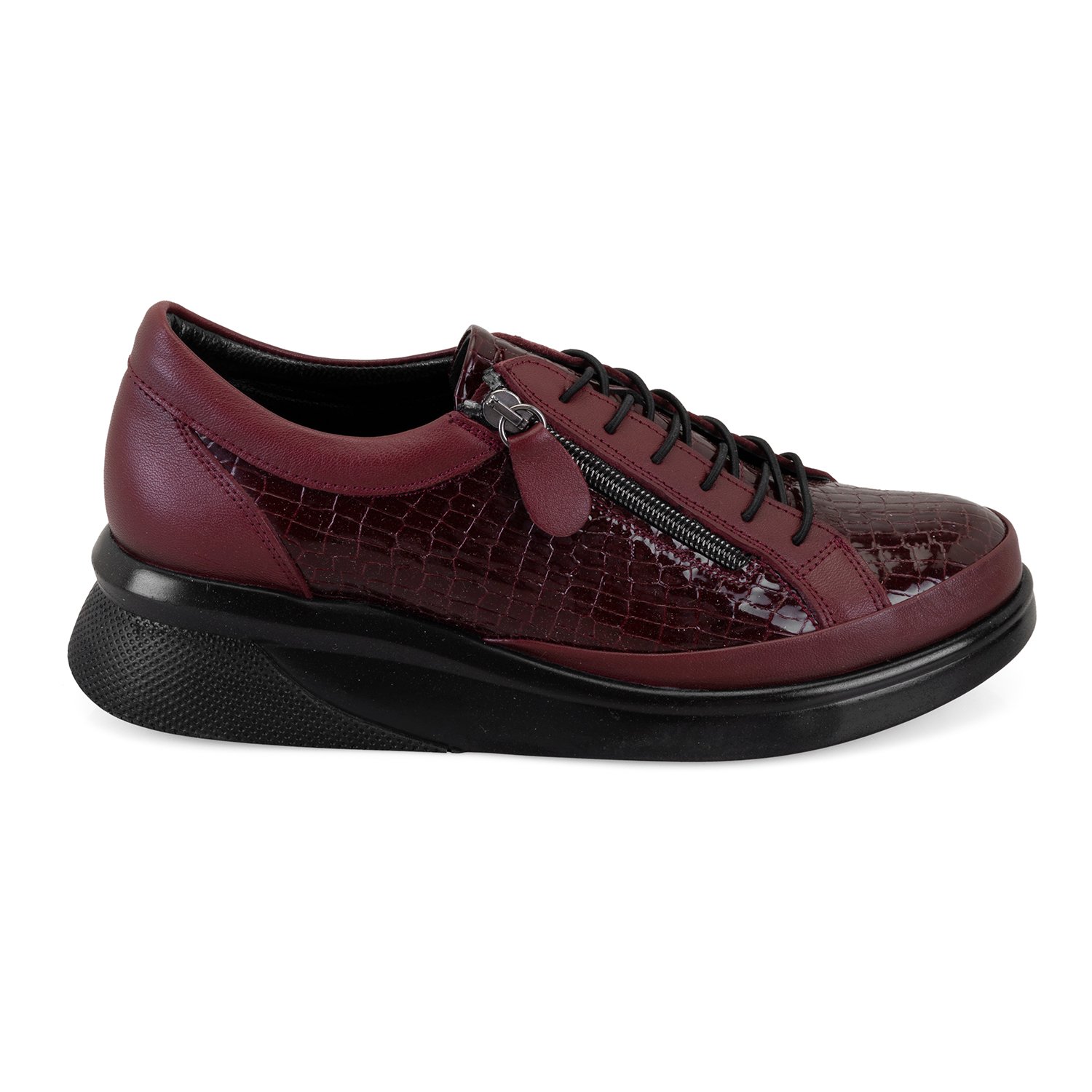 Kadın Bordo DesaComfort Kroko Baskılı Deri Günlük Ayakkabı