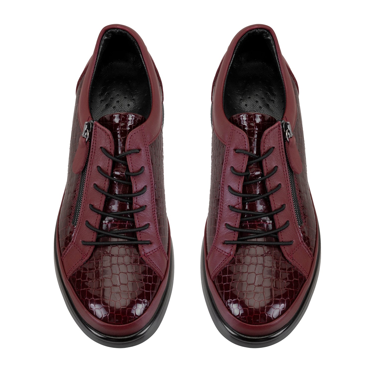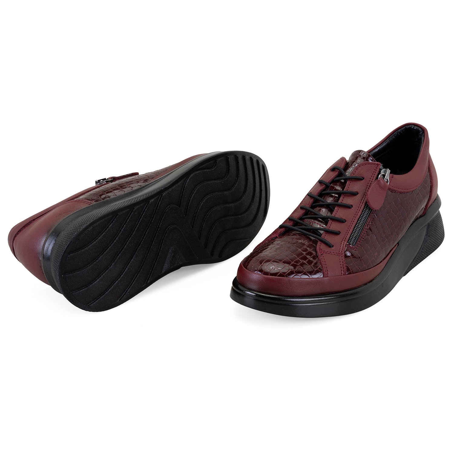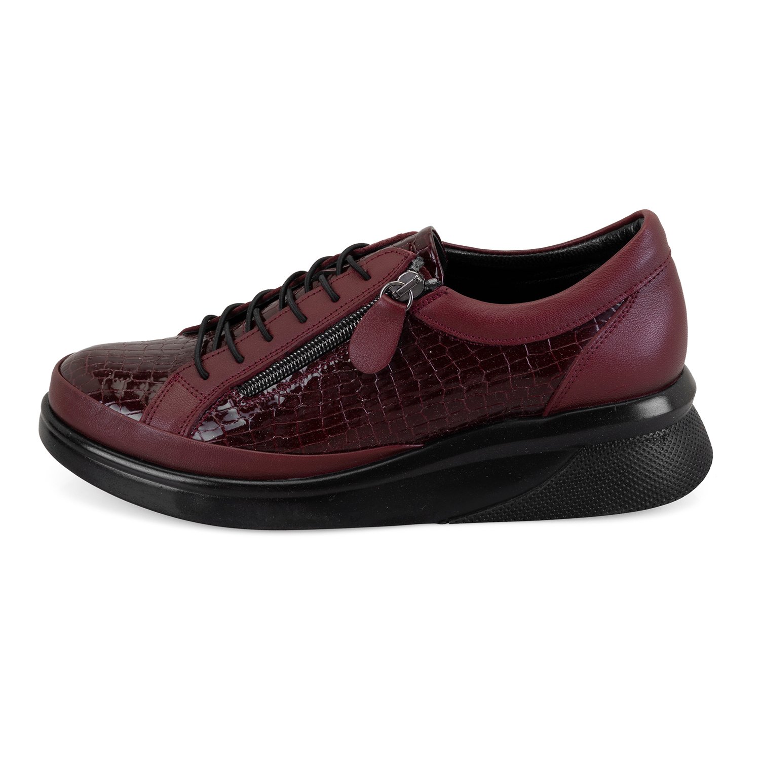 Kadın Bordo DesaComfort Kroko Baskılı Deri Günlük Ayakkabı