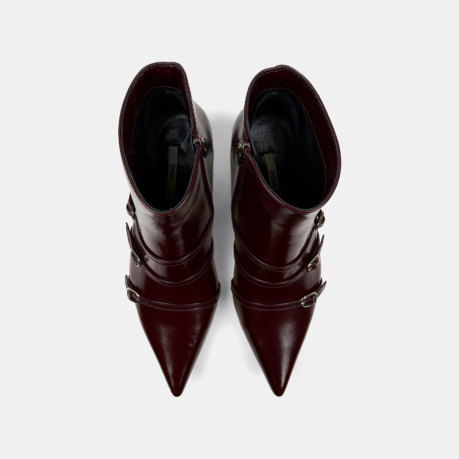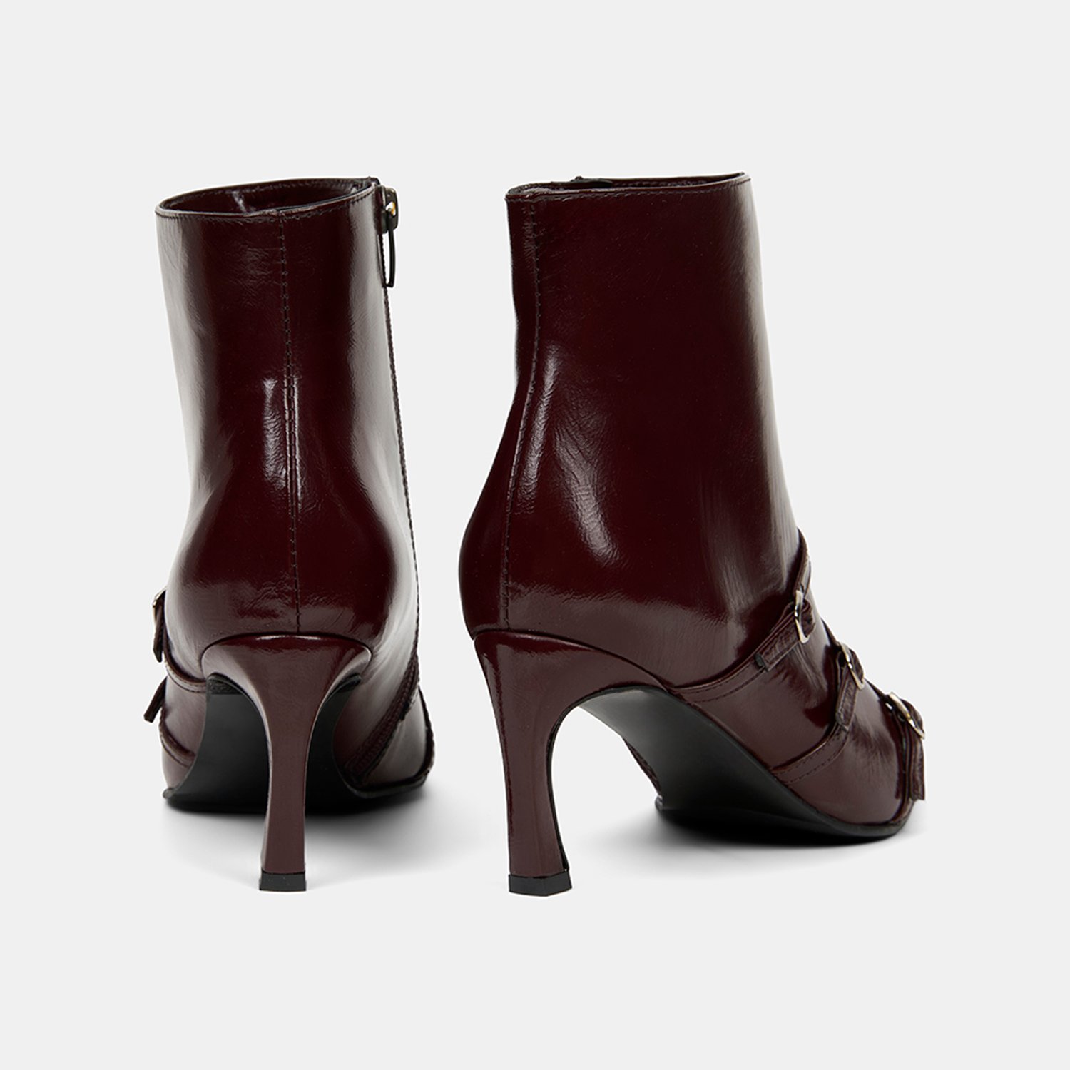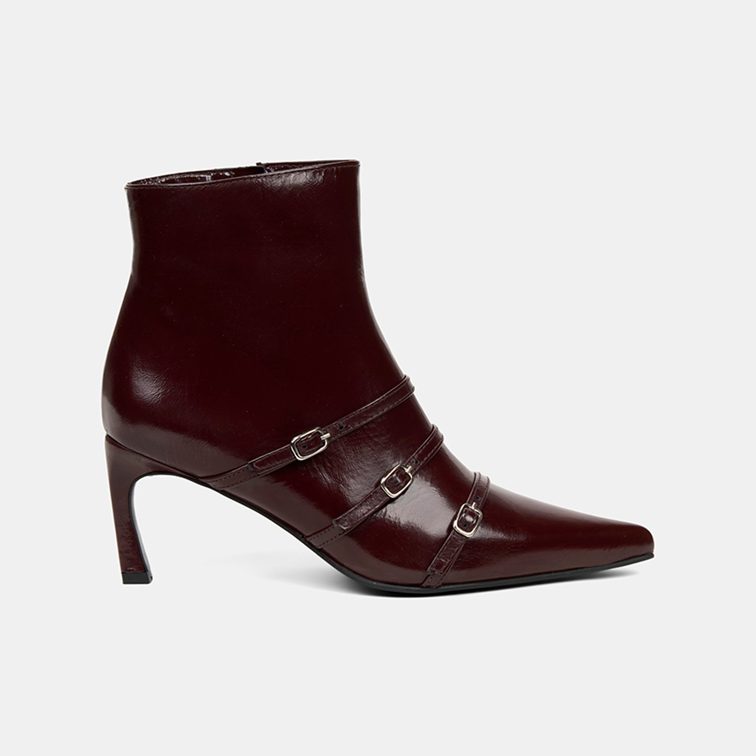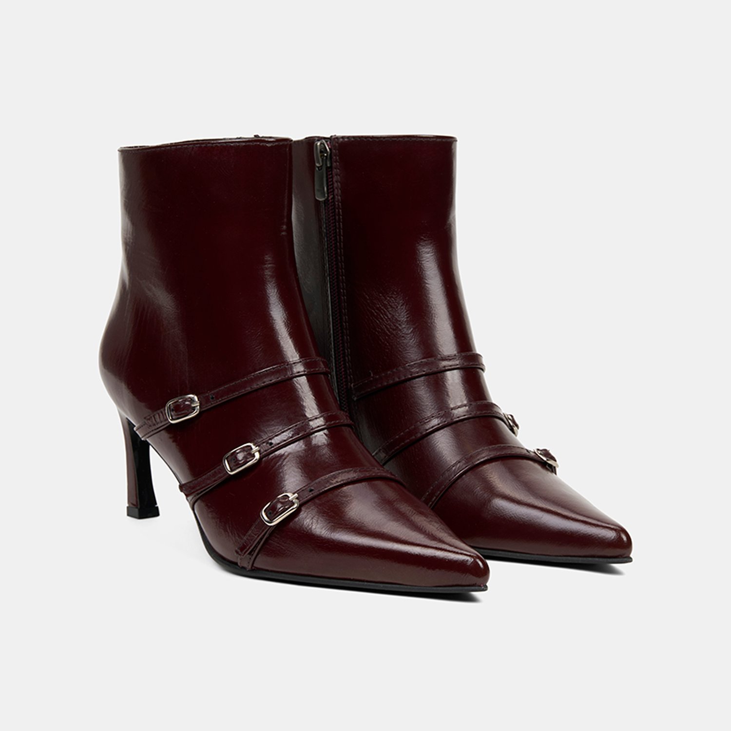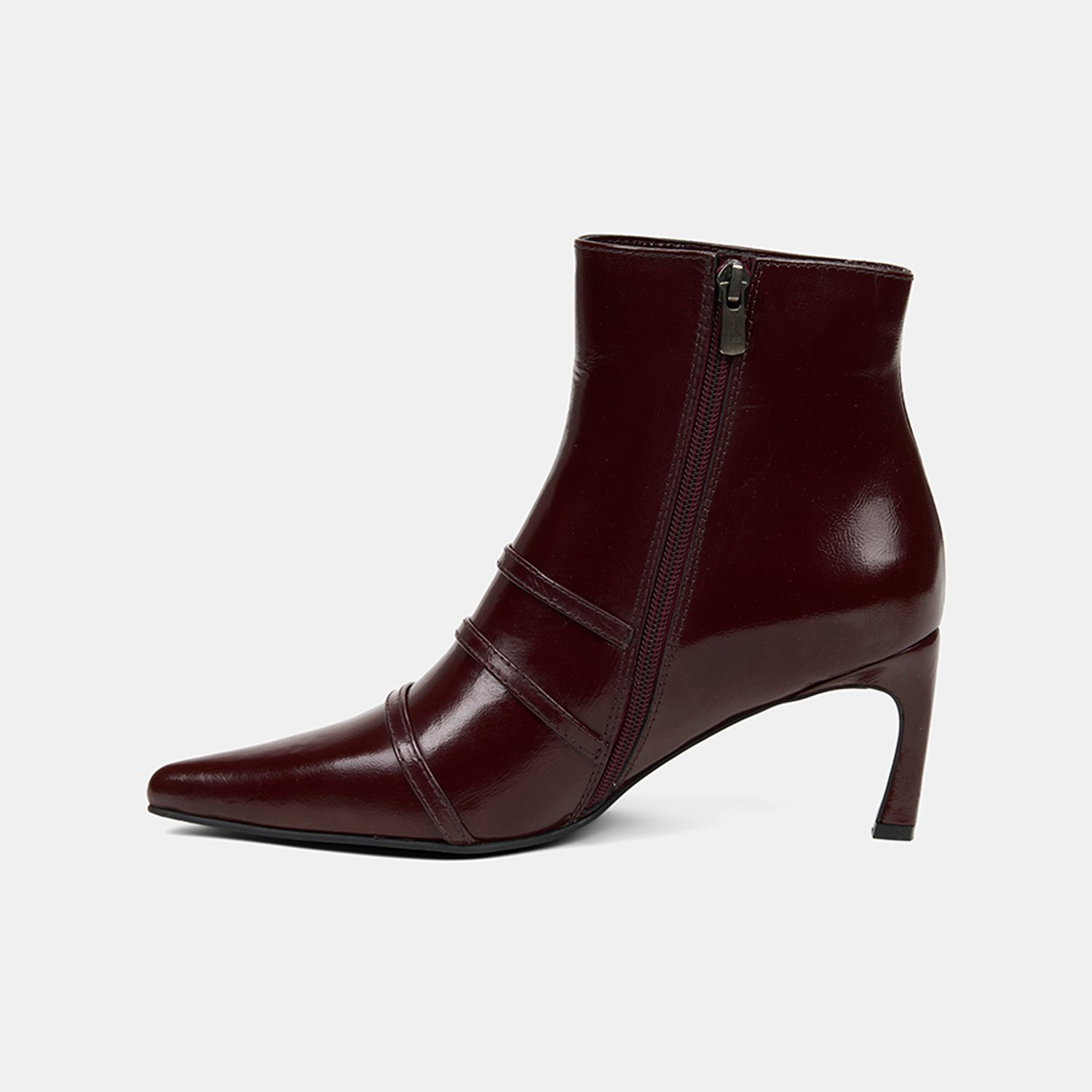Kadın Bordo Fermuarlı İnce Topuklu Sivri Burunlu Deri Bot