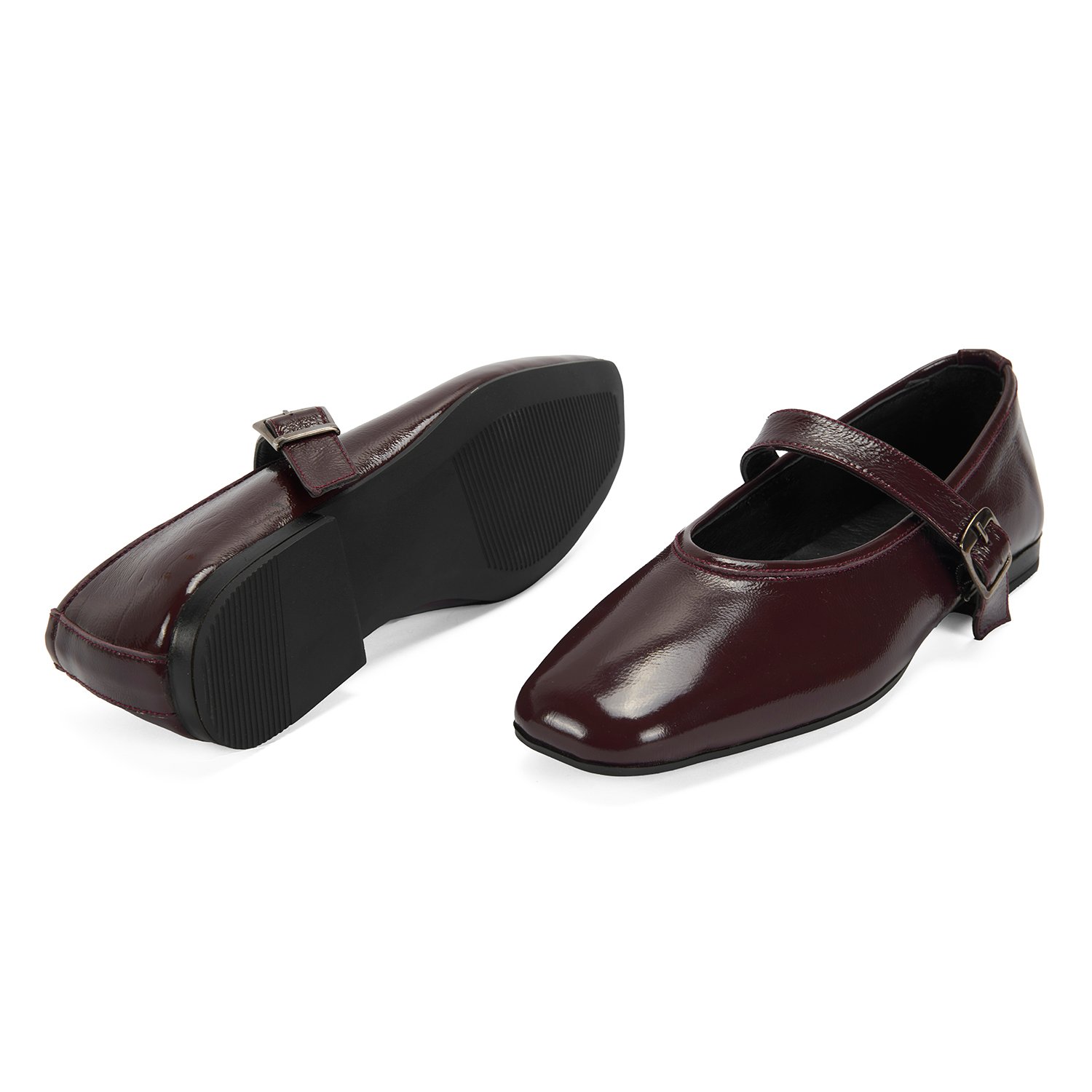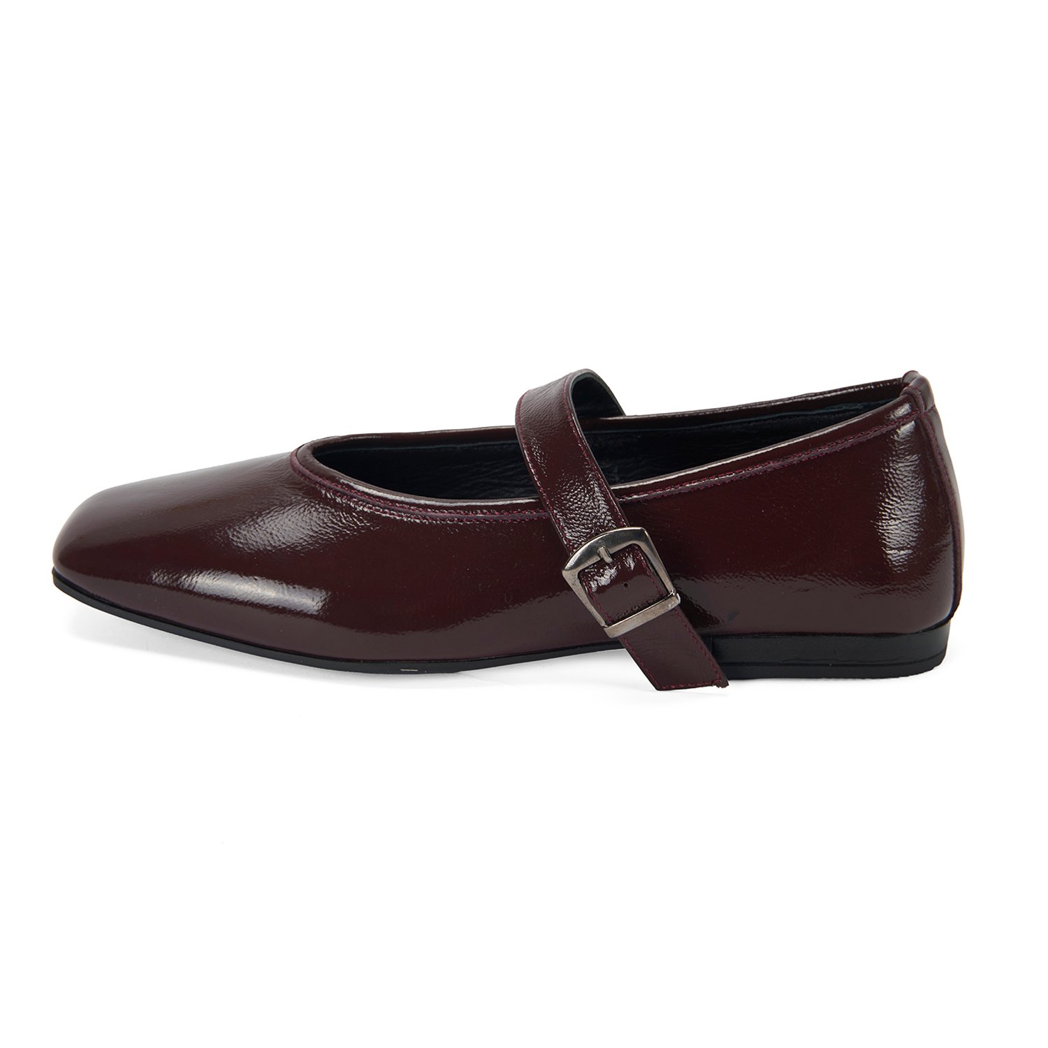 Kadın Bordo Kemer Aksesuarlı Rugan Mary Jane Babet