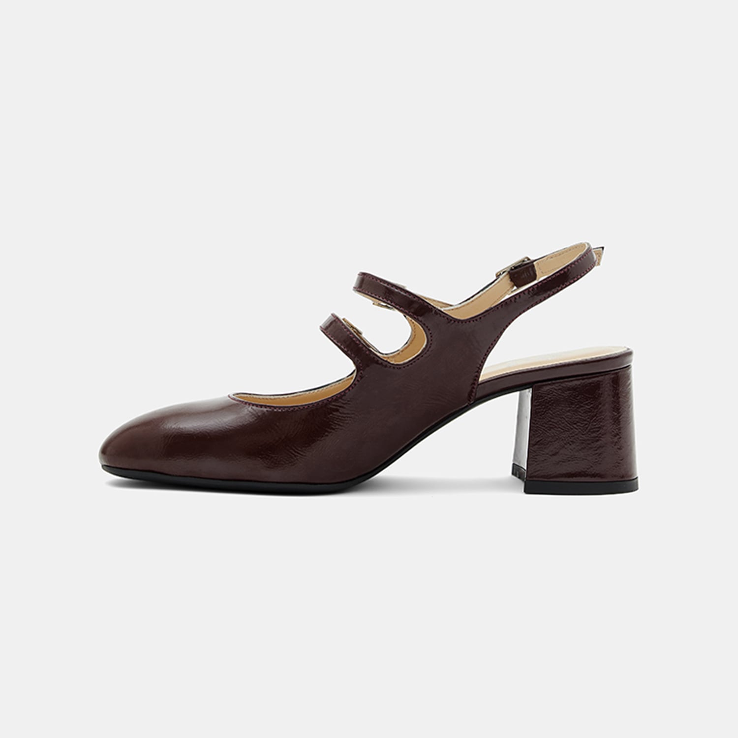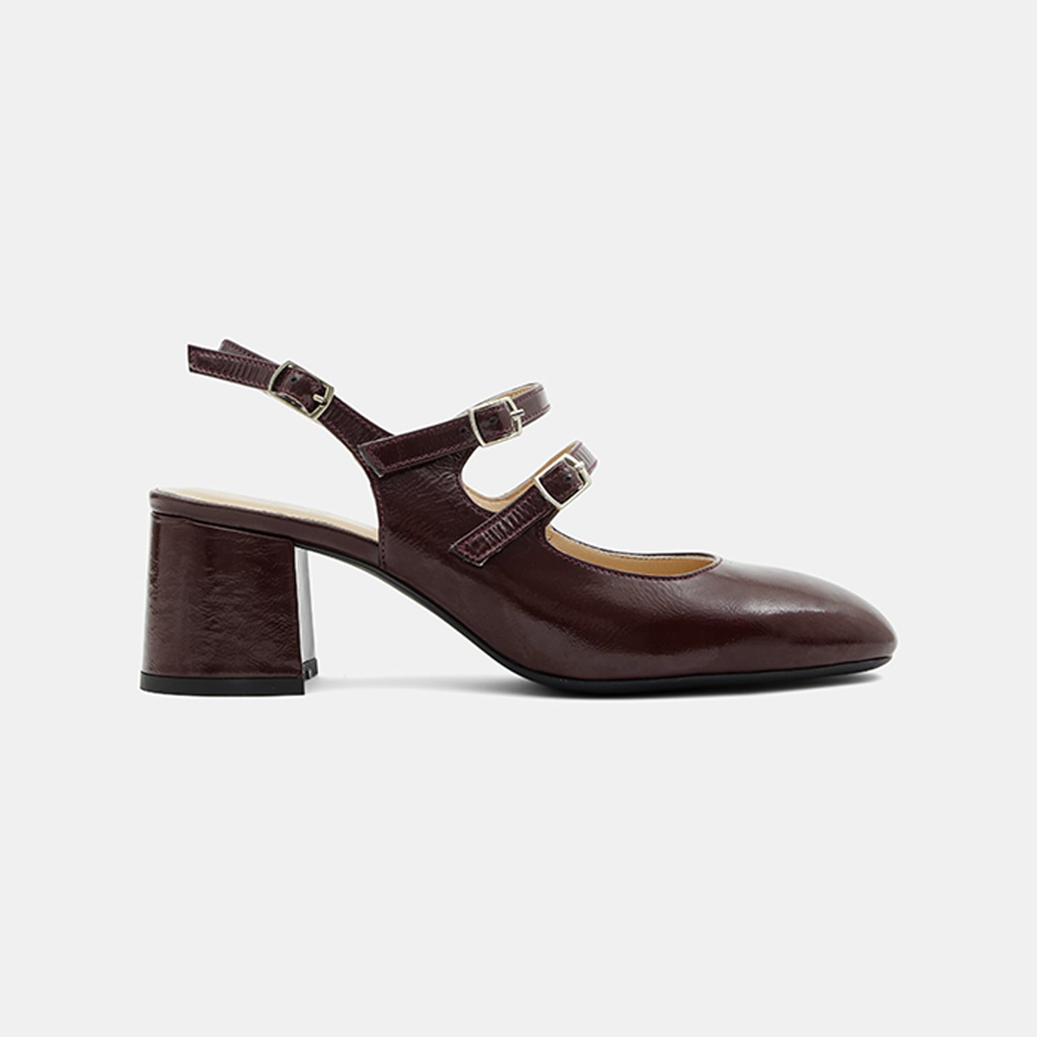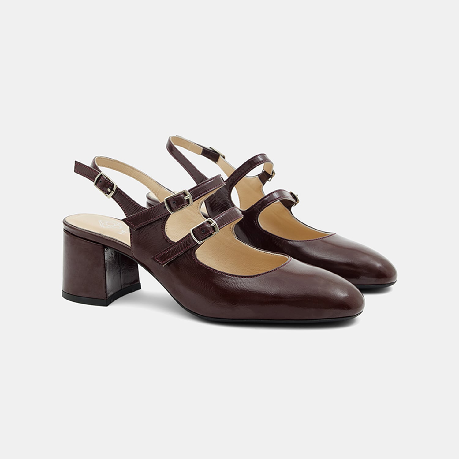 Kadın Bordo Tokalı Kalın Topuklu Klasik Rugan Deri Ayakkabı
