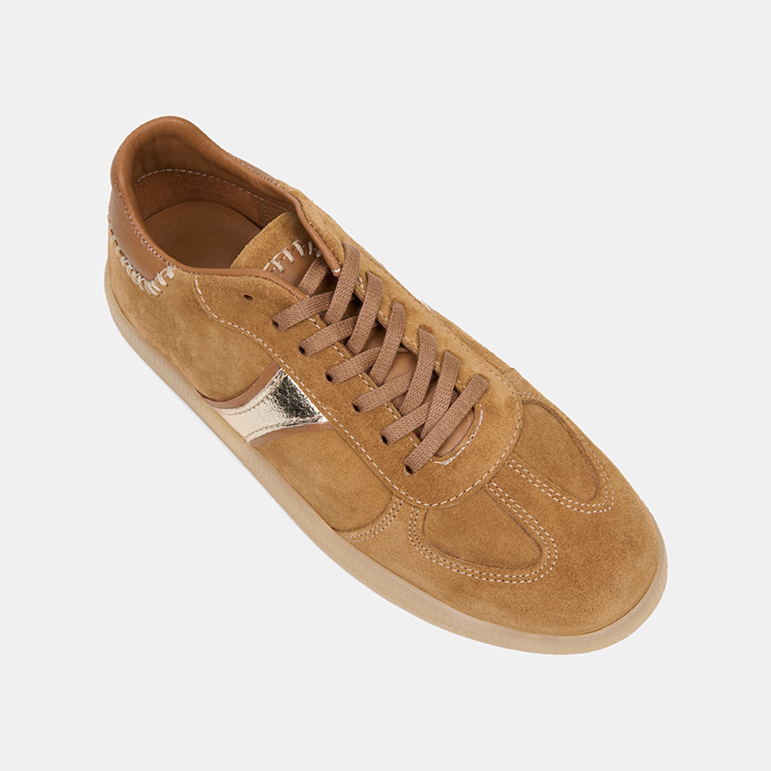 Kadın Camel Bağcıklı Metalik Şerit Detaylı Süet Sneaker