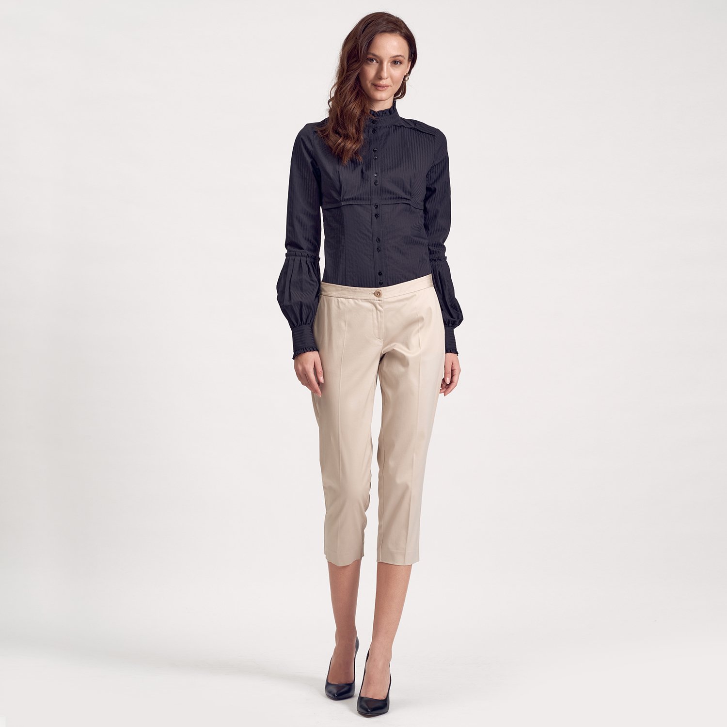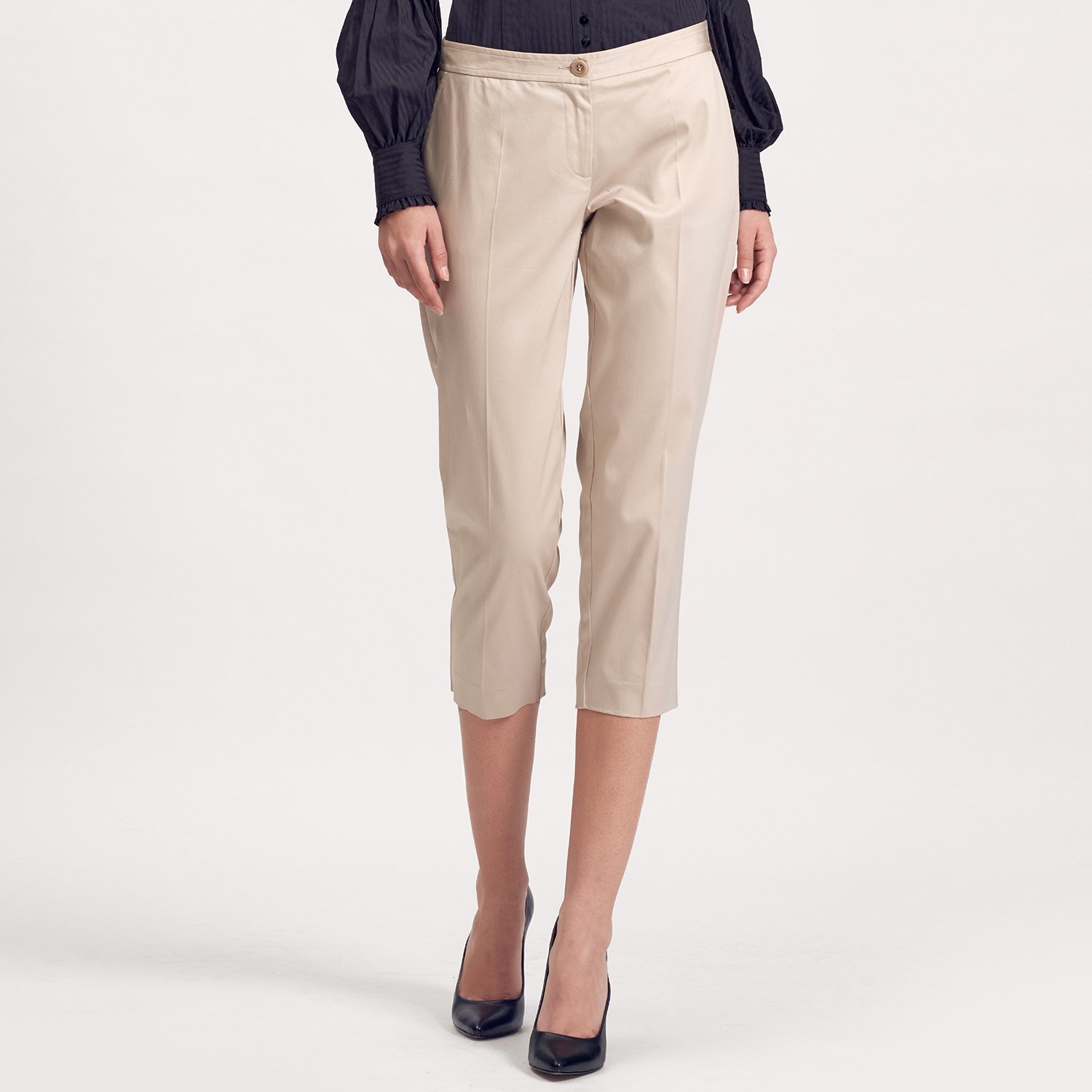 Kadın düşük bel, kısa paçalı, capri koton pantolon.
