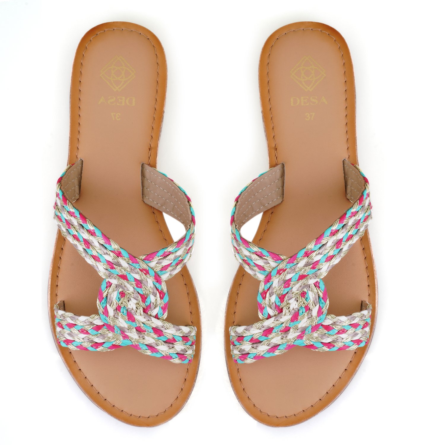 Kadın Çok Renkli Hasır Örgülü Terlik
