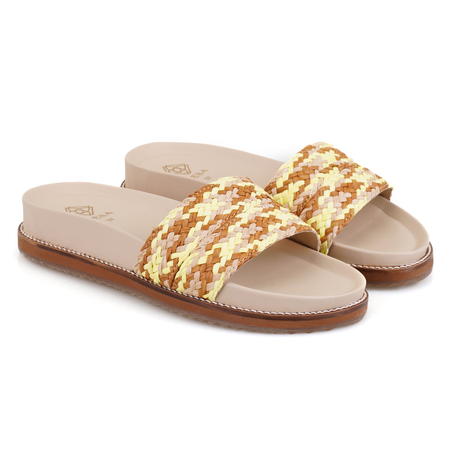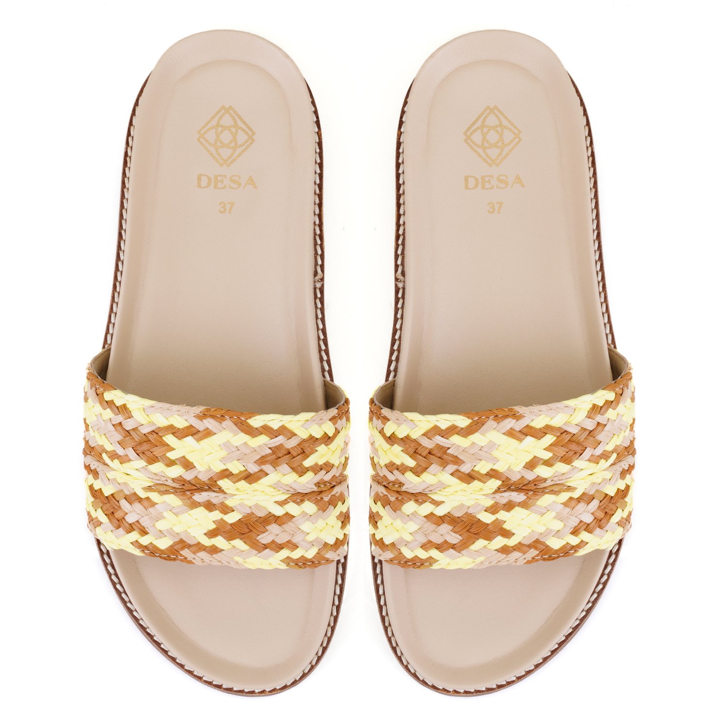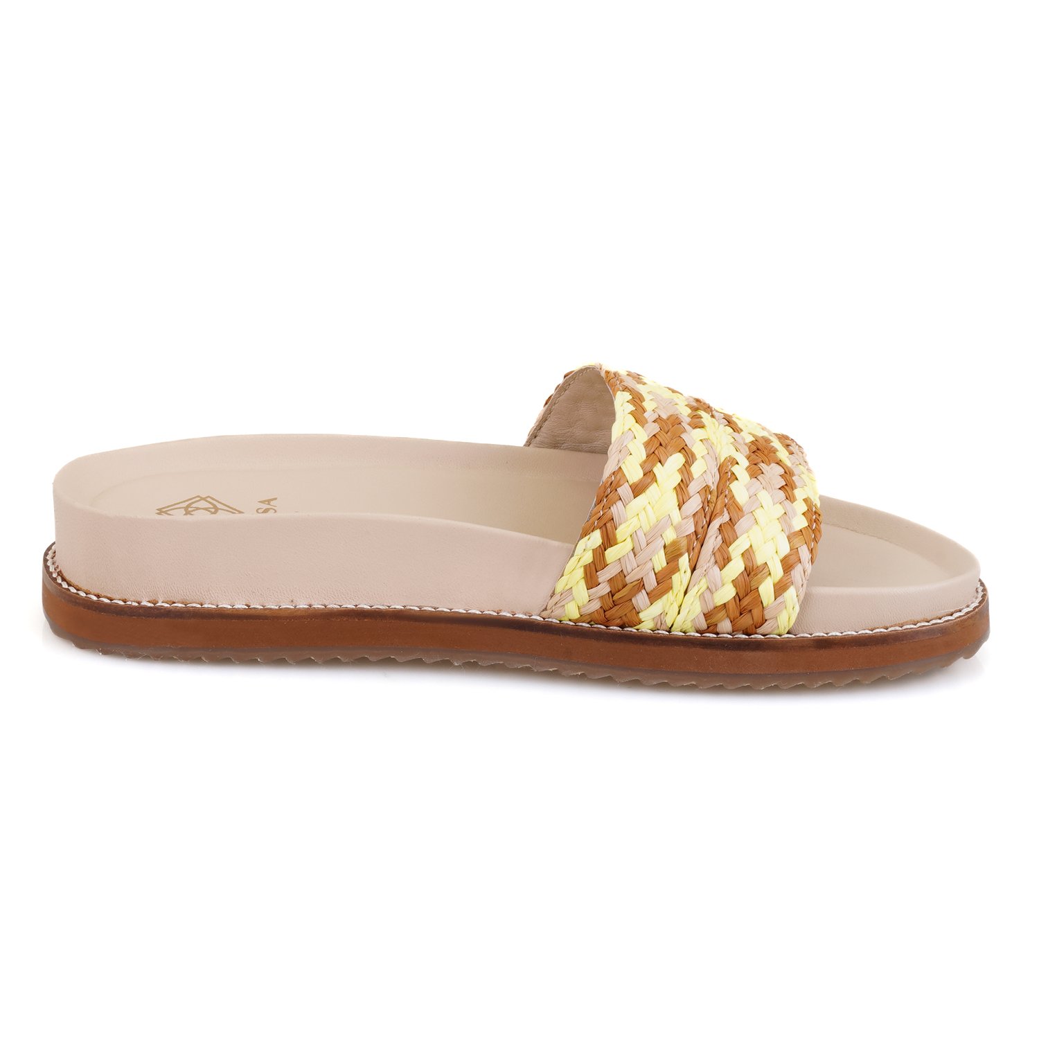 %100 rafya örgü, deri iç astarlı, deri iç tabanlı, tpu tabanlı, kadın terlik.
