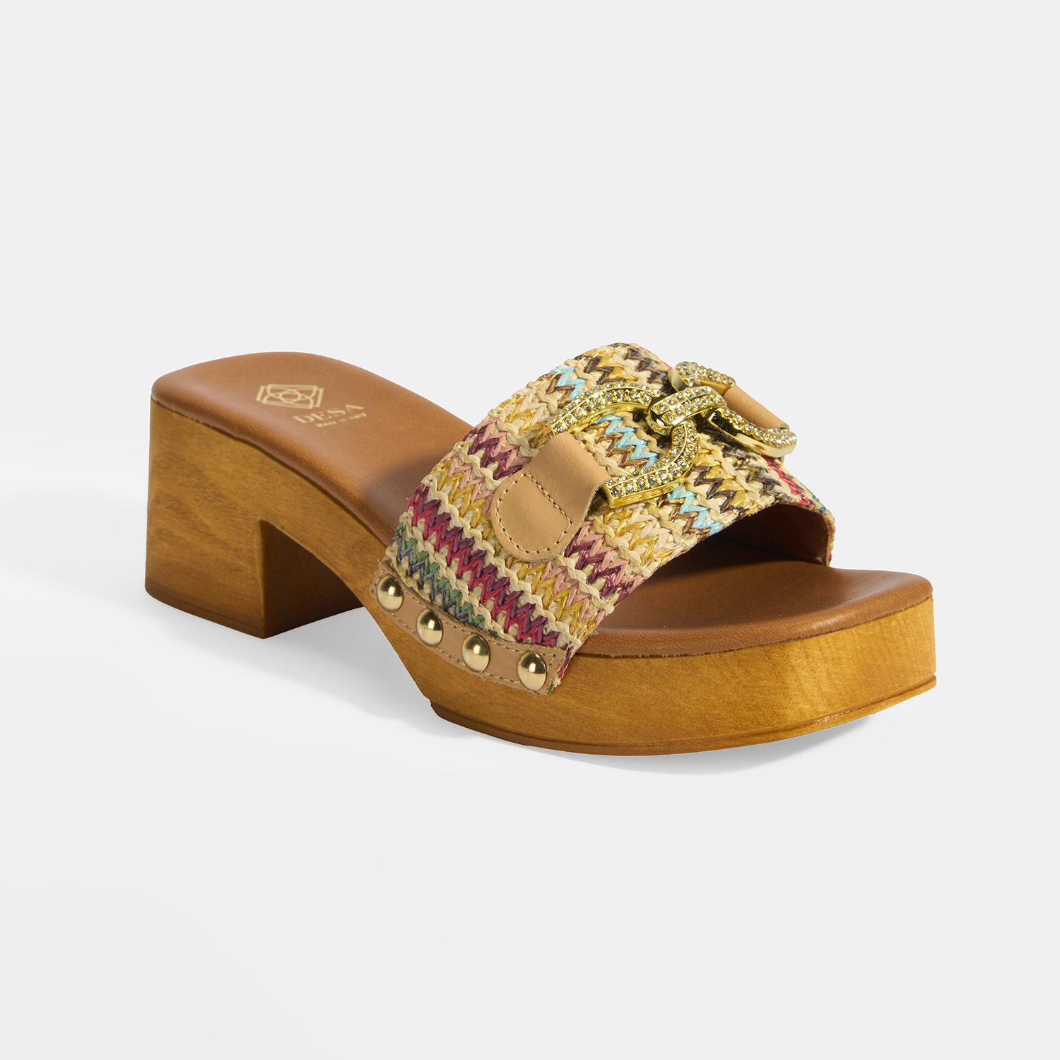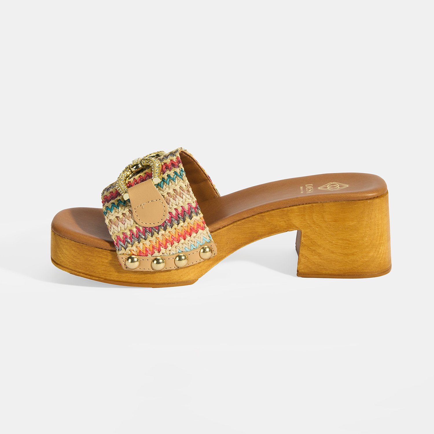 Kadın Çok Renkli Toka Aksesuarlı Topuklu Terlik