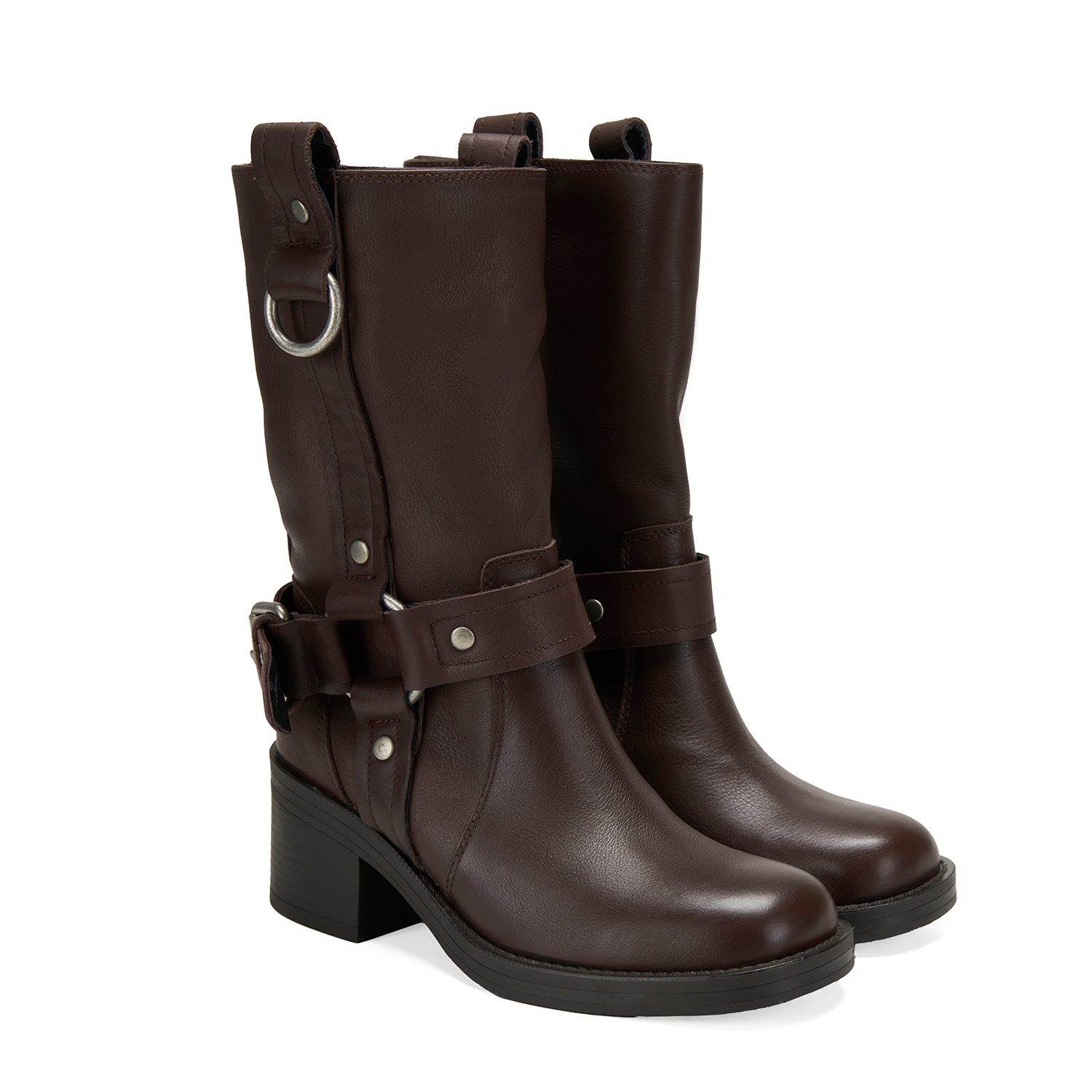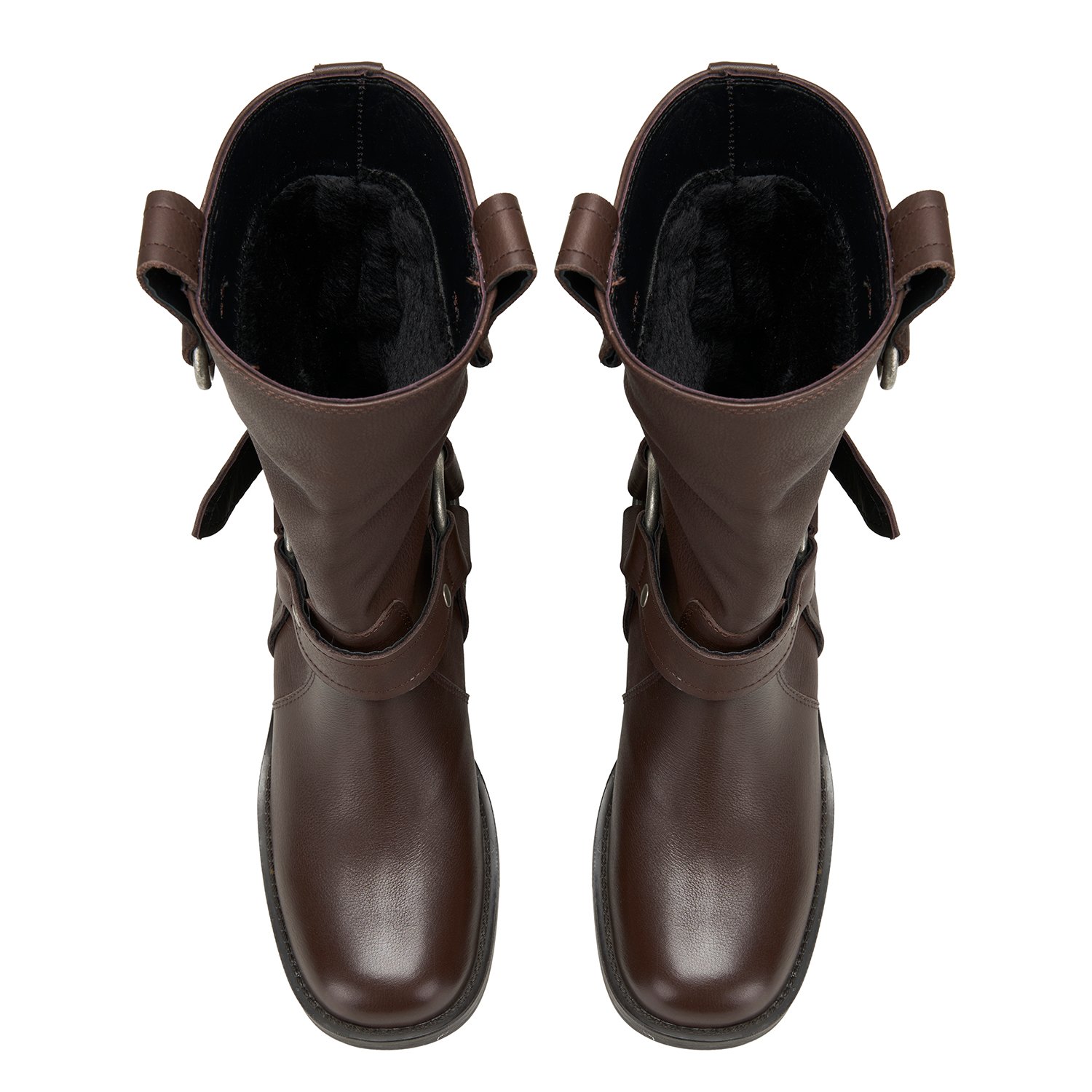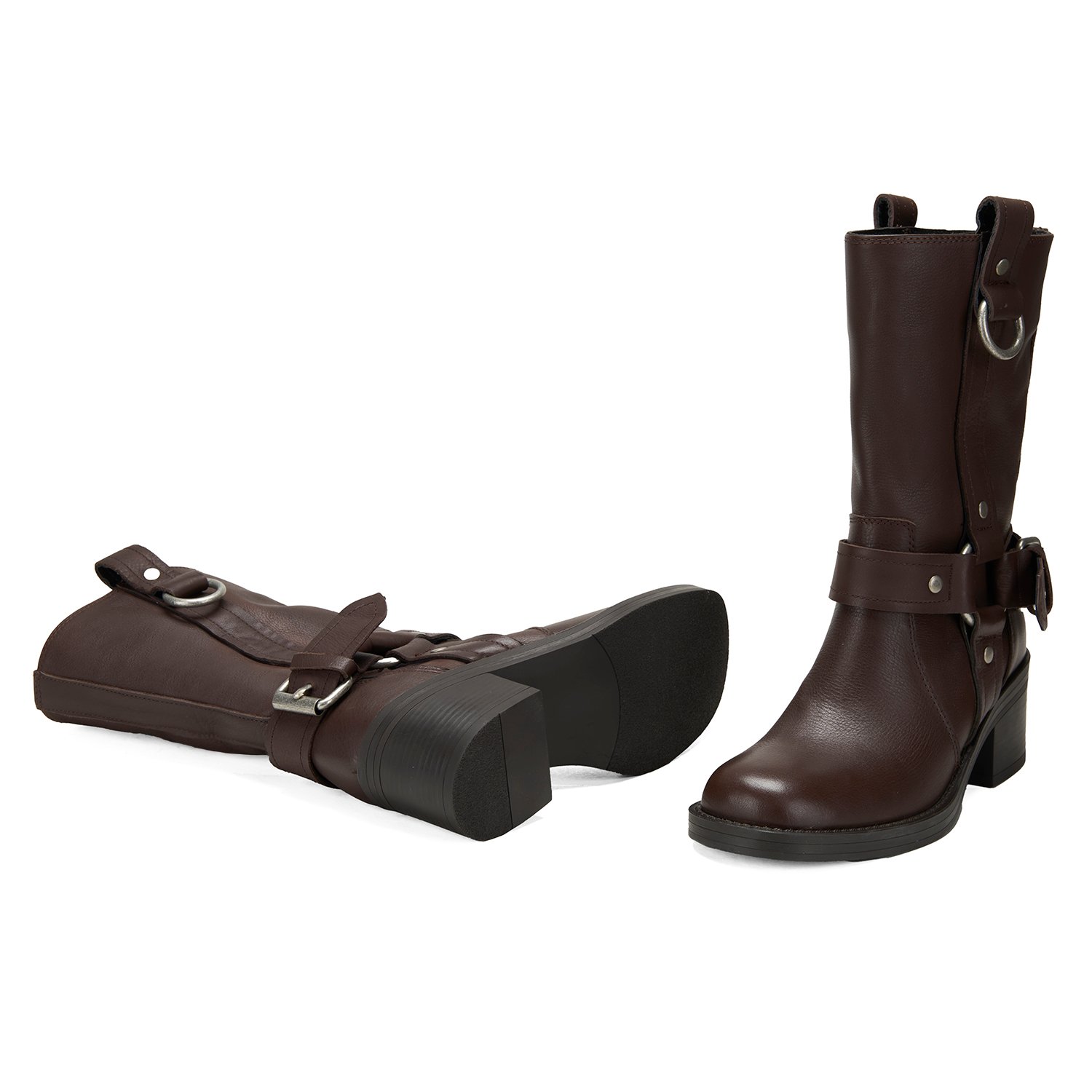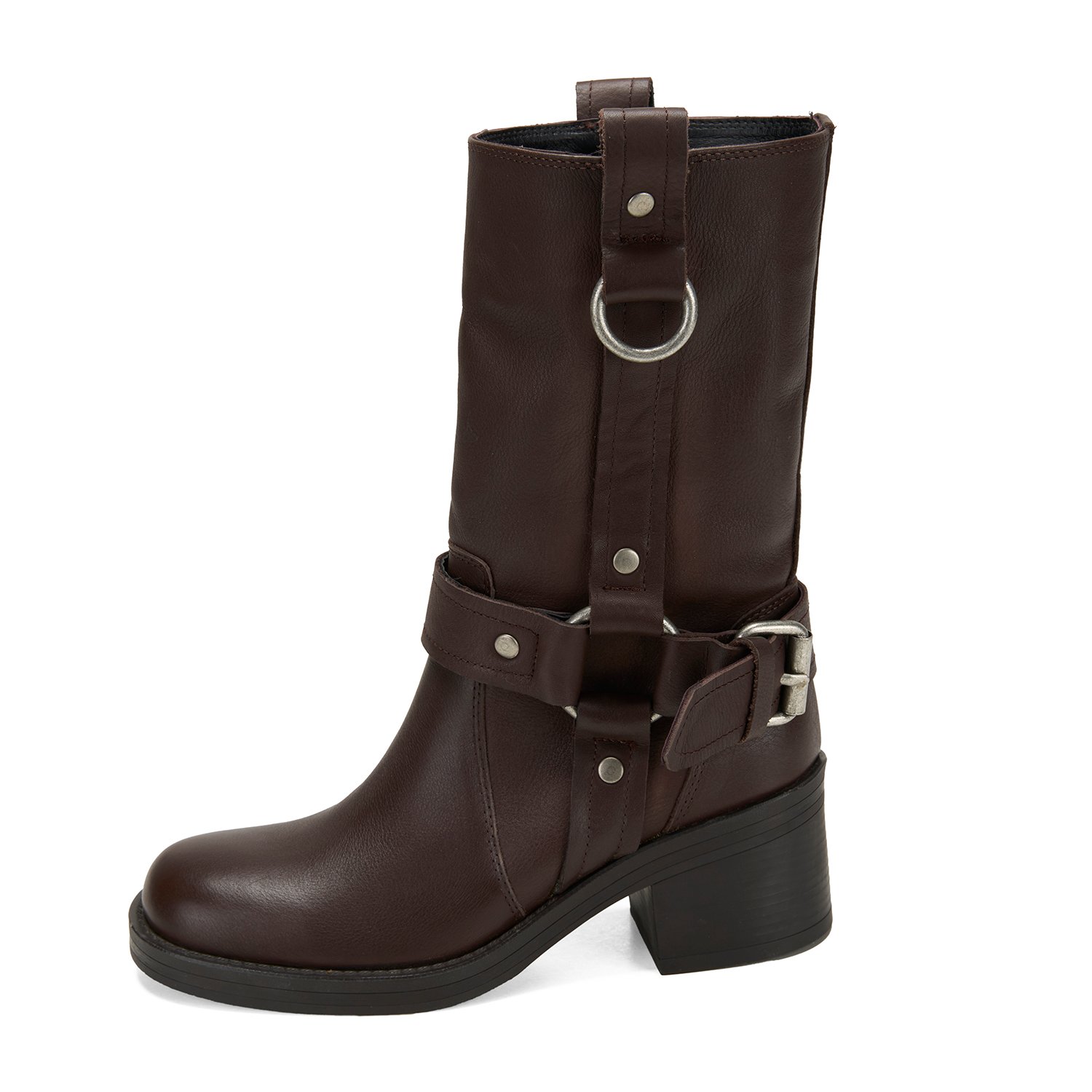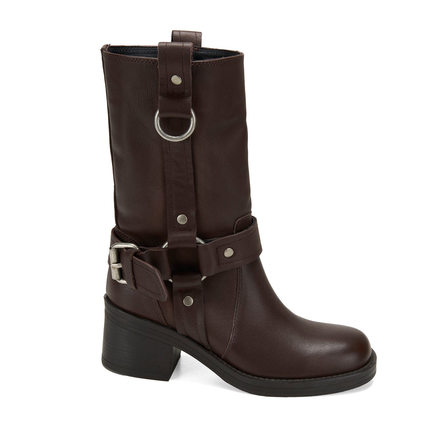 %100 deri, deri iç tabanlı, tekstil astarlı, termo tabanlı, metal aksesuar detaylı, kadın biker bot.