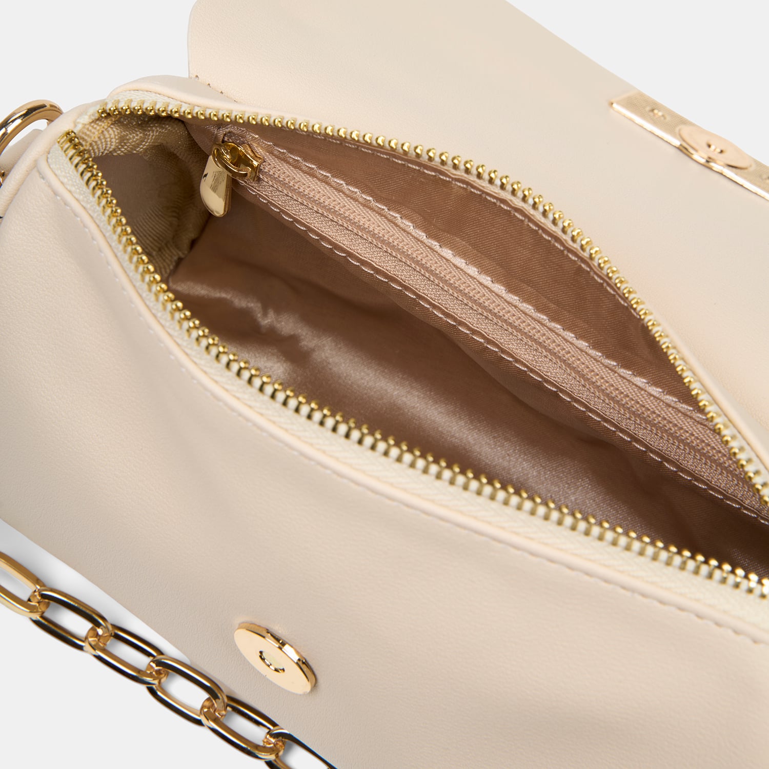 Kadın Ekru Gold Zincir Detaylı El ve Omuz Çantası