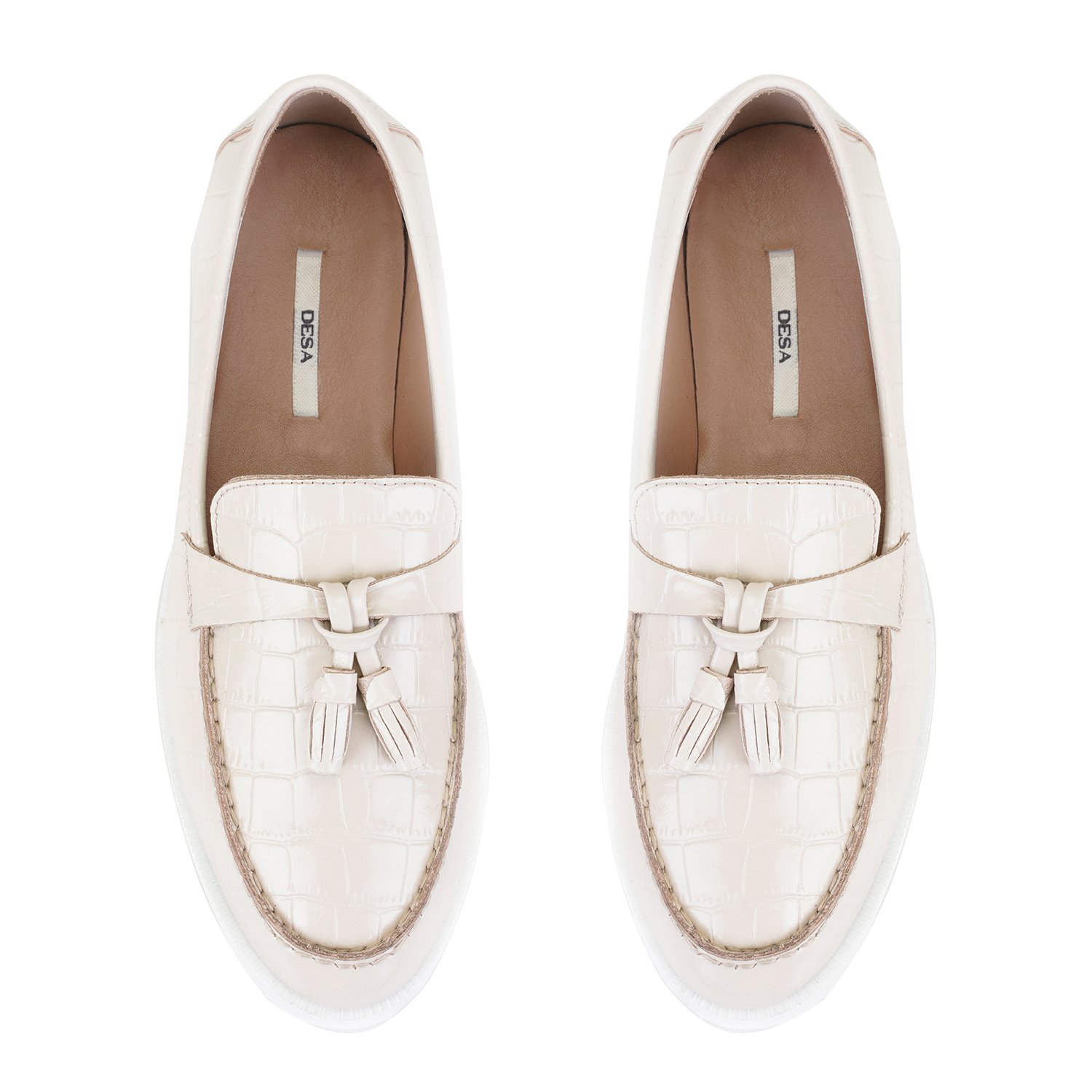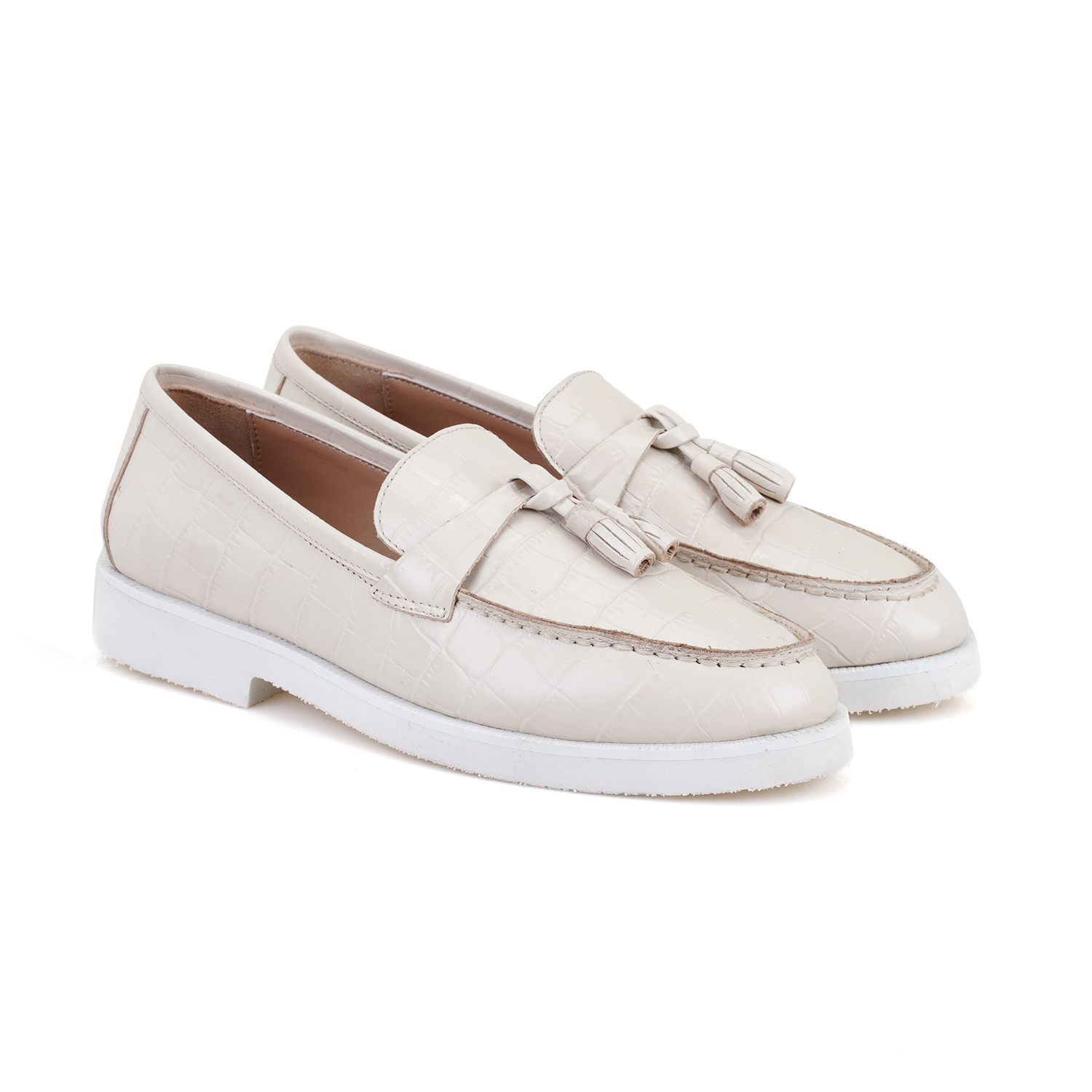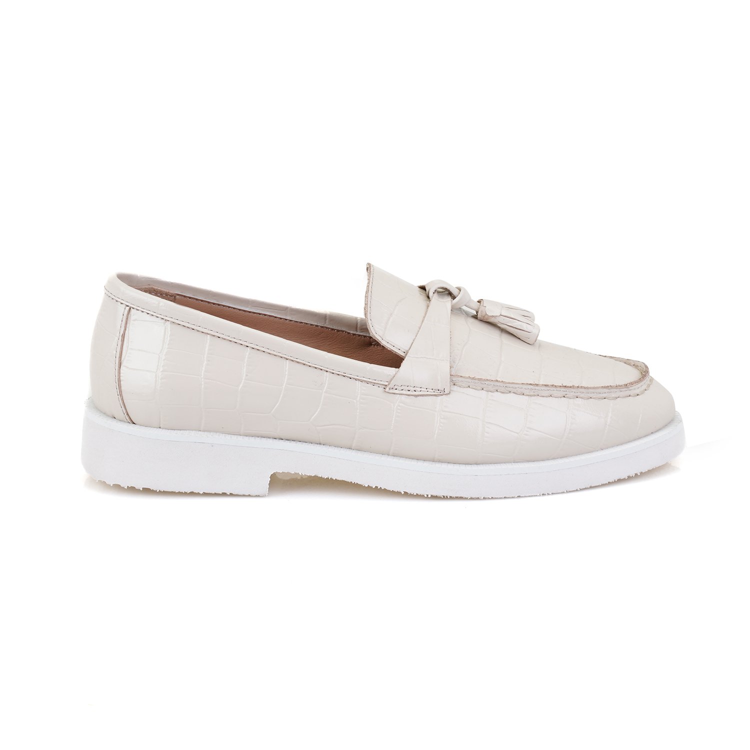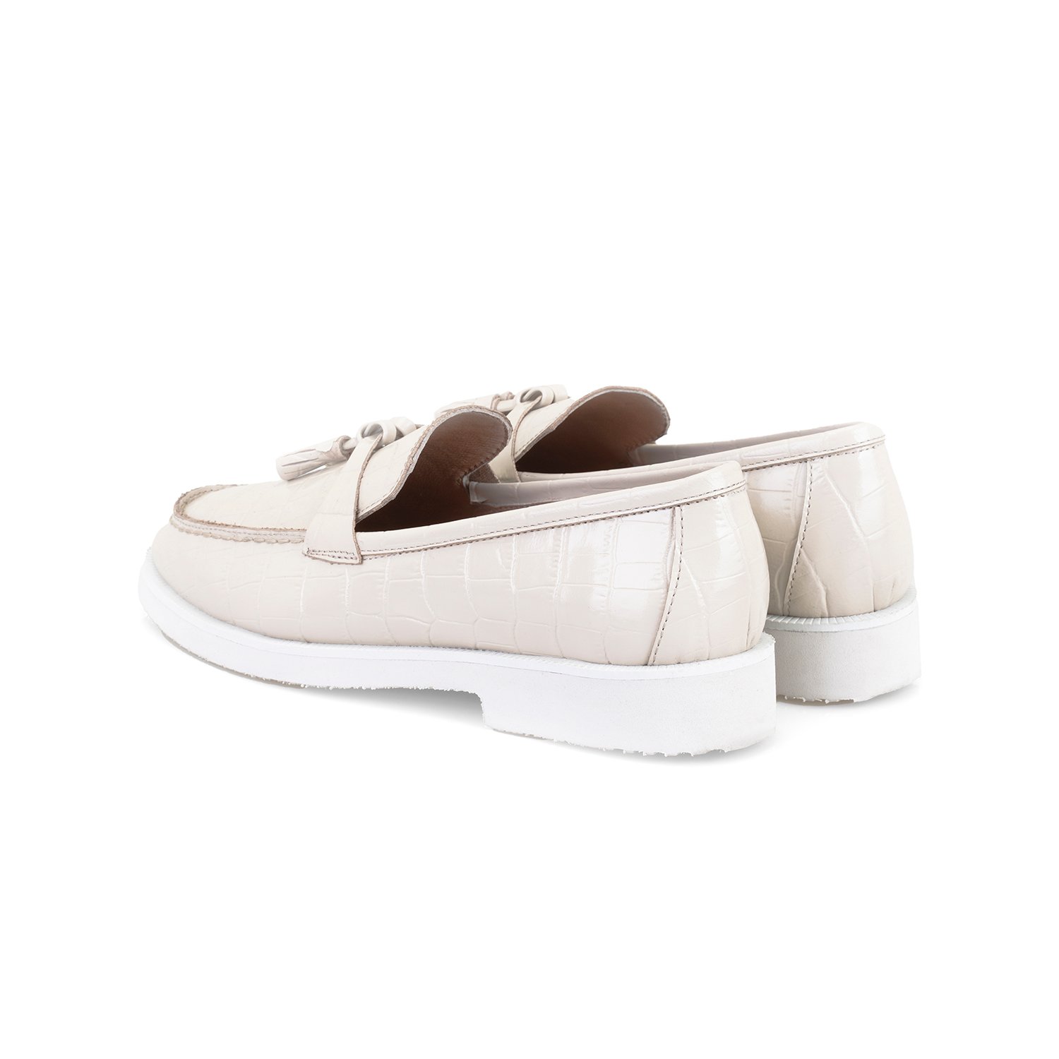 Kadın Ekru Kroko Baskılı Deri Loafer