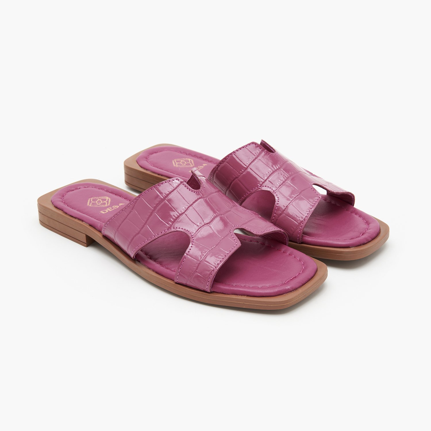 Kroko baskılı deri, esnek ve dayanıklı tpu tabanlı kadın terlik.