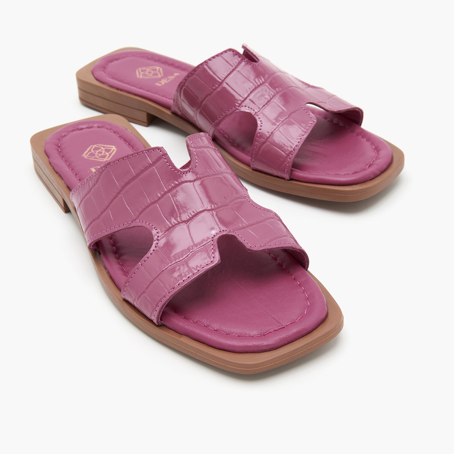 Kadın Fuşya Kroko Baskılı Deri Terlik