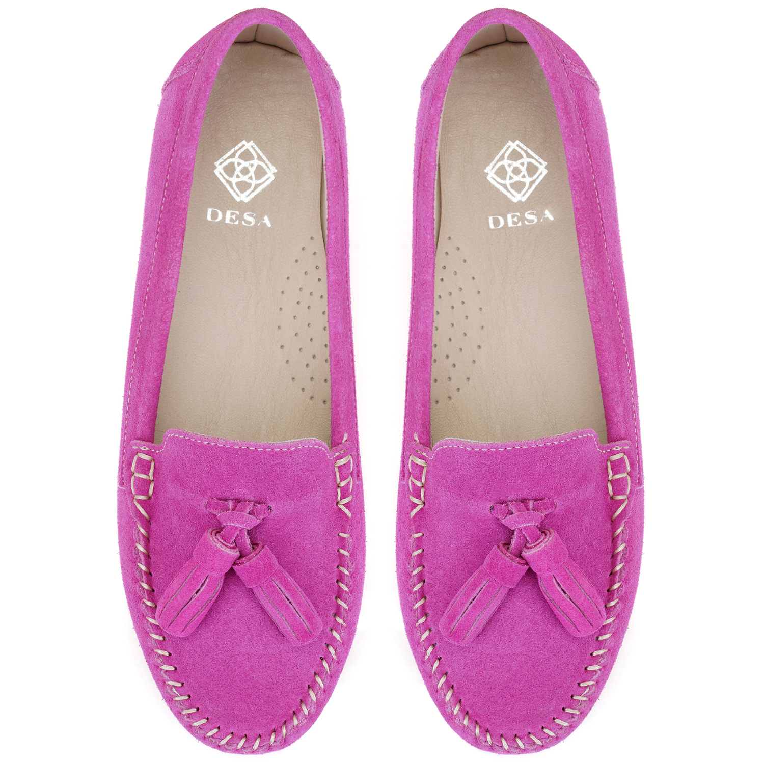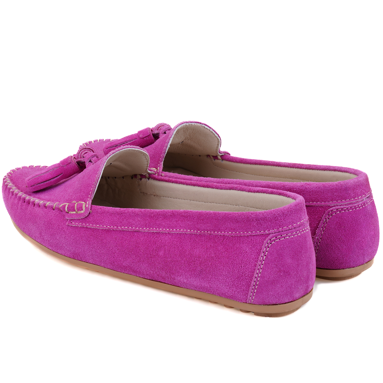 %100 süet deri, deri iç tabanlı, deri iç astarlı, püskül detaylı, kauçuk tabanlı, kadın loafer.