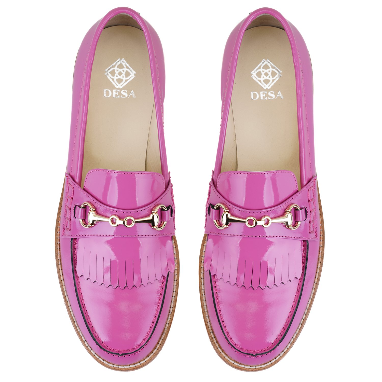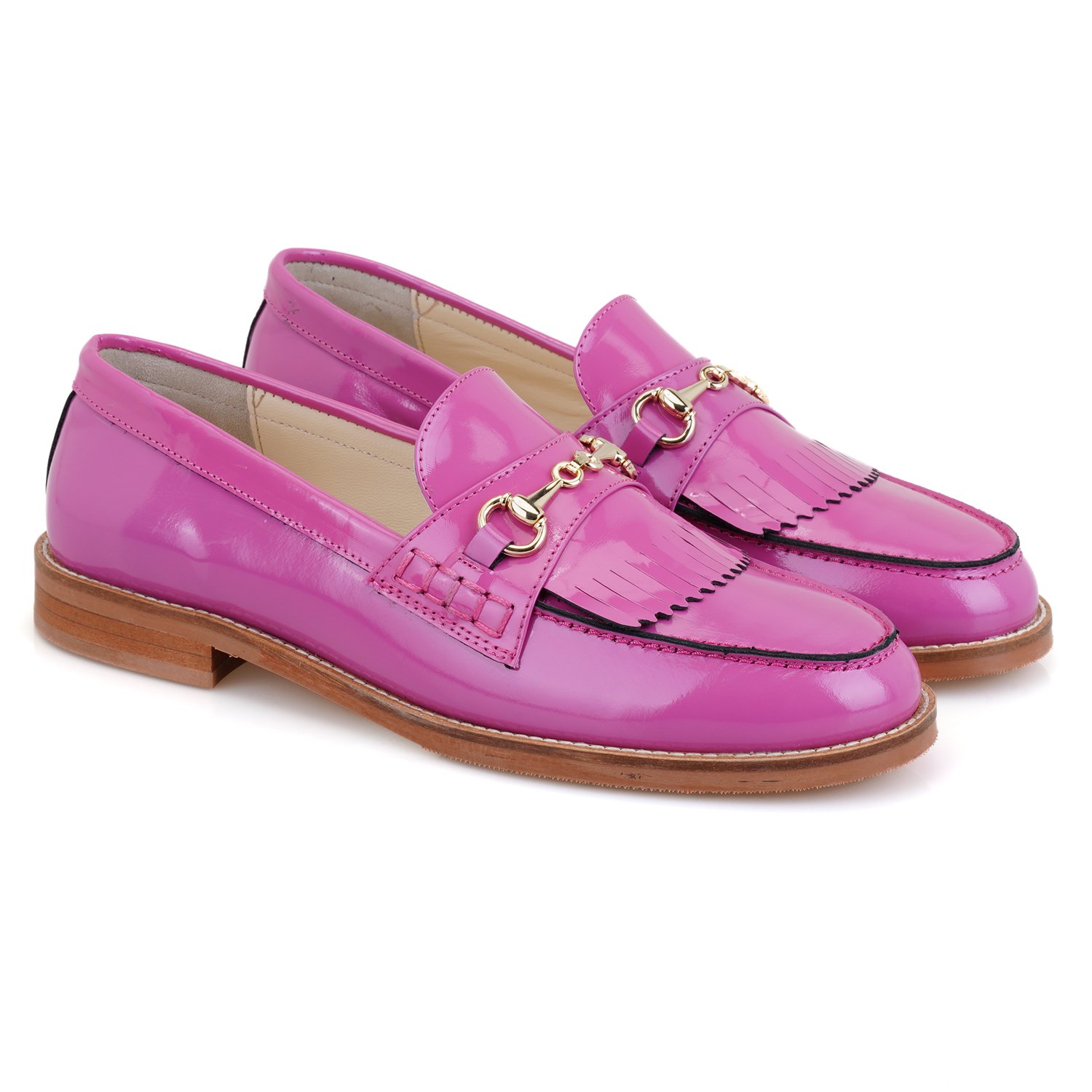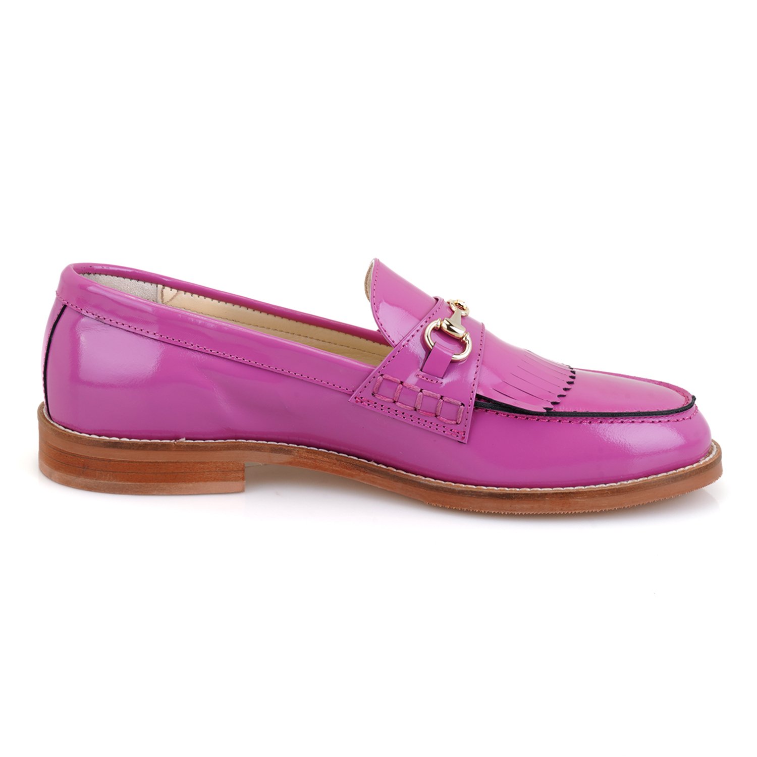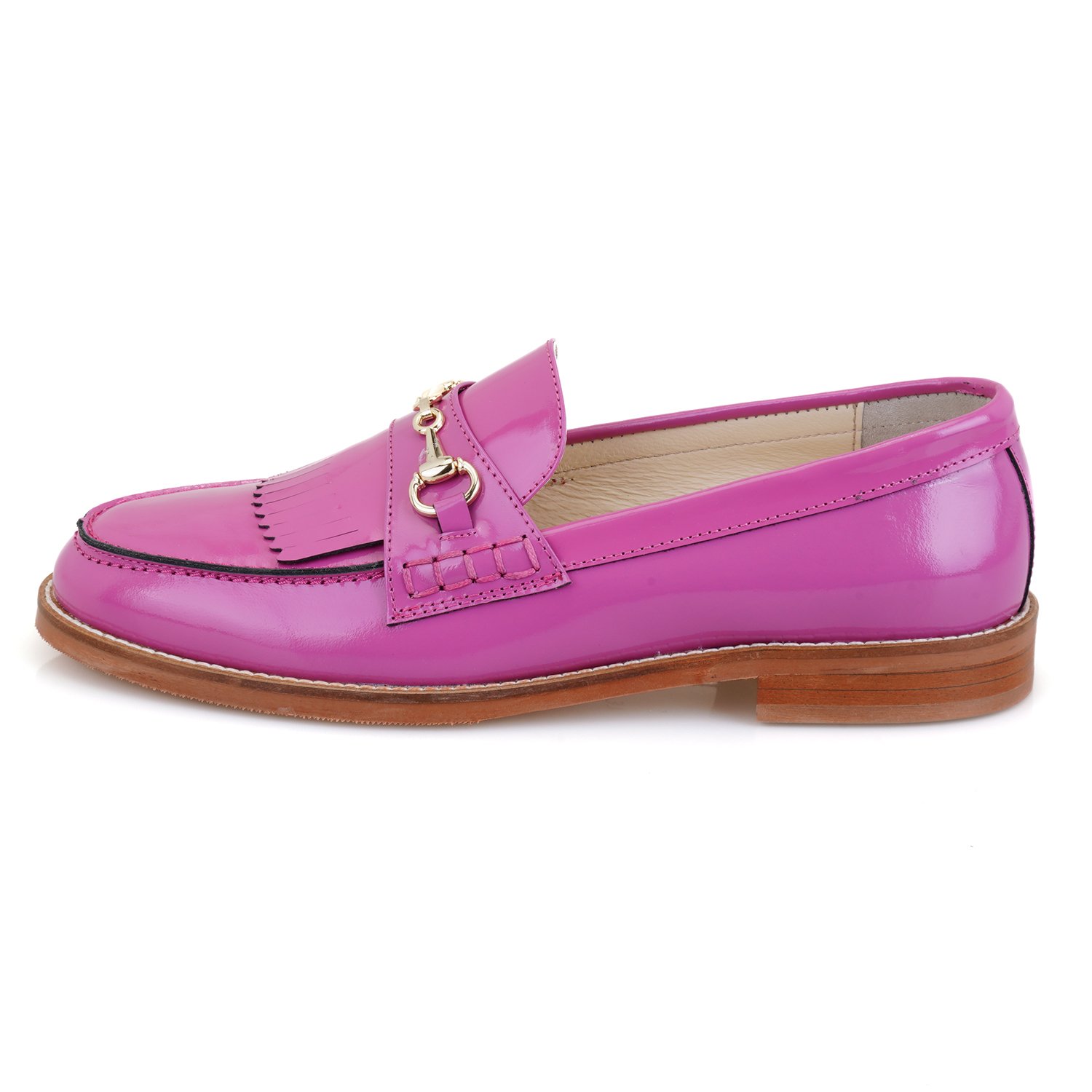 Kadın Fuşya Toka Aksesuarlı Deri Loafer
