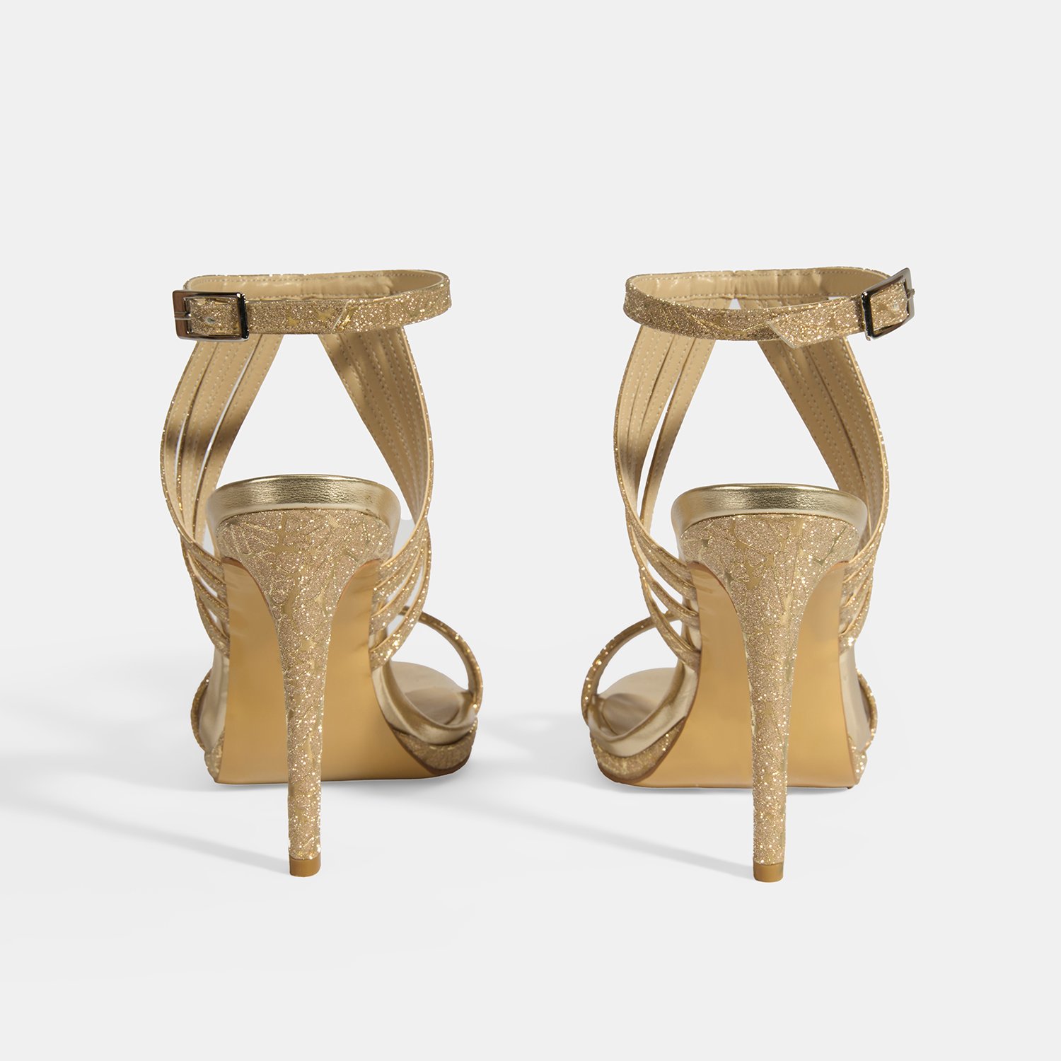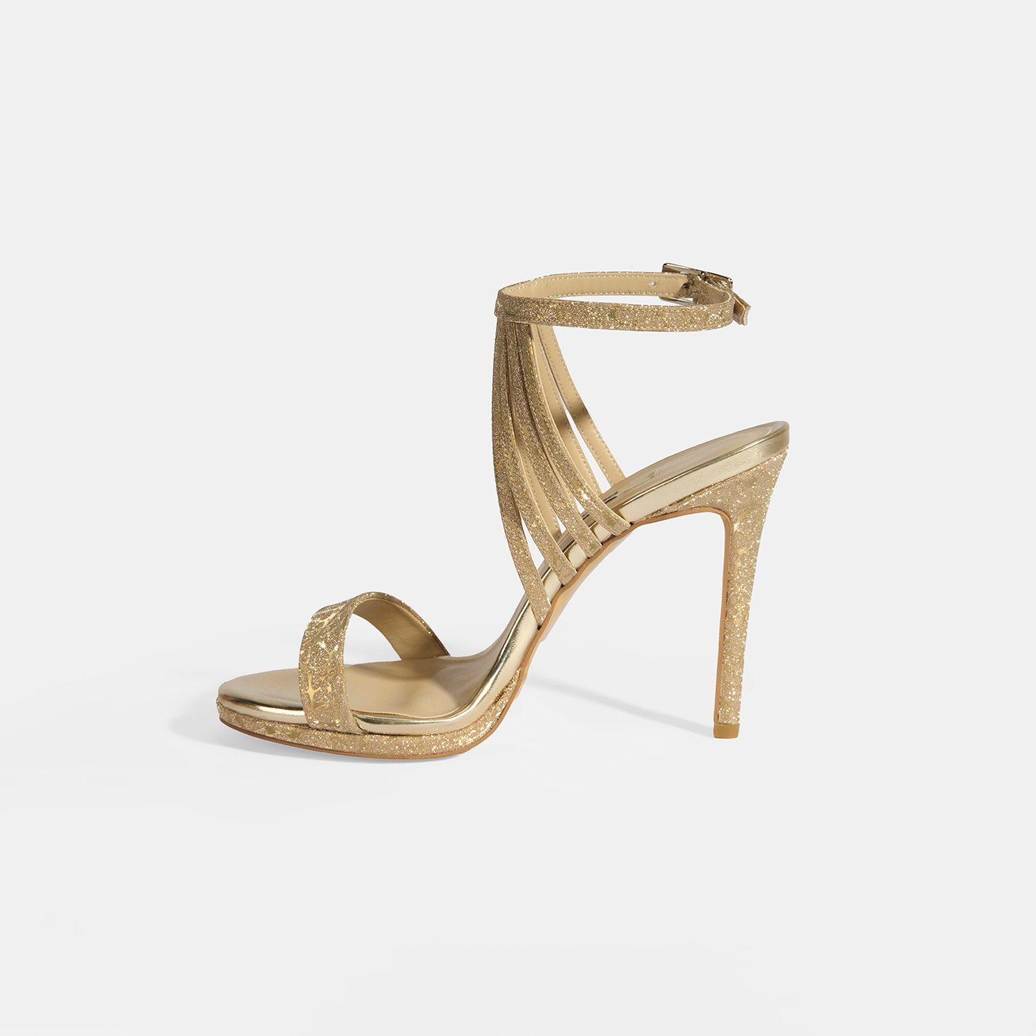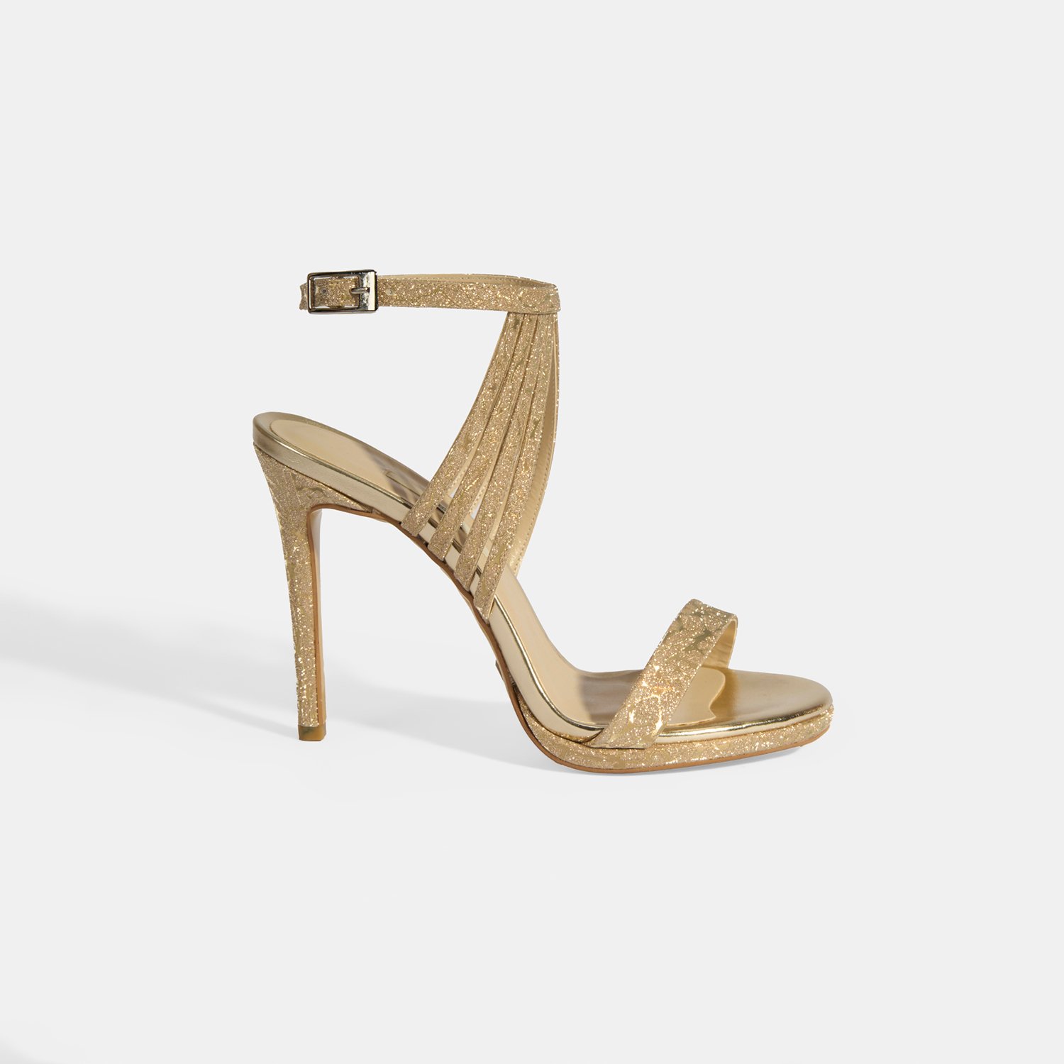 Kadın Gold Simli Bantlı Topuklu Abiye Sandalet