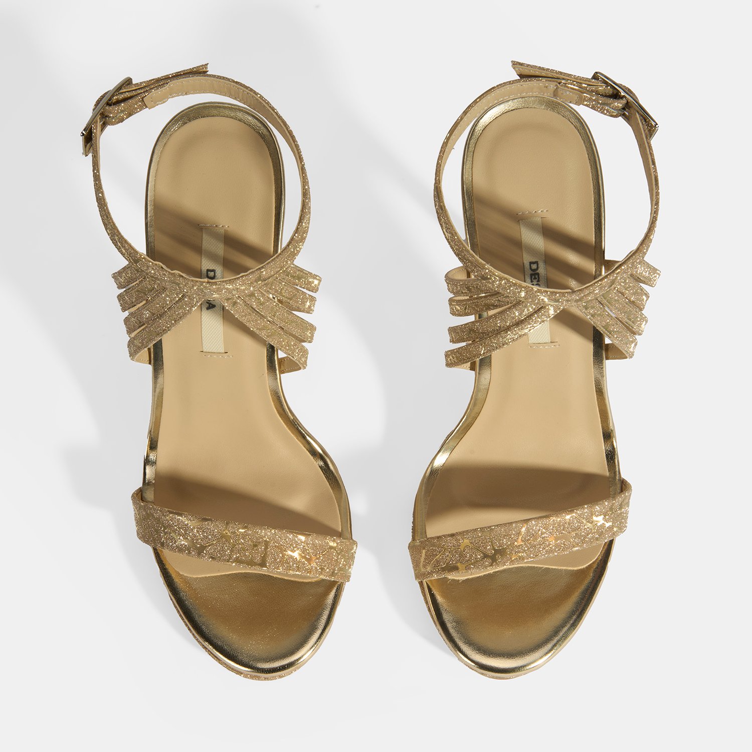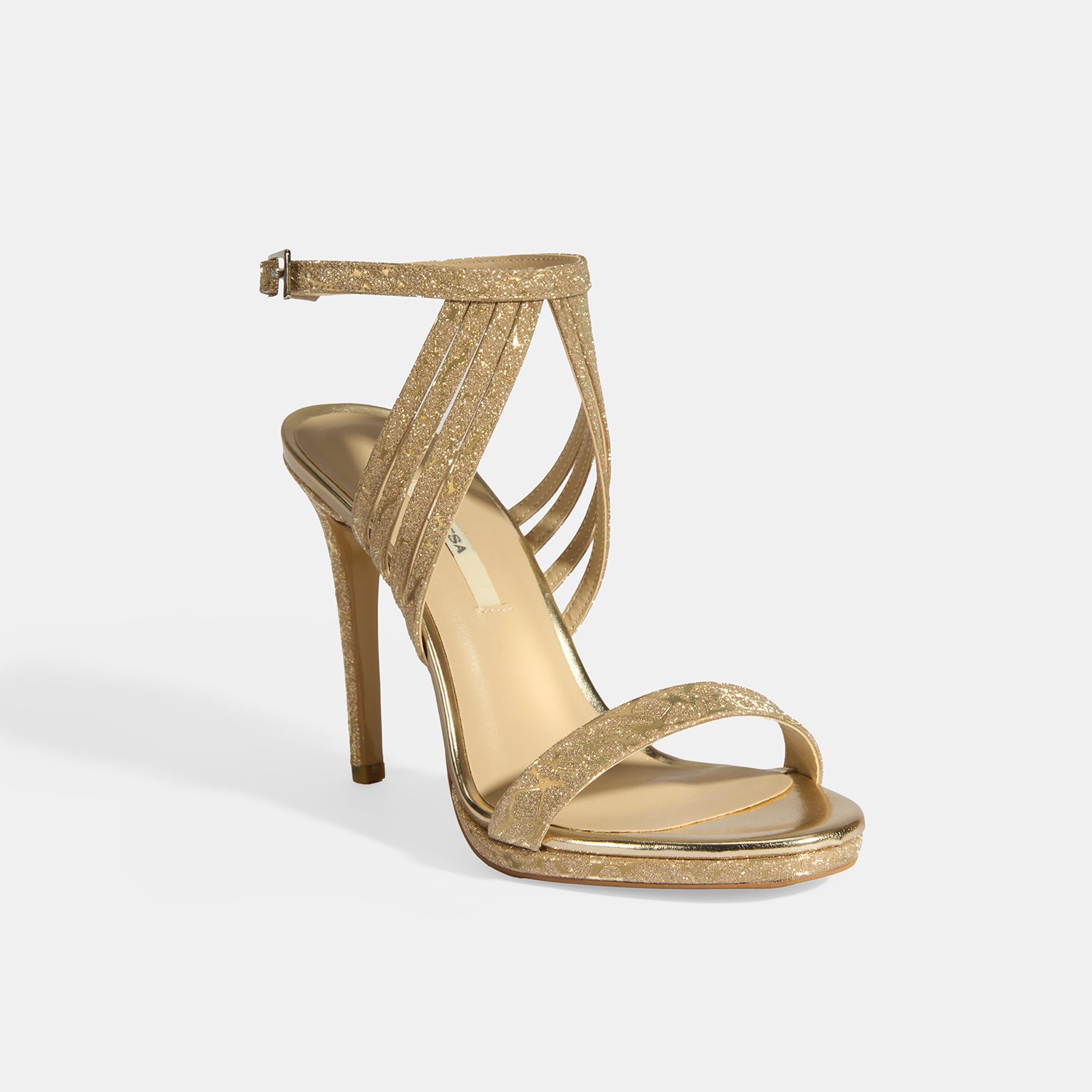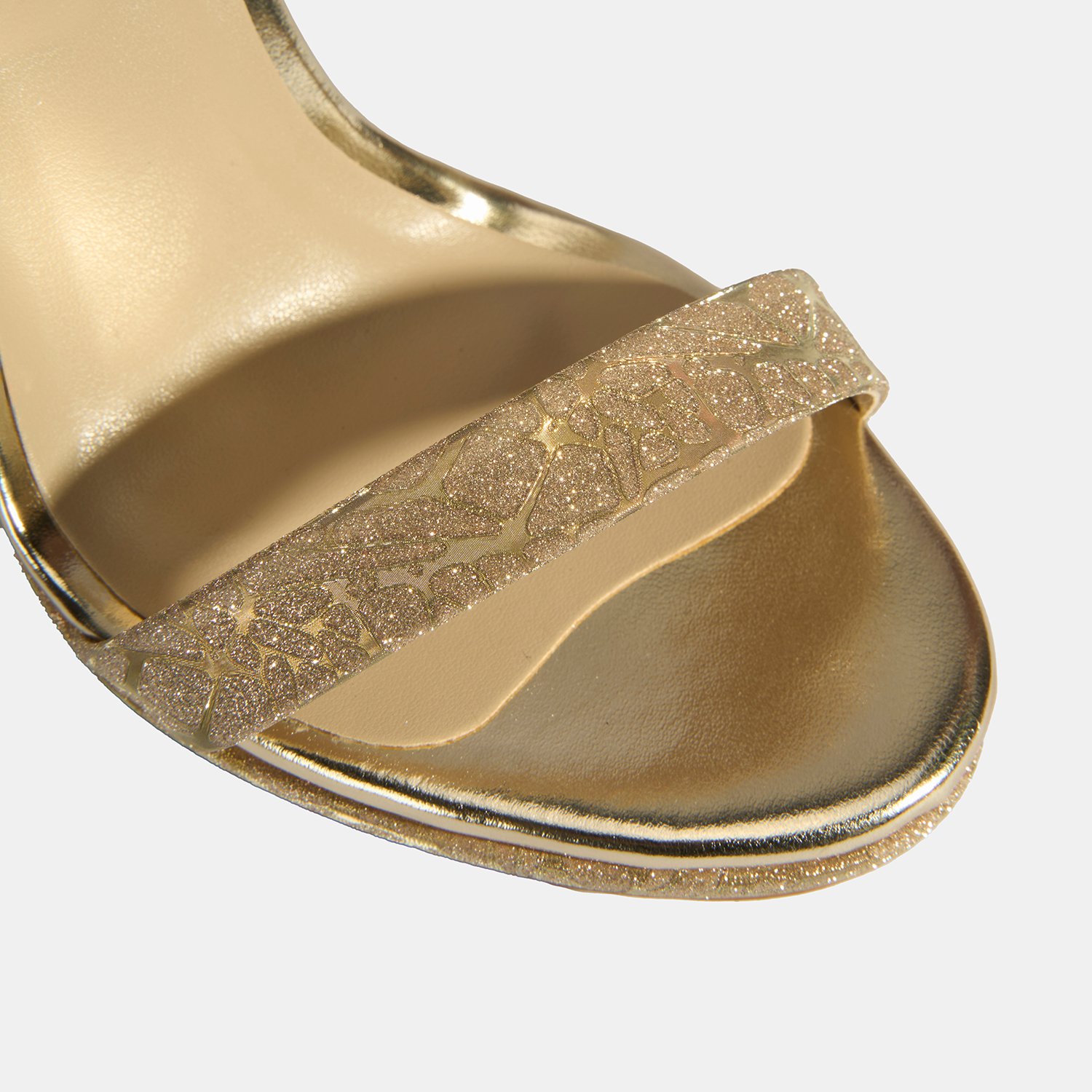 Kadın Gold Simli Bantlı Topuklu Abiye Sandalet
