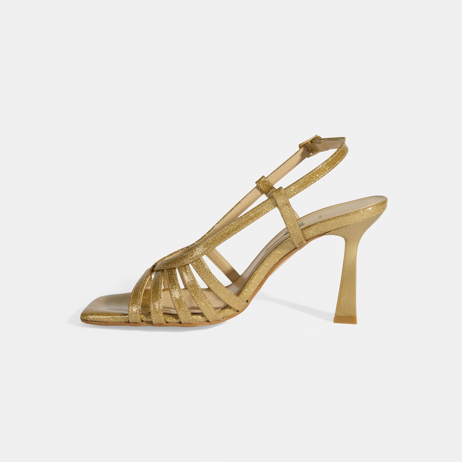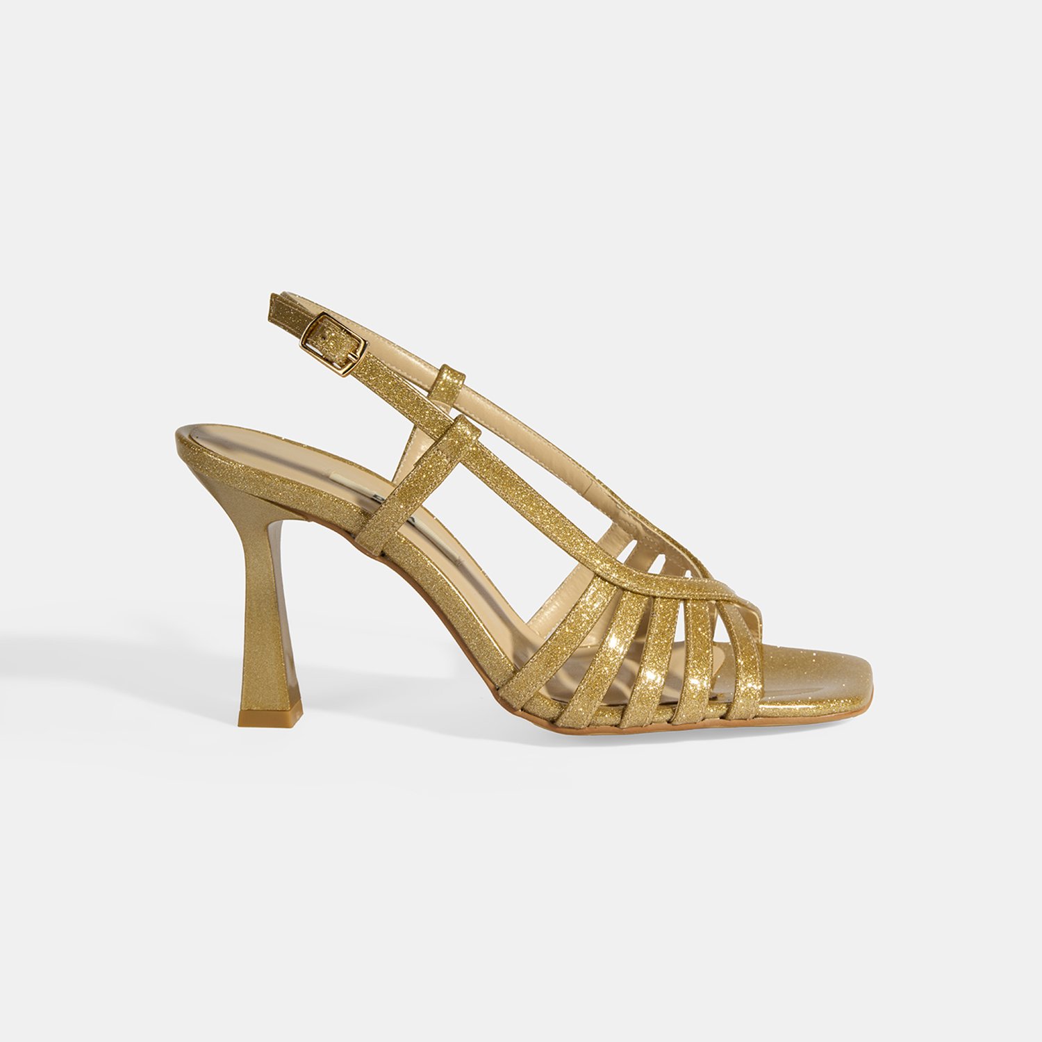 Pu iç tabanlı, pu aastarlı, ayarlanabilir metal tokalı, neolit tabanlı, kadın topuklu sandalet.