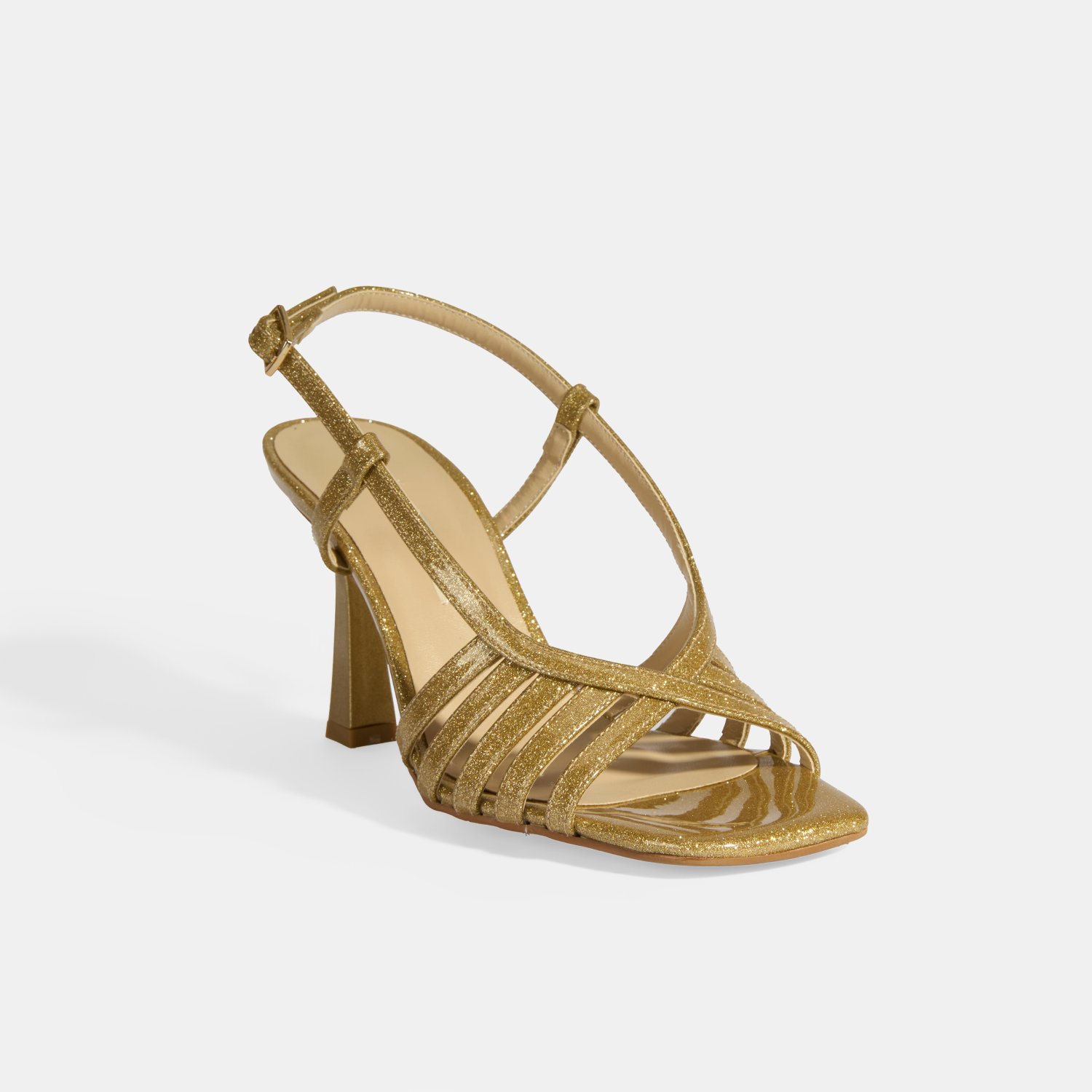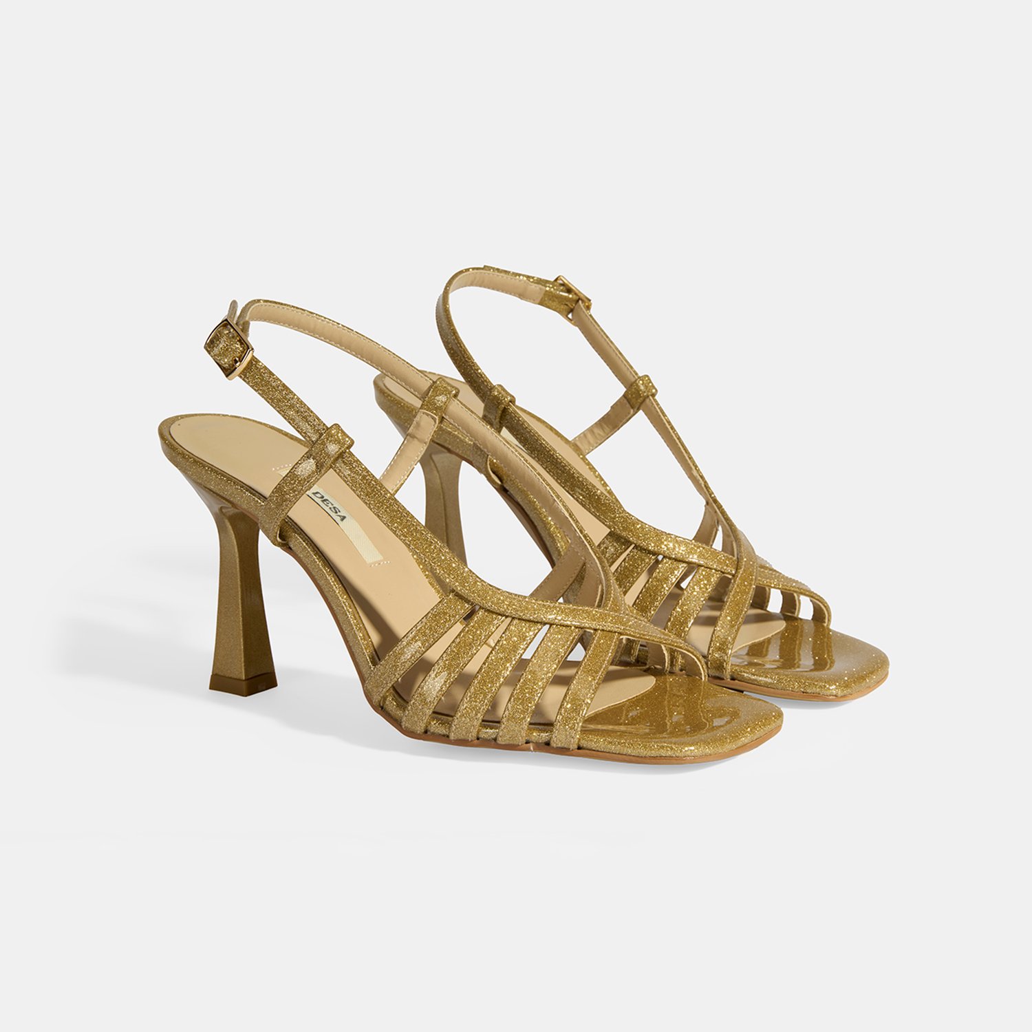 Kadın Gold Simli Topuklu Abiye Sandalet