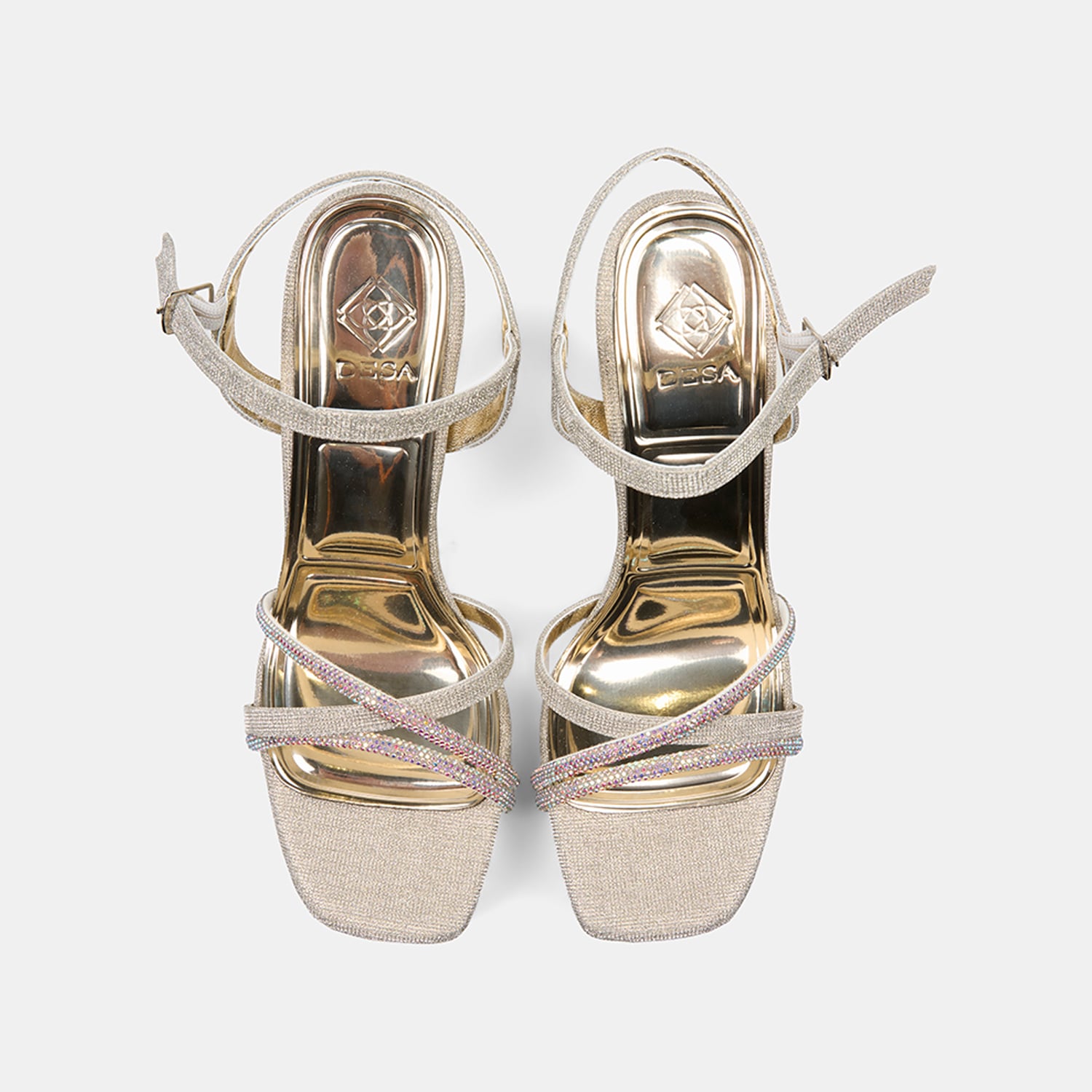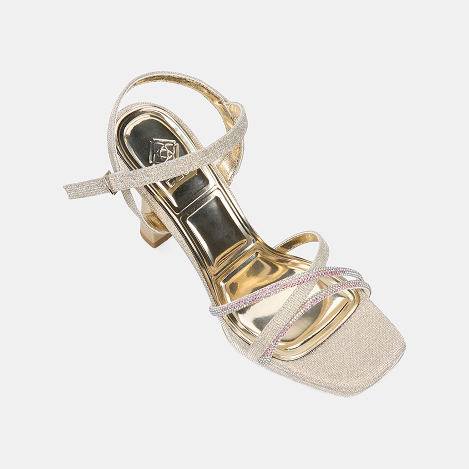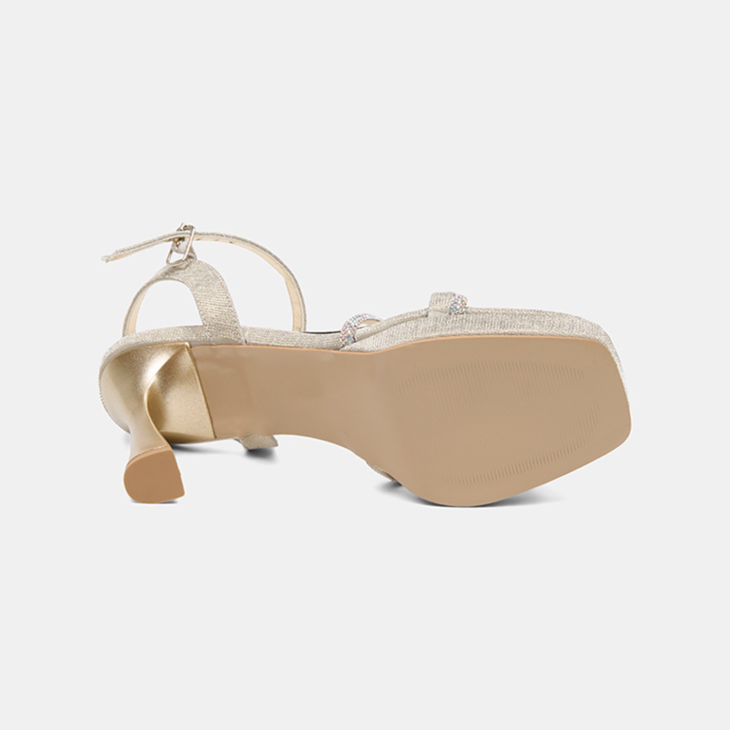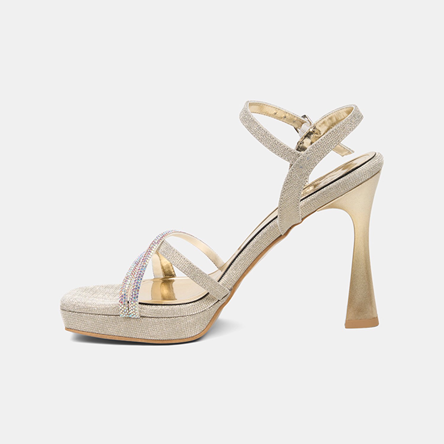 Kadın Gold Taşlı Ayarlanabilir Tokalı Topuklu Abiye Sandalet