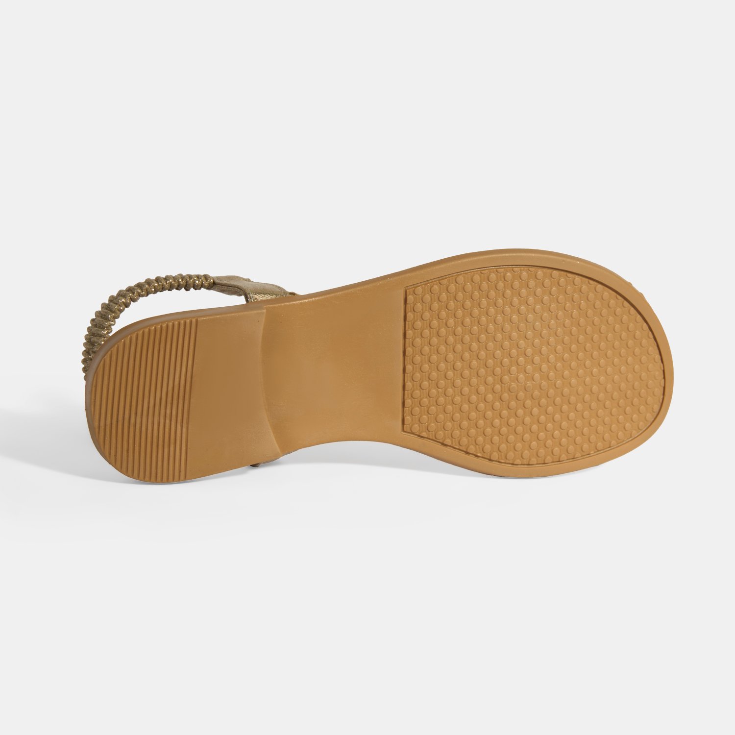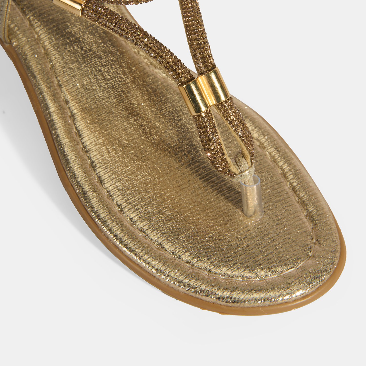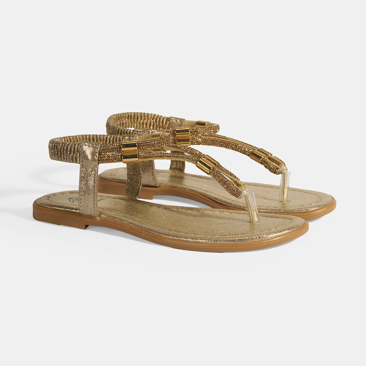 Kadın Gold Taşlı Lastik Bantlı Parmak Arası Sandalet