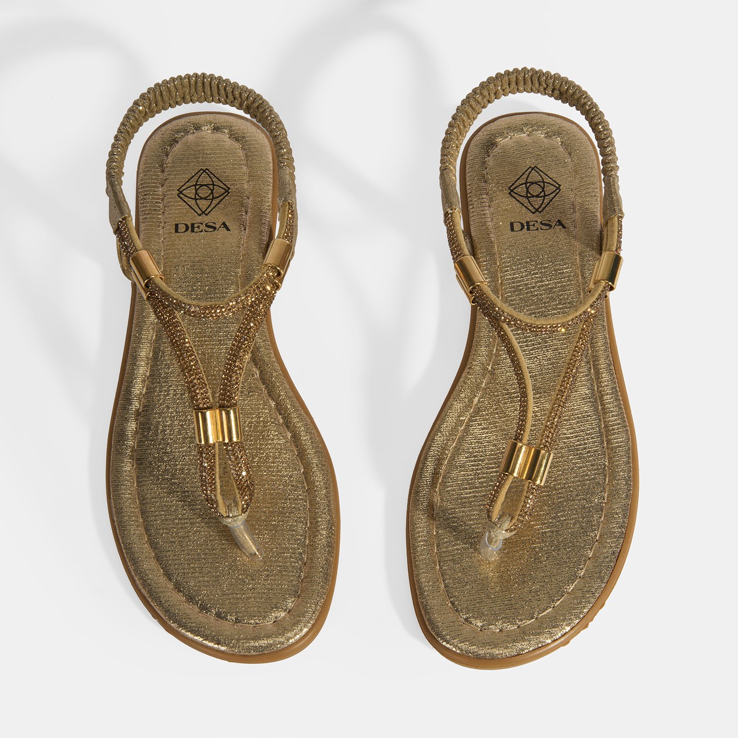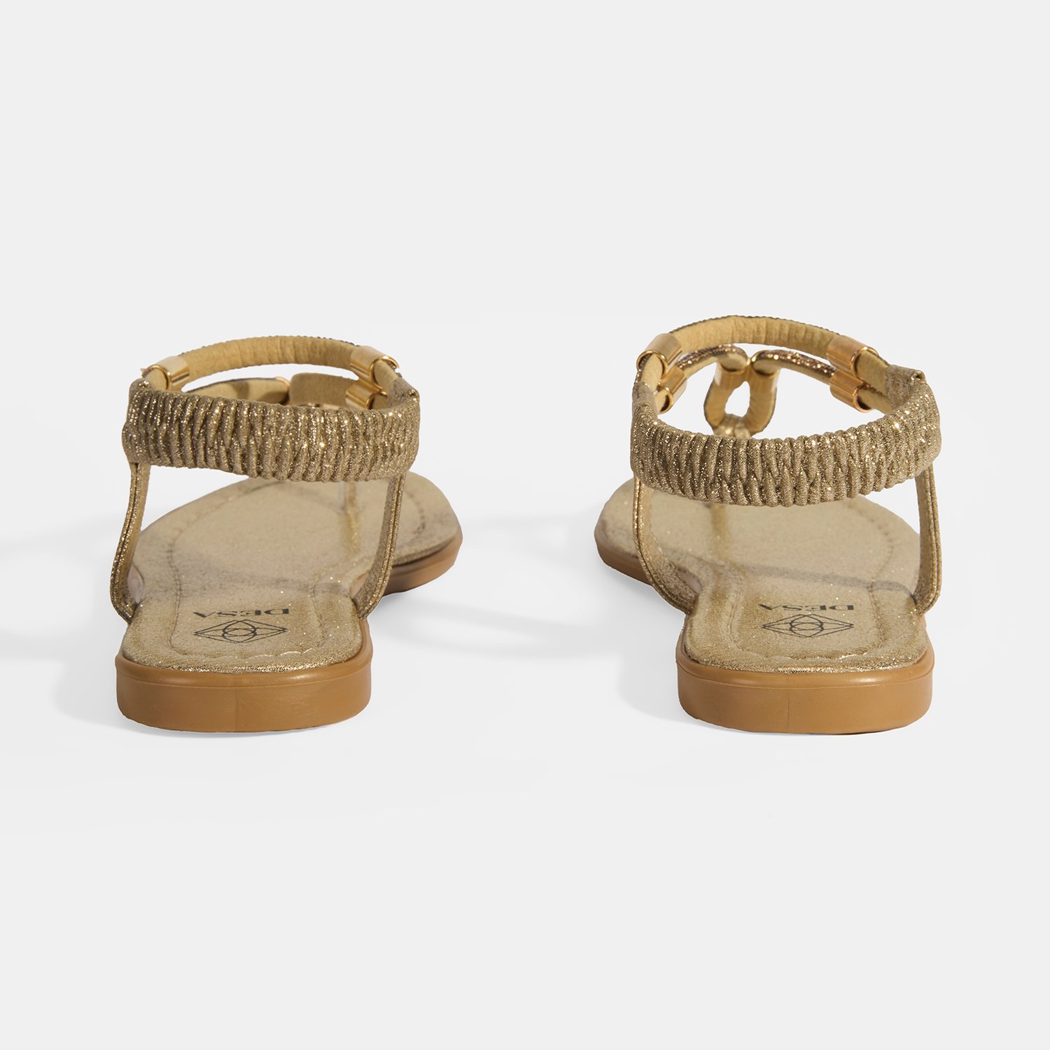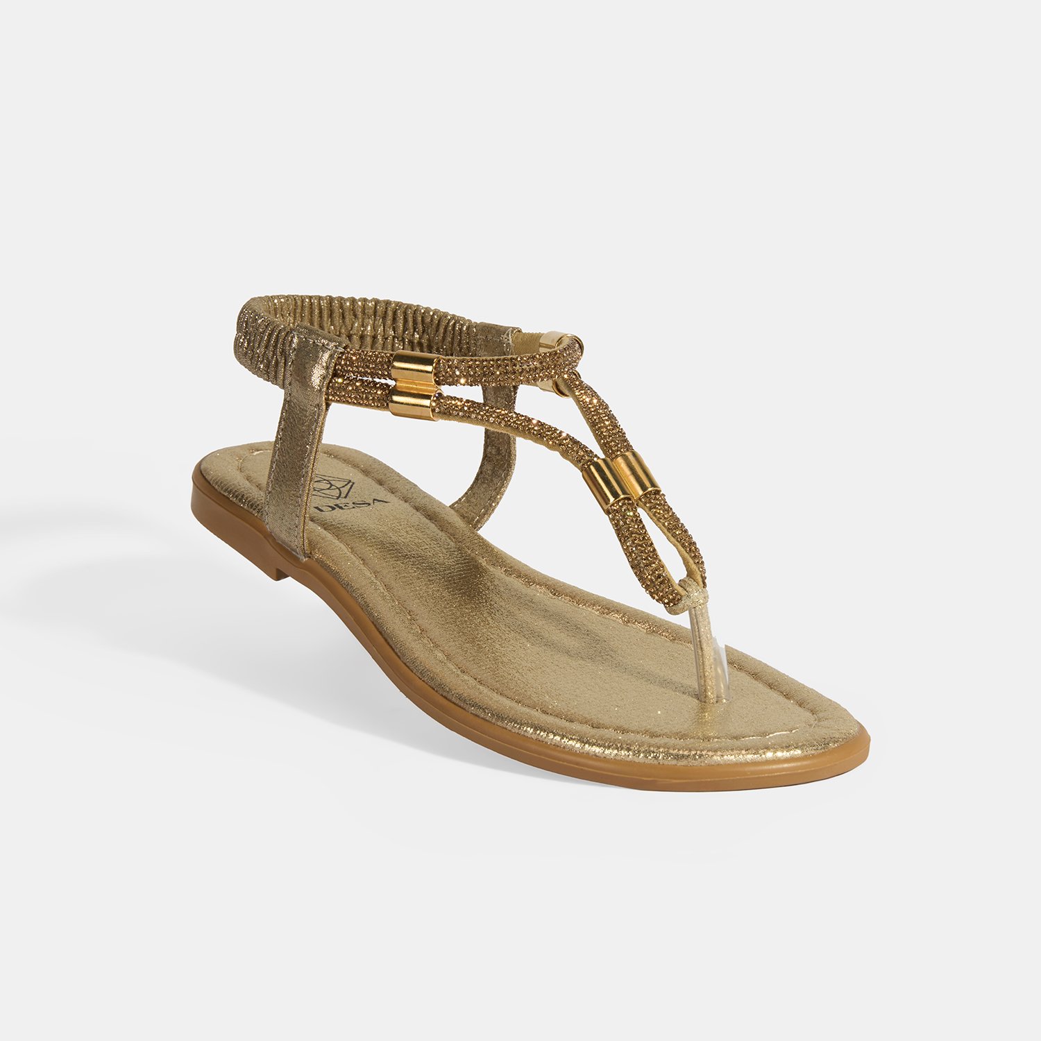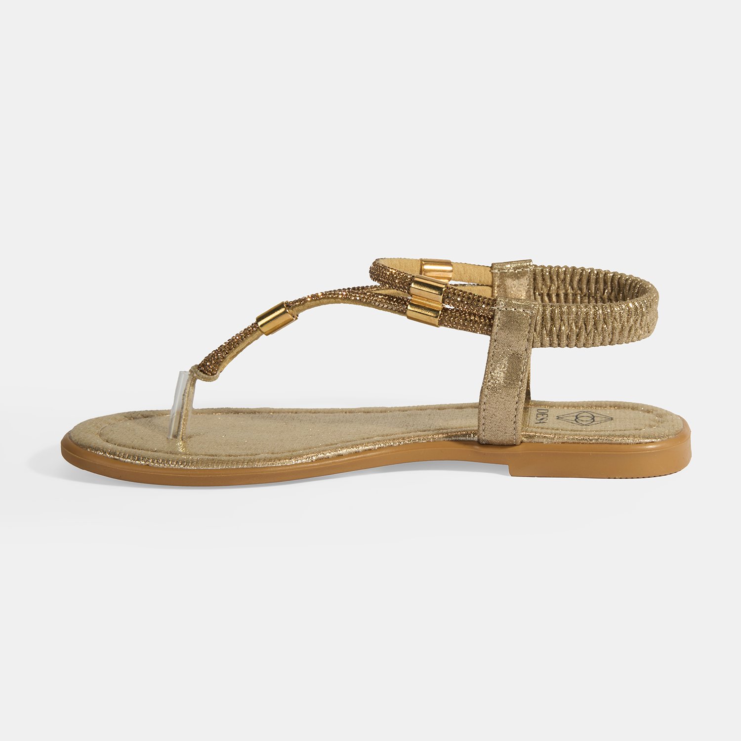 Kadın Gold Taşlı Lastik Bantlı Parmak Arası Sandalet