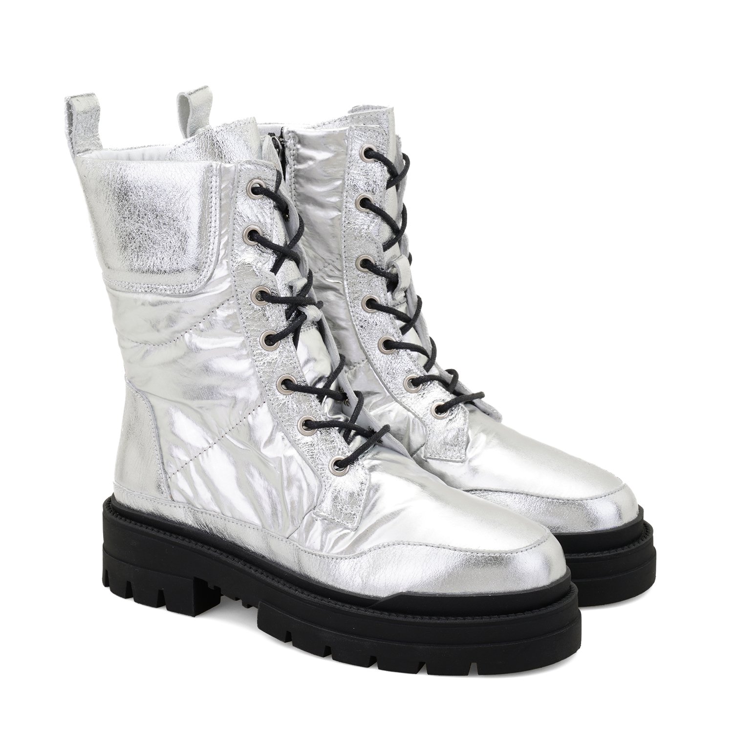 Deri iç tabanlı, tekstil iç astarlı, thermo tabanlı, kapitone detaylı, bağcıklı kadın bot.