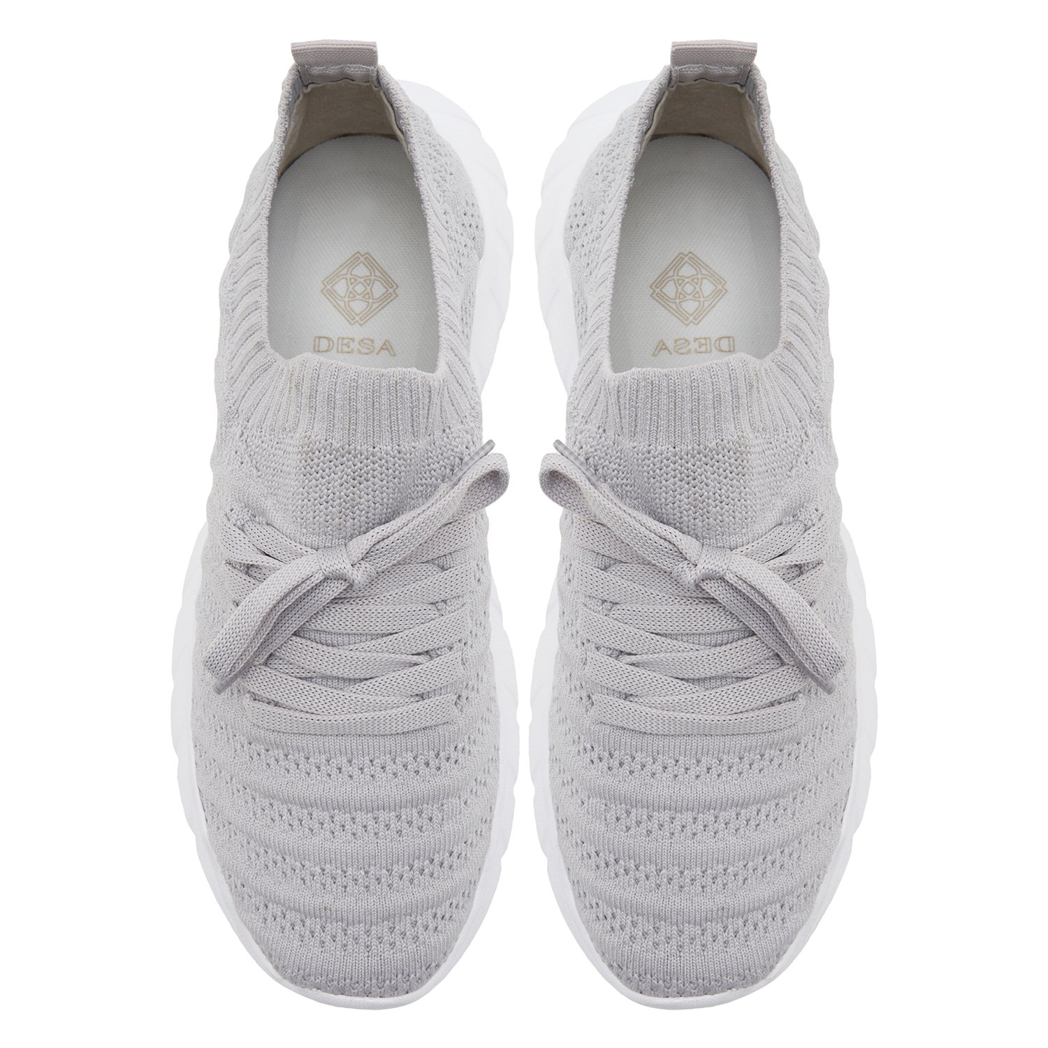 Triko, kumaş iç tabanlı, bağcıklı, hafif ve esnek kadın çorap spor ayakkabı.