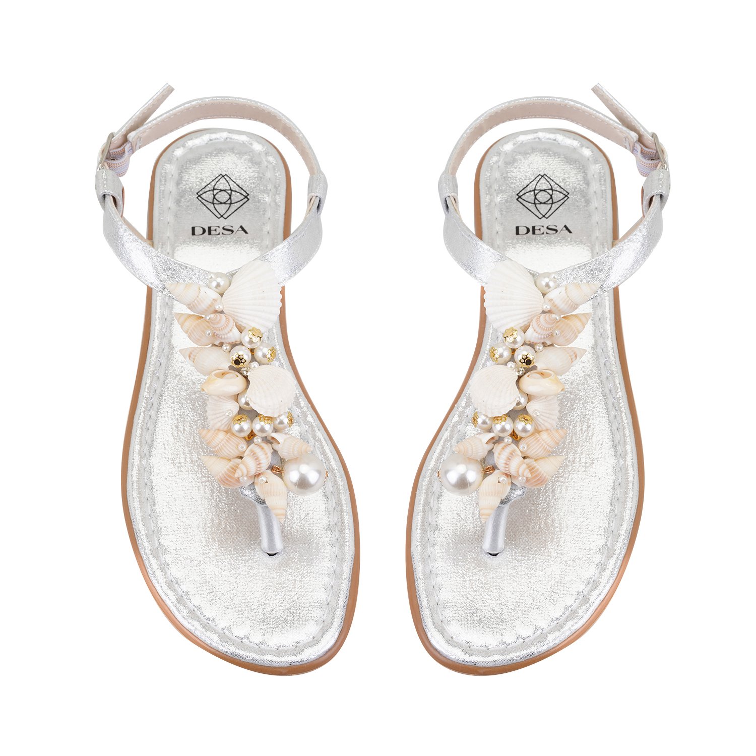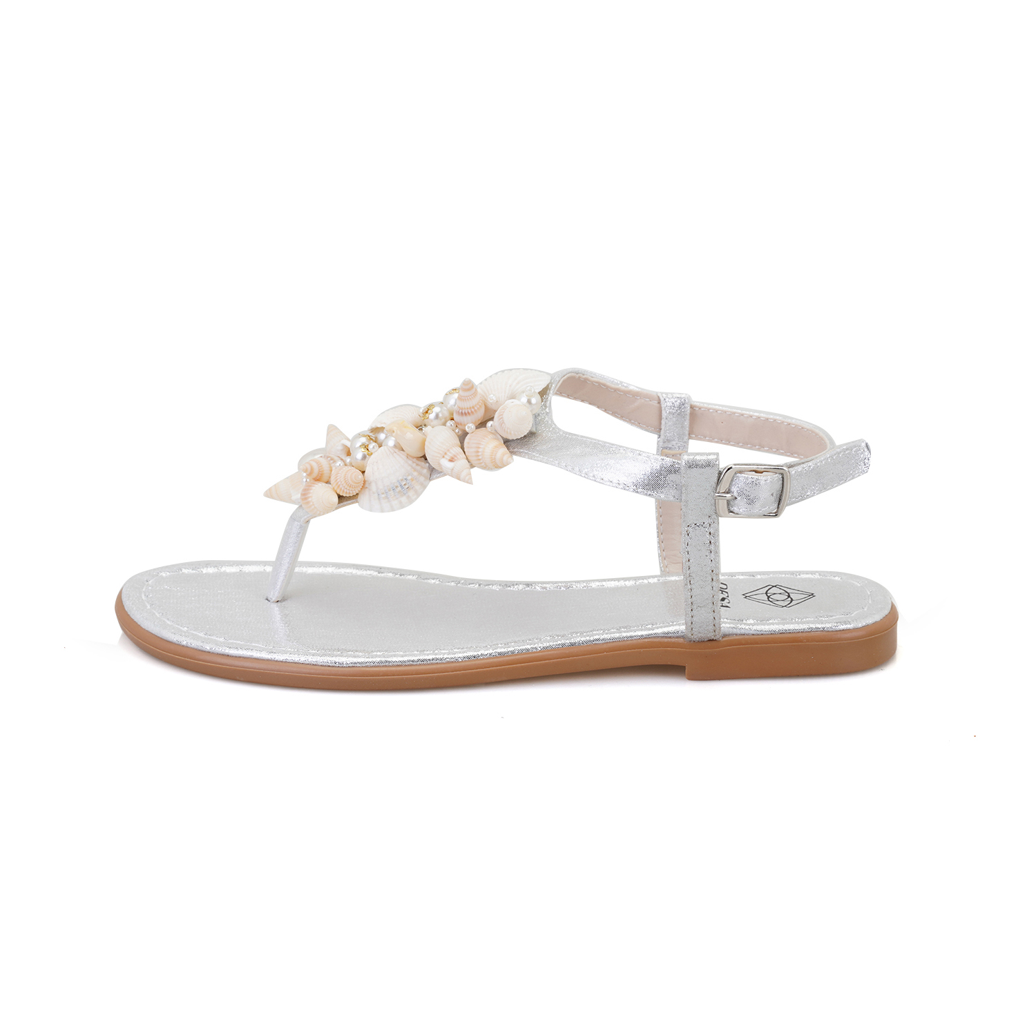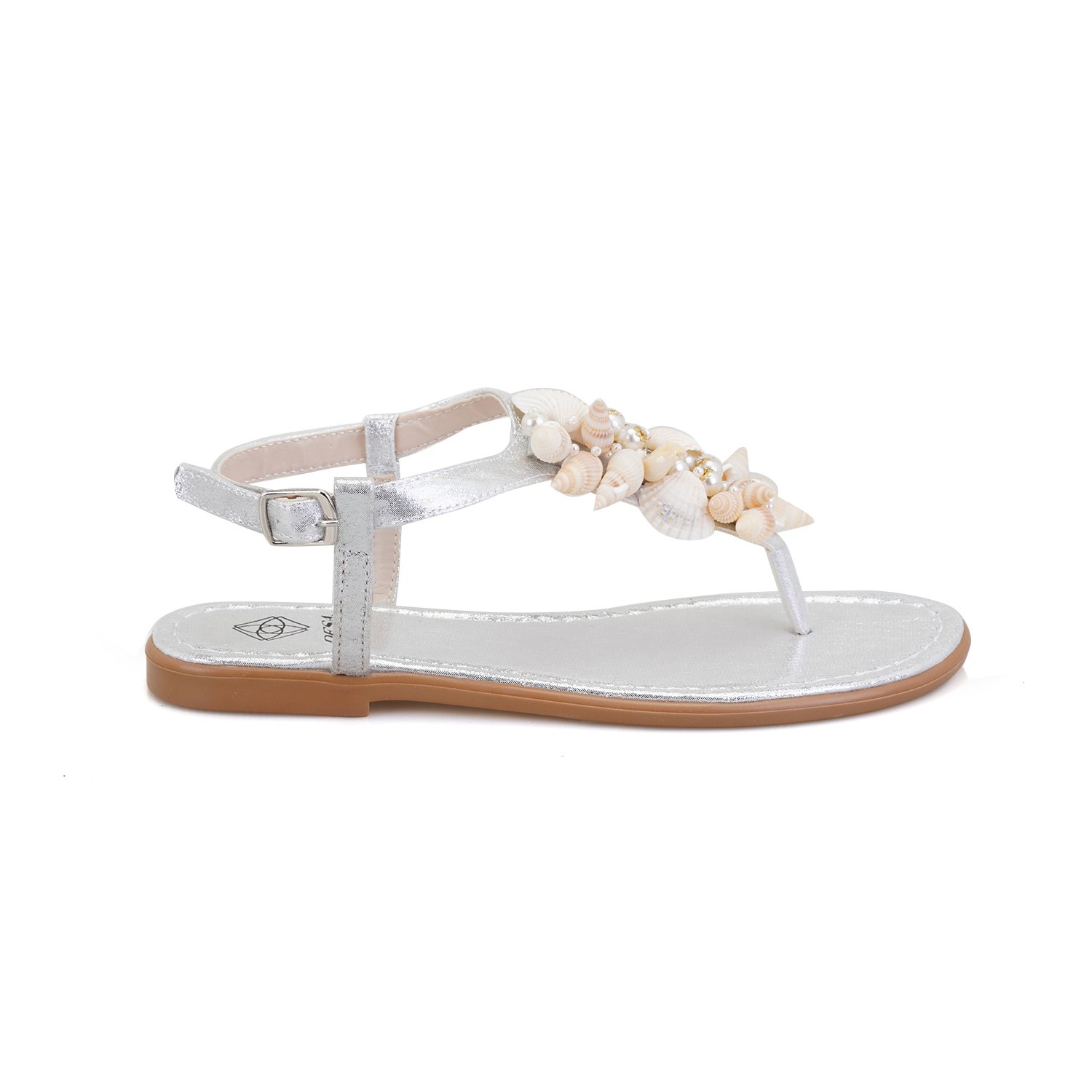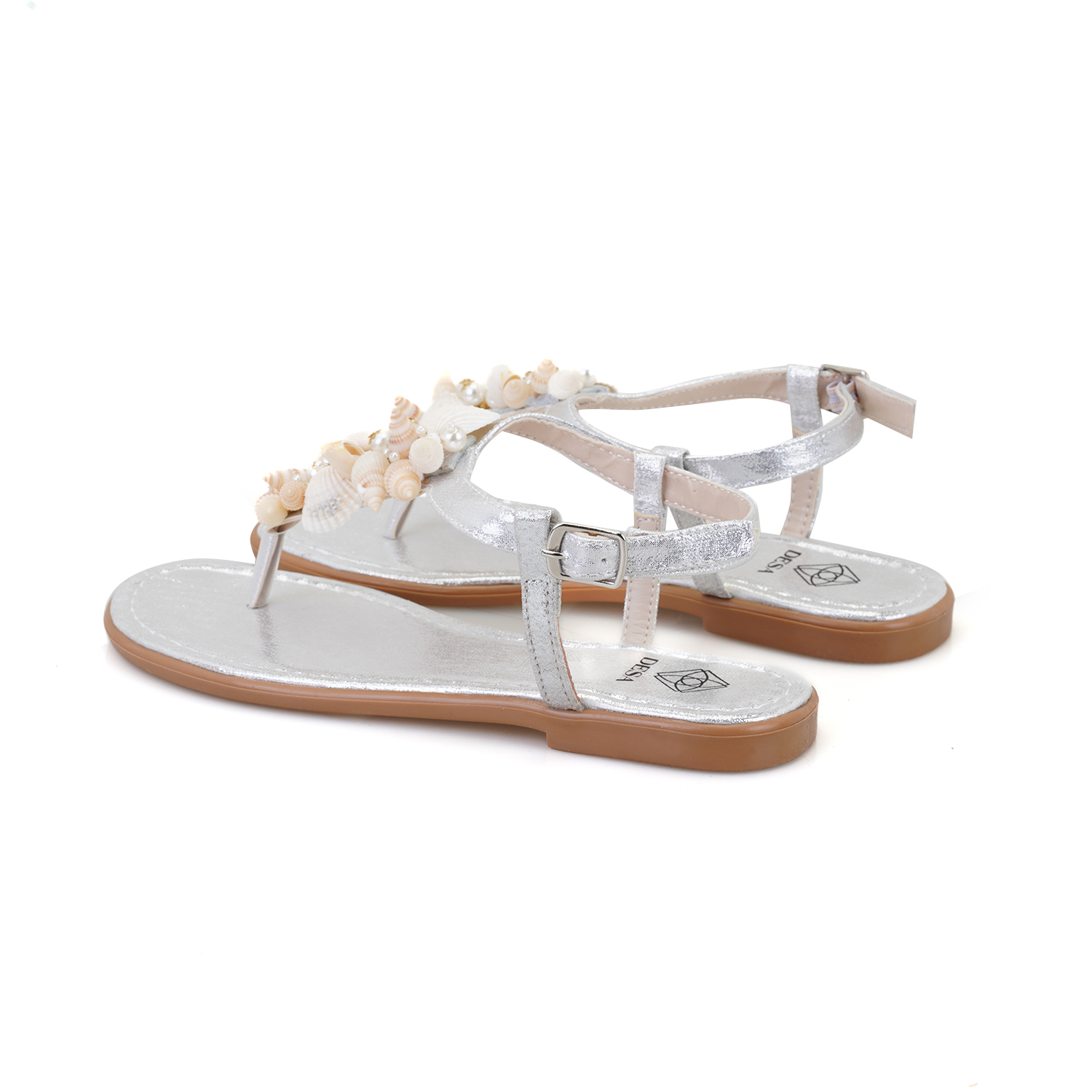 Kadın Gümüş Aksesuarlı Parmak Arası Deri Sandalet