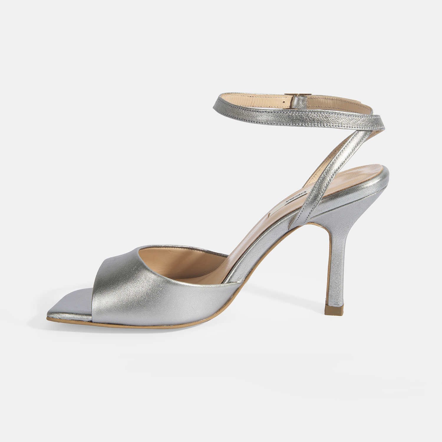 %100 metalik deri, deri iç tabanlı, deri astarlı, ayarlnabilir metal tokalı, neolit tabanlı, kadın topuklu sandalet.