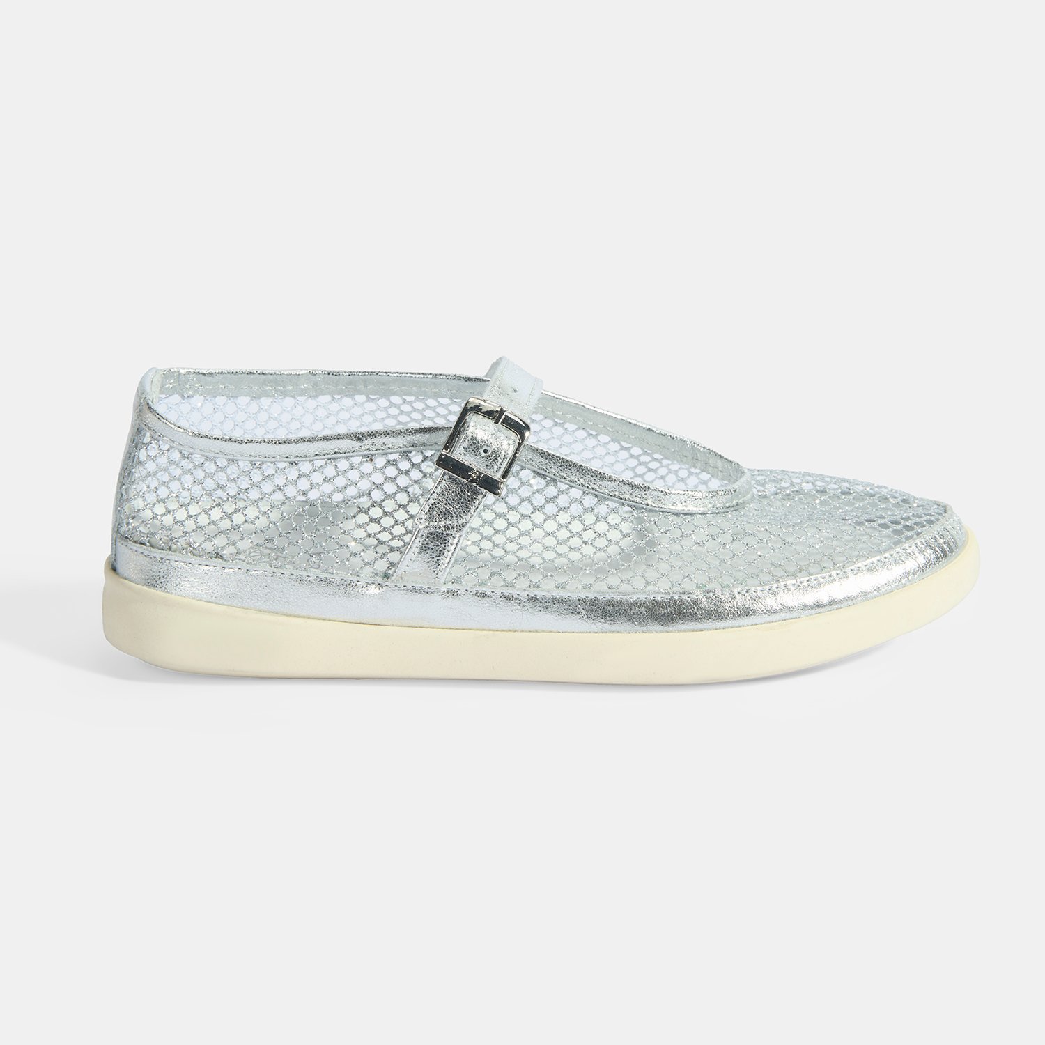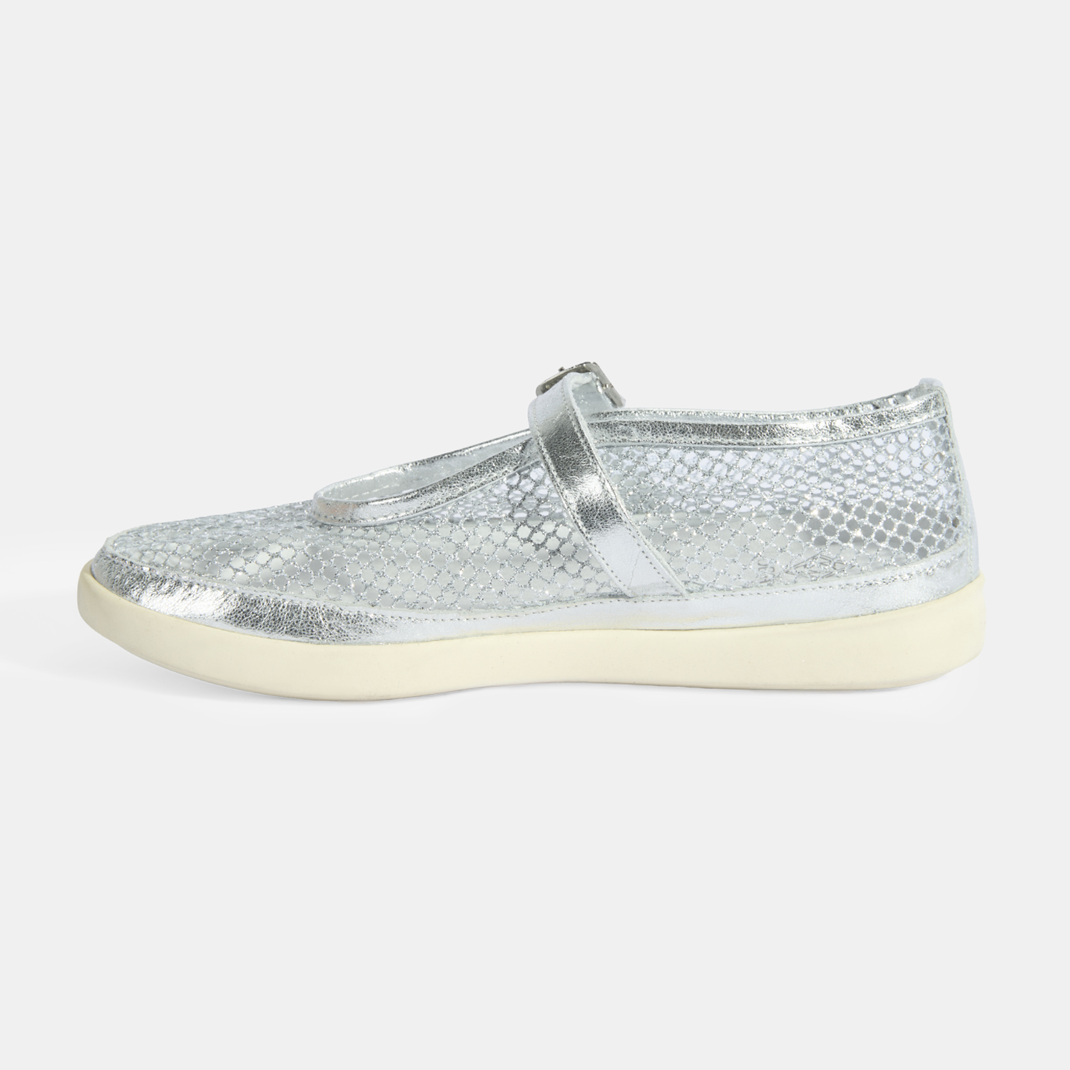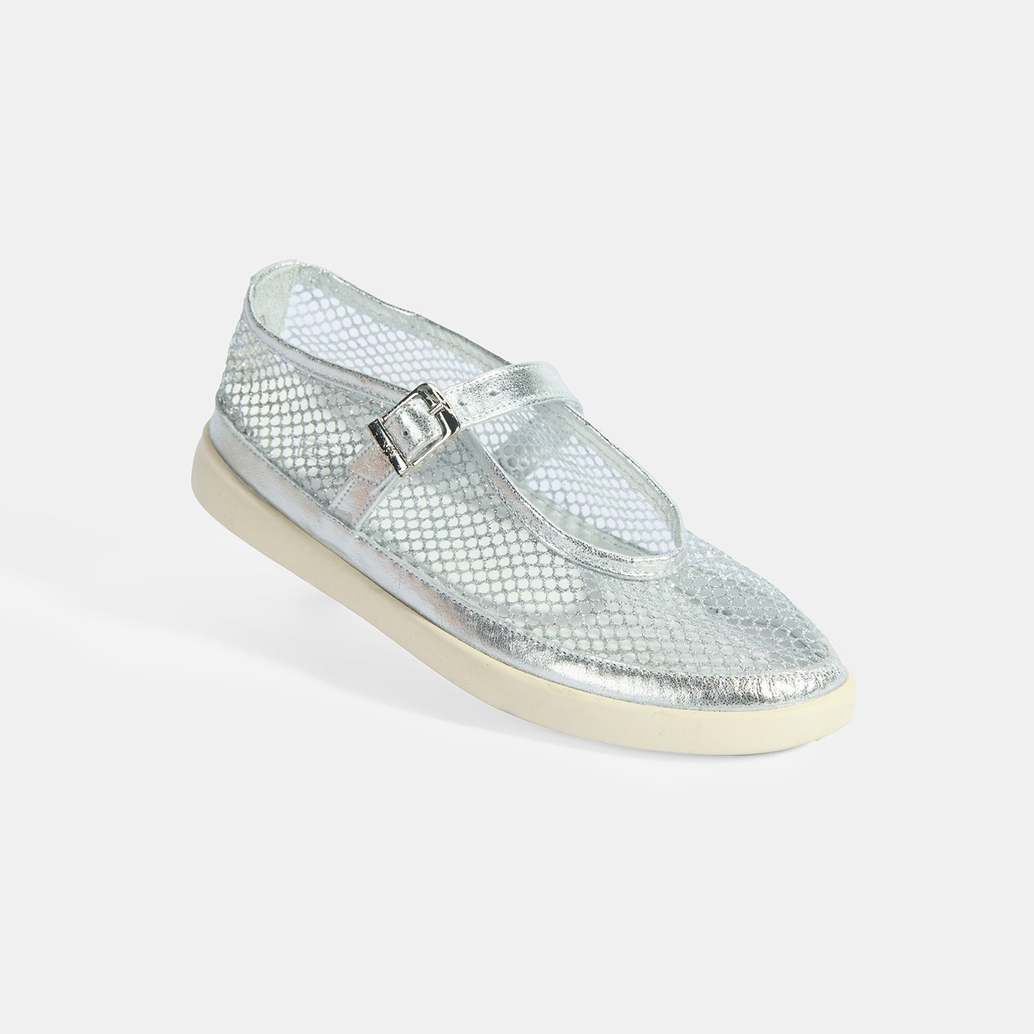 Kadın Gümüş Ayarlanabilir Tokalı File Detaylı Ayakkabı