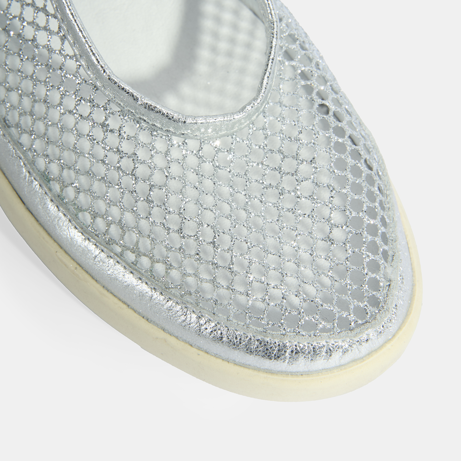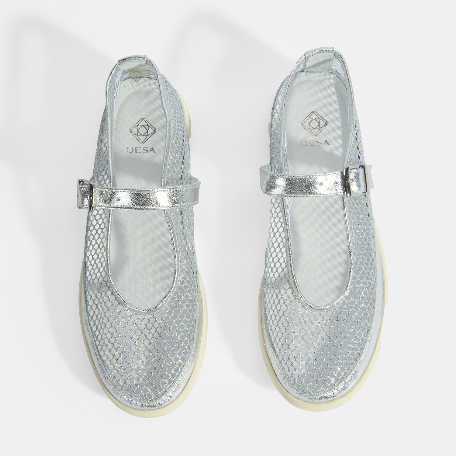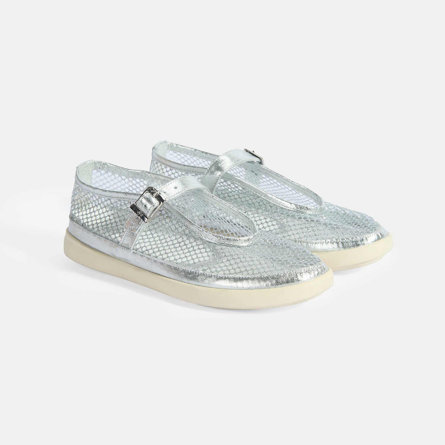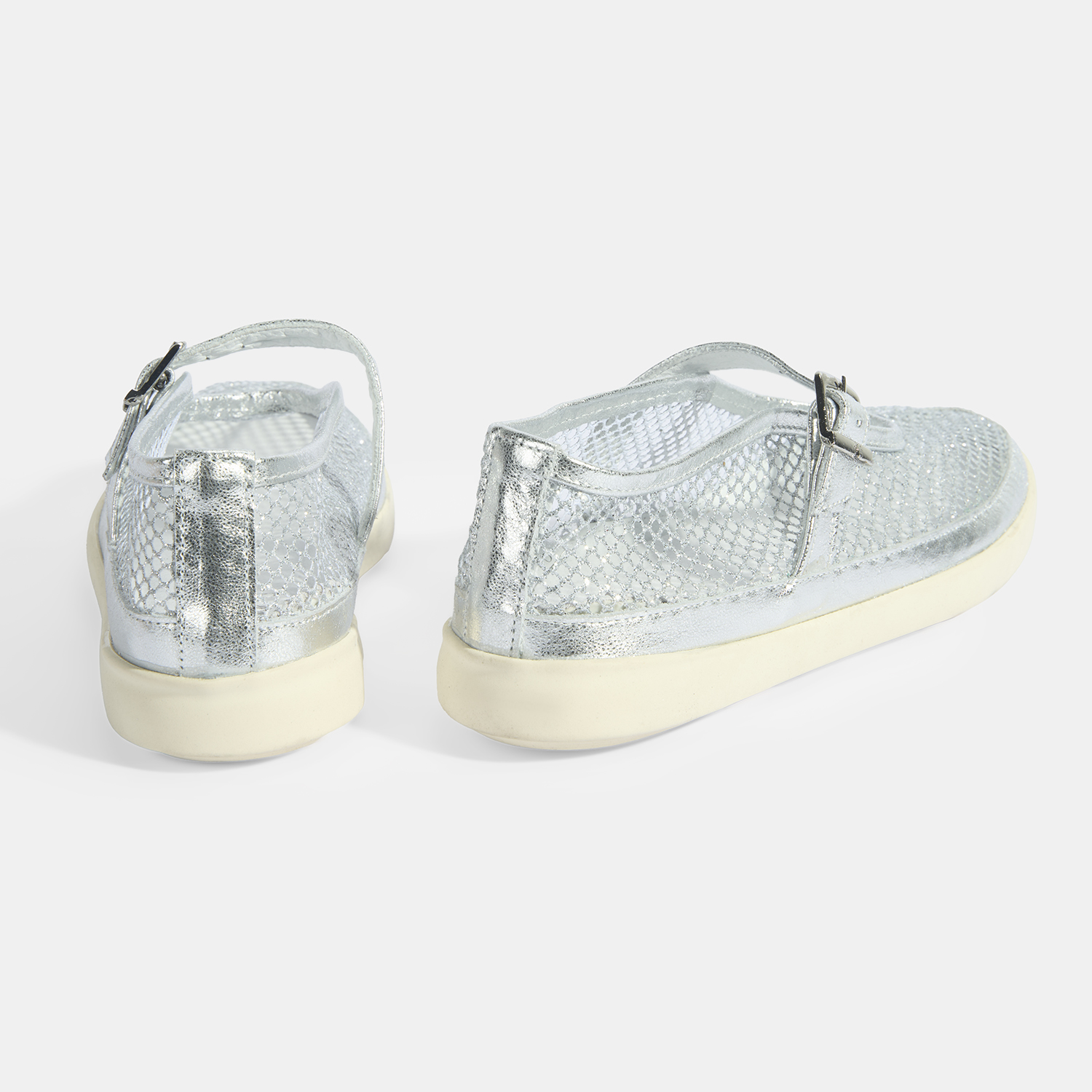 Kadın Gümüş Ayarlanabilir Tokalı File Detaylı Ayakkabı