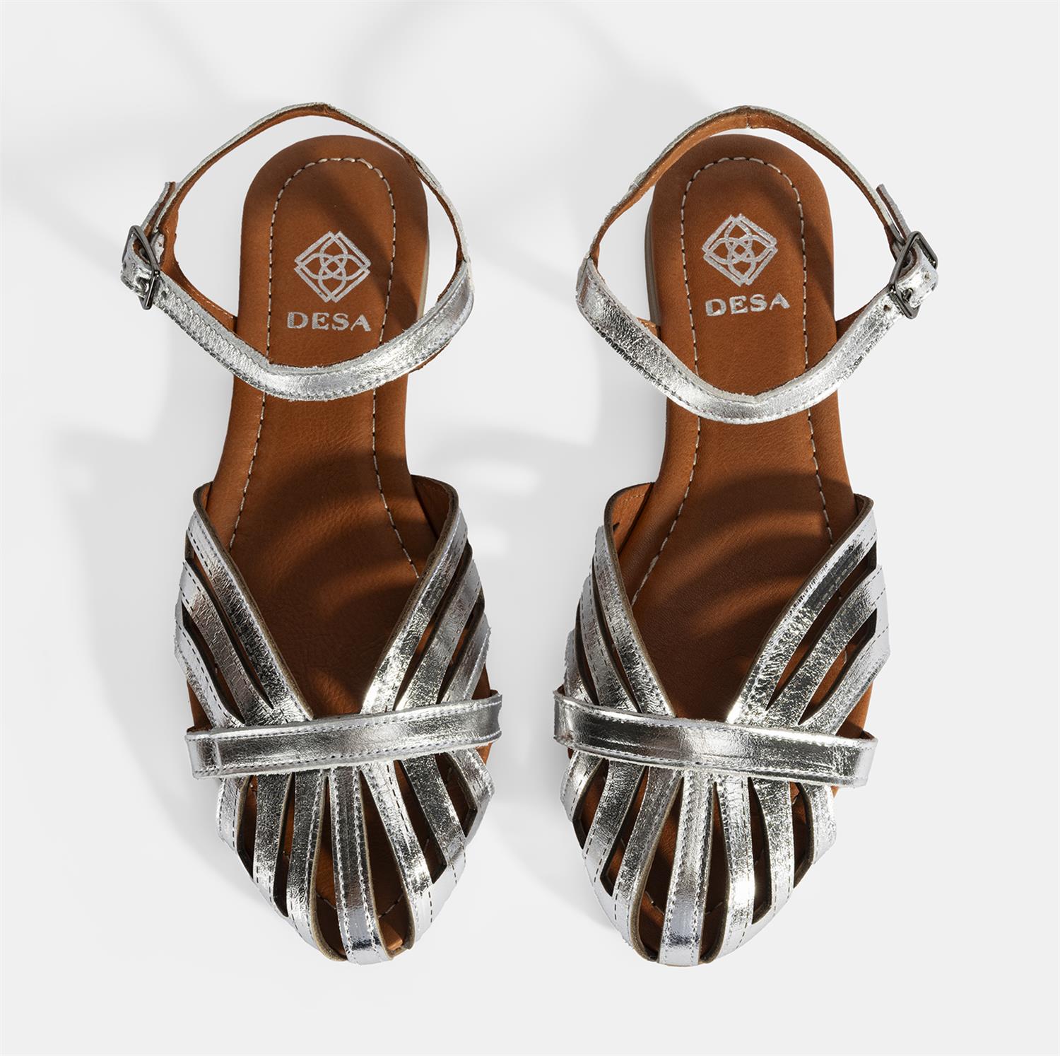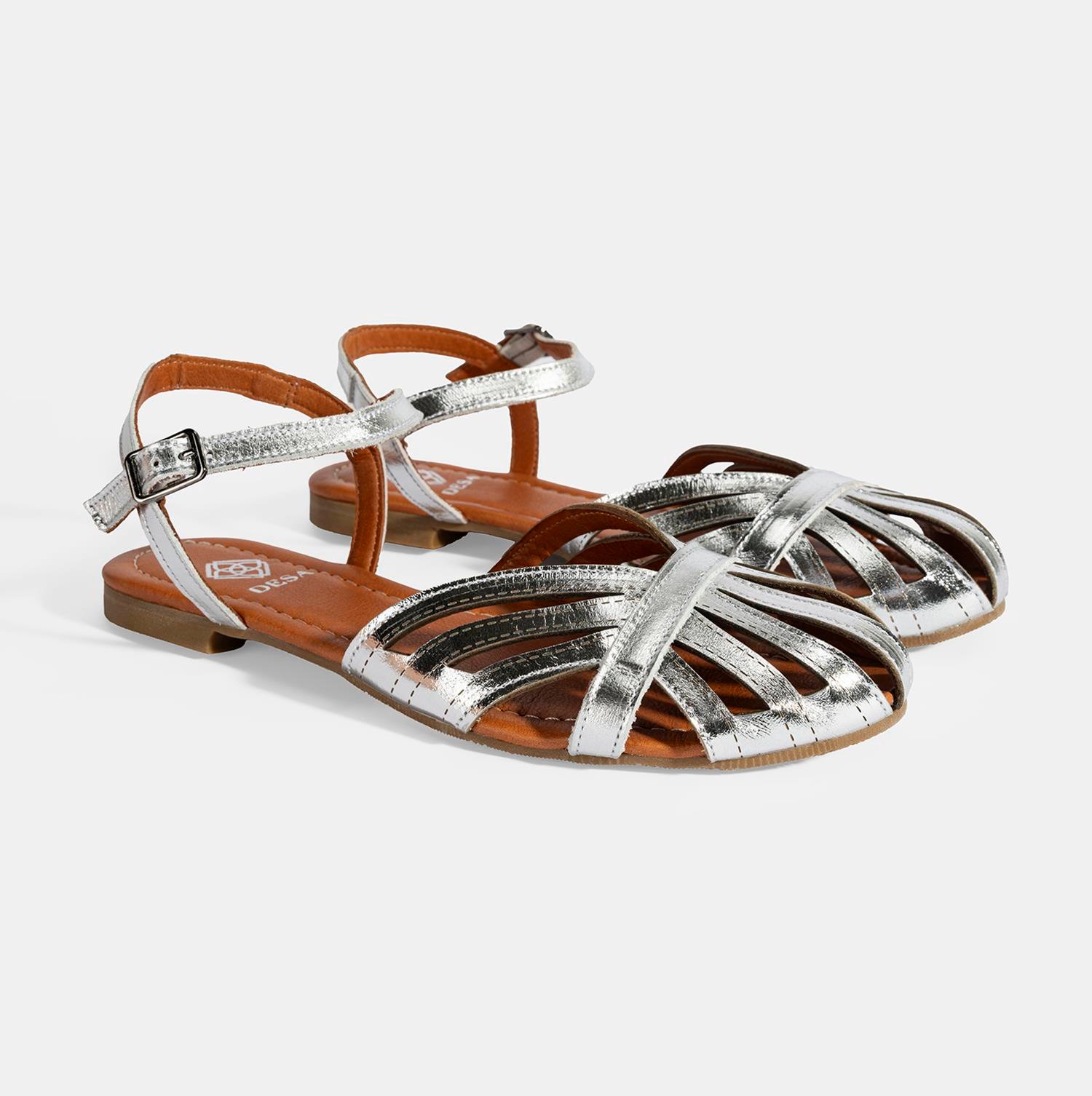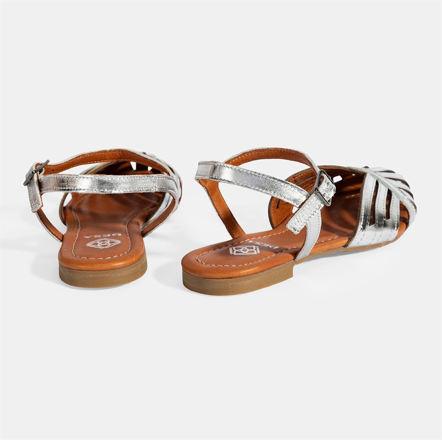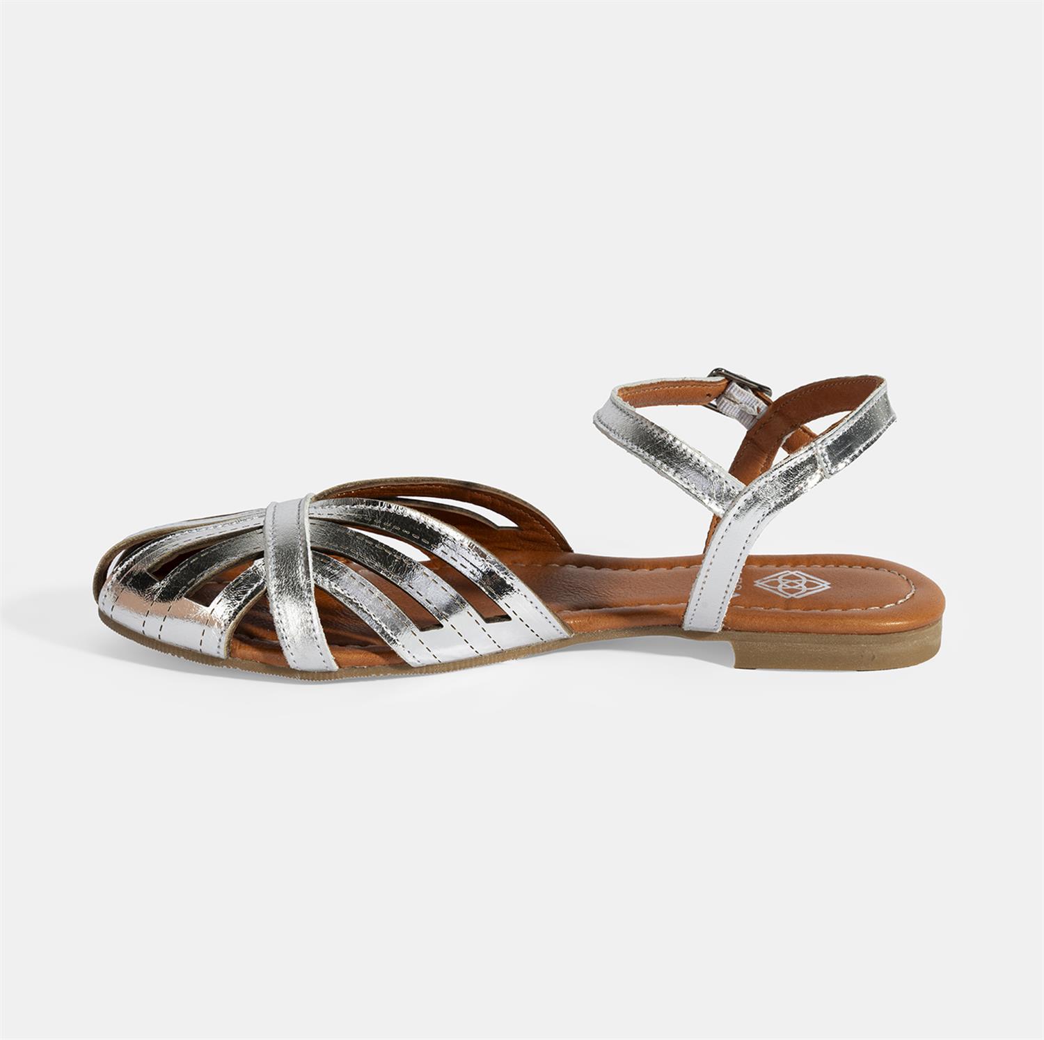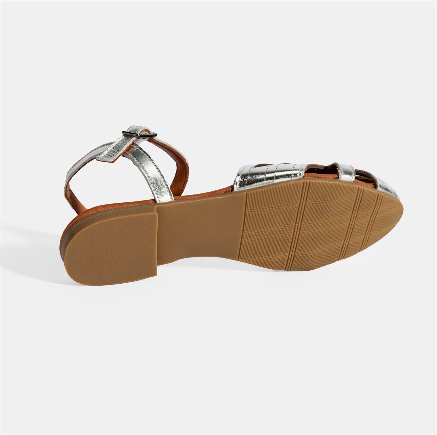 Kadın Gümüş Ayarlanabilir Tokalı Rugan Sandalet