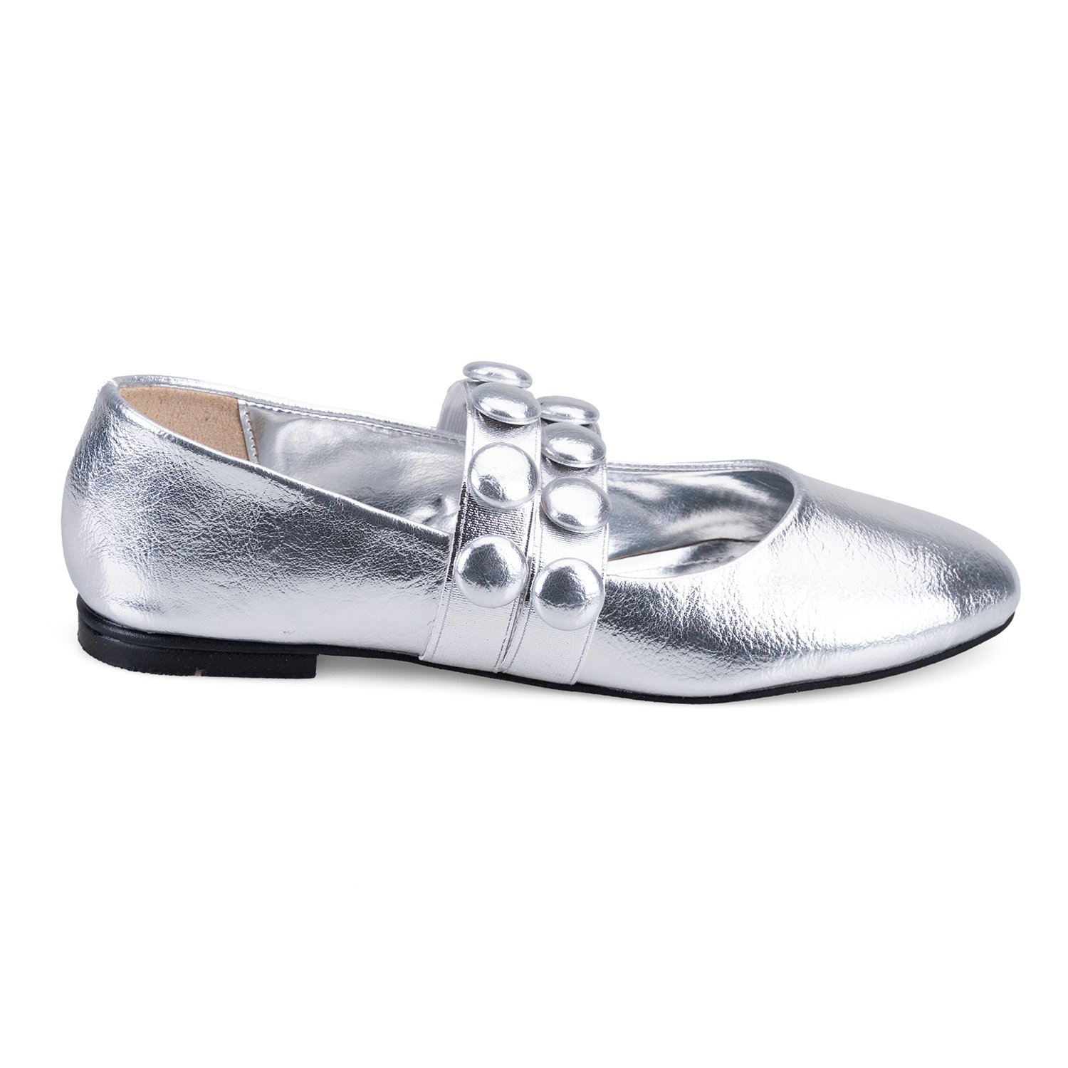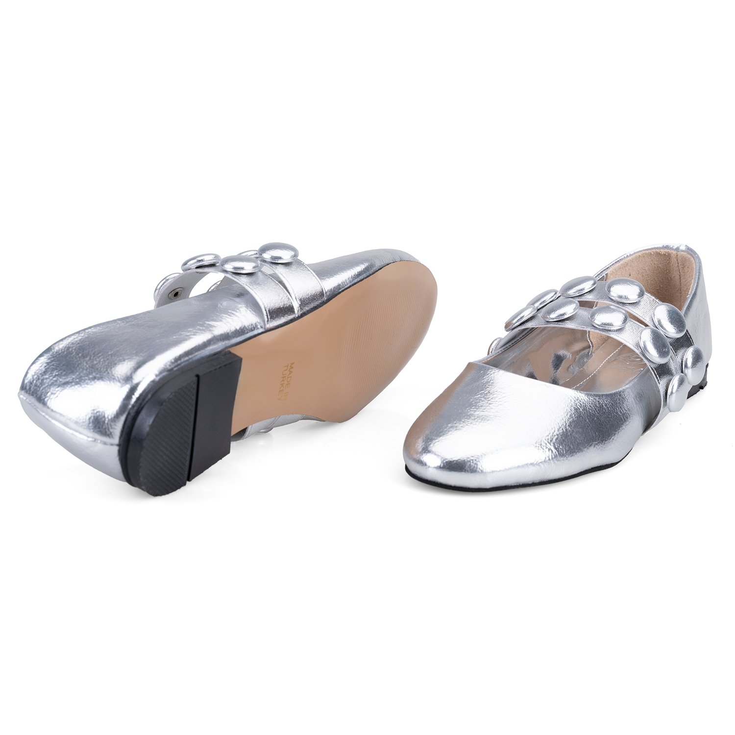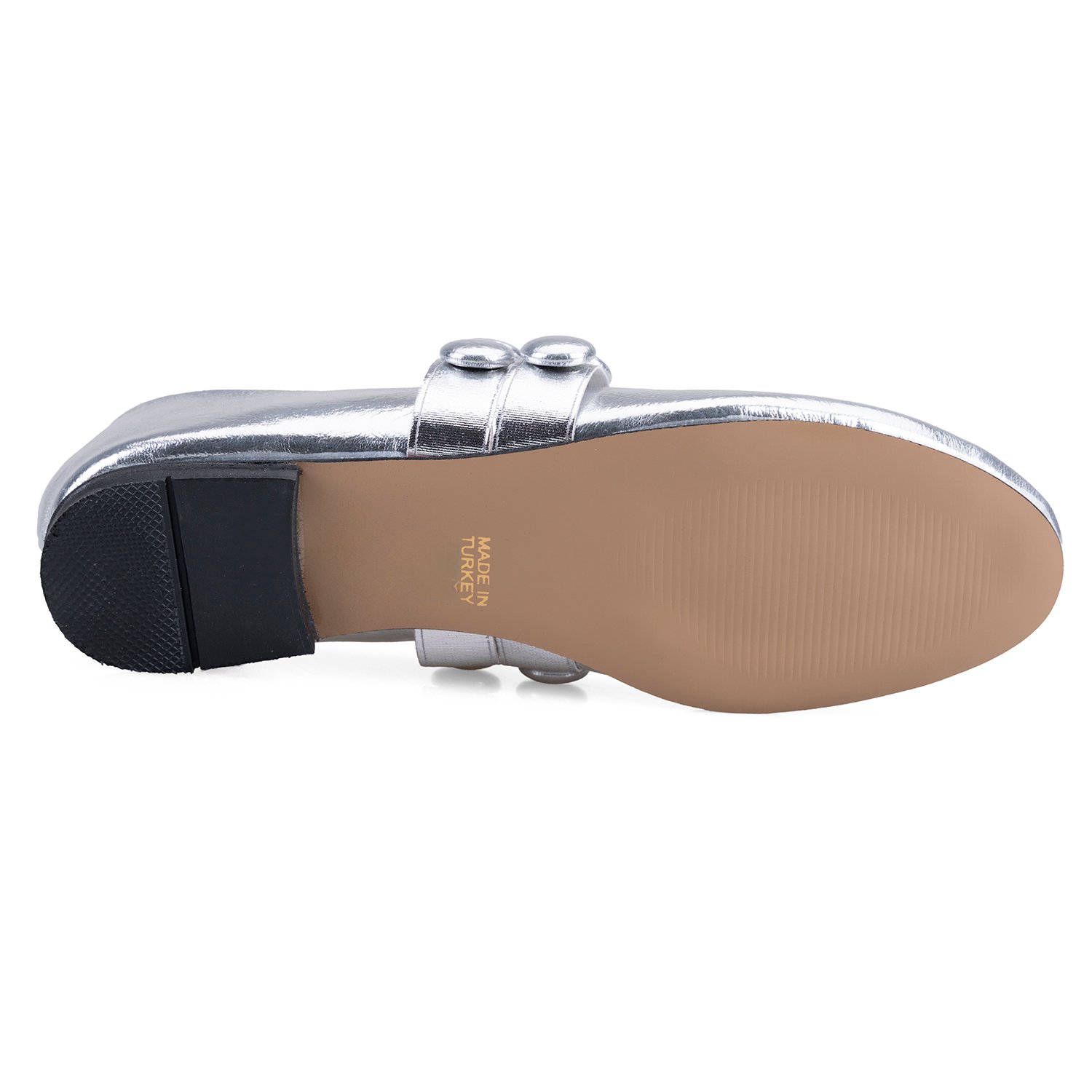 Pu iç tabanlı, pu astarlı, lastik detaylı, kaplama düğme aksesuarlı, neolit tabanlı, kadın babet.